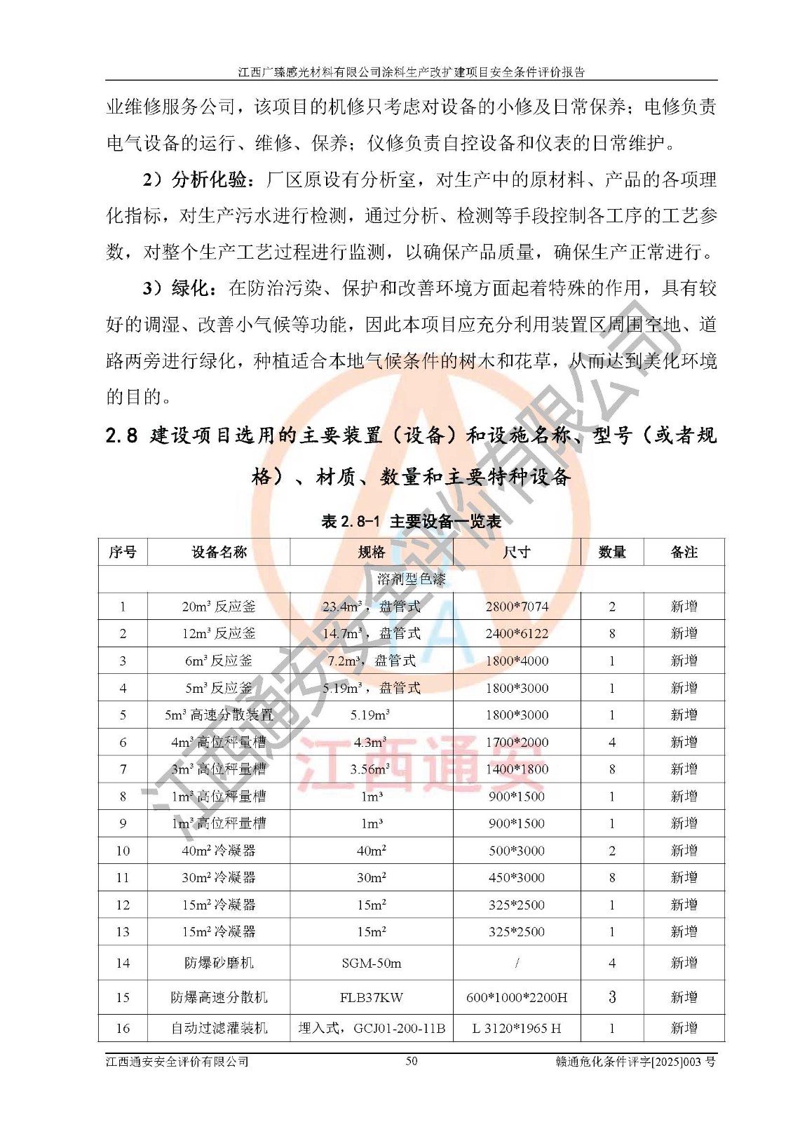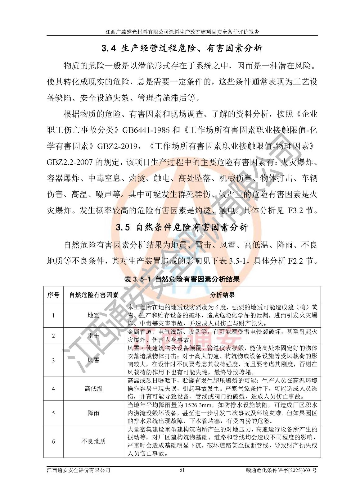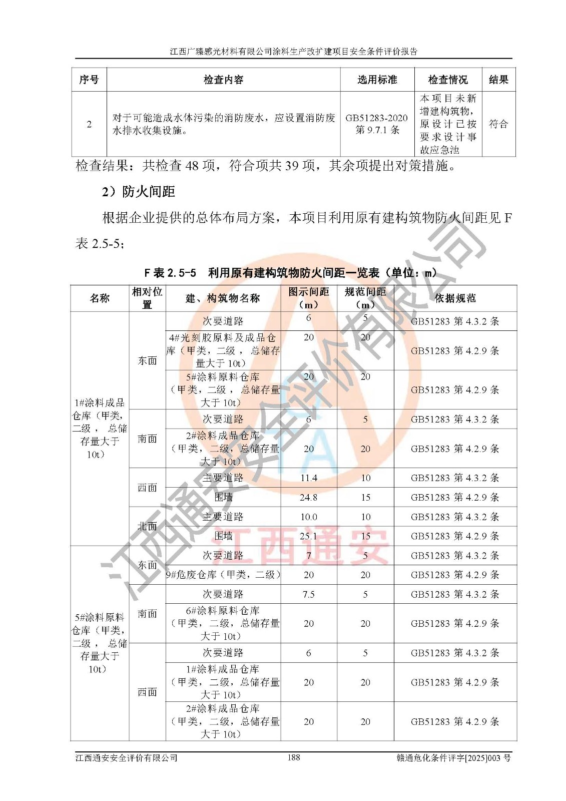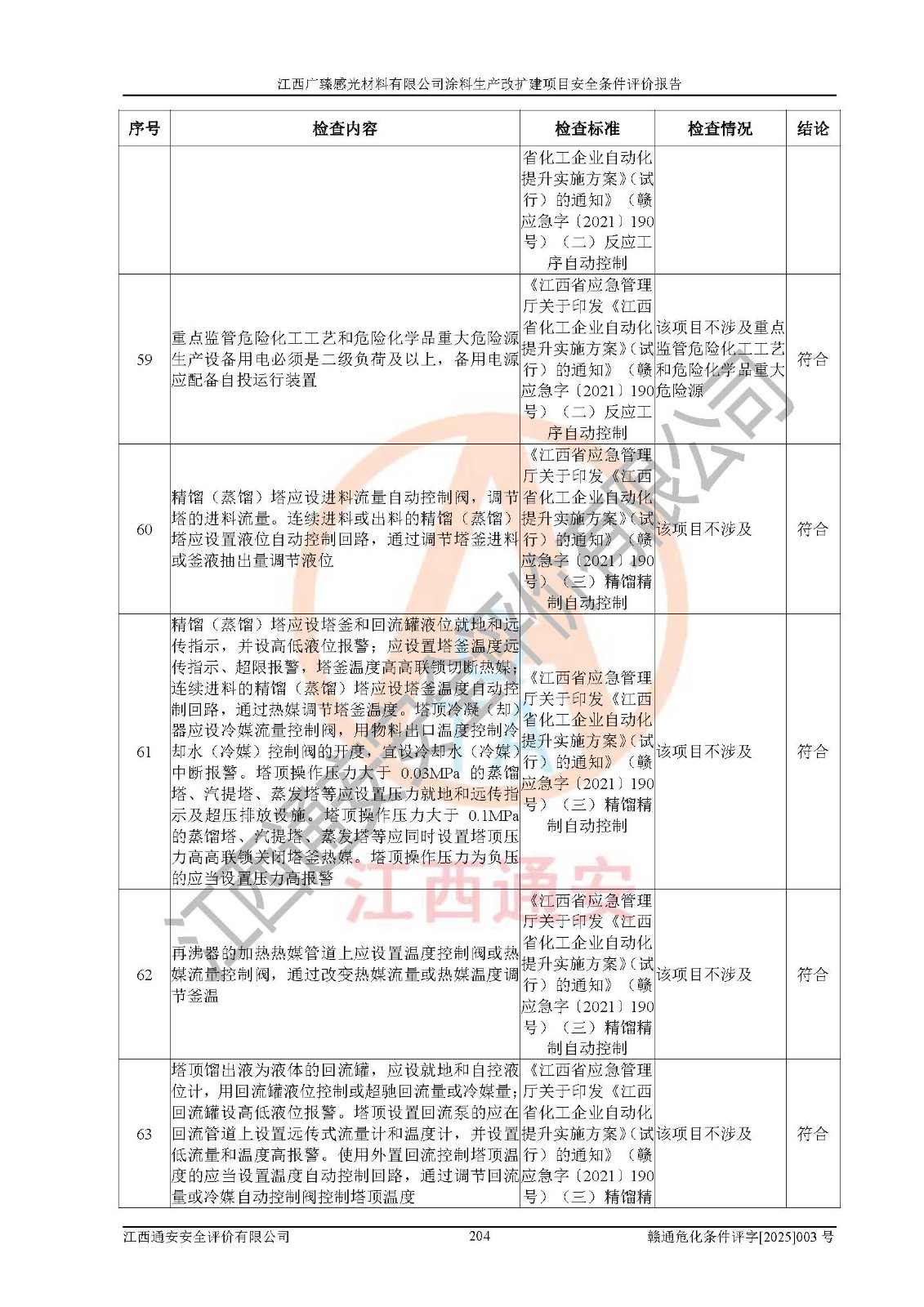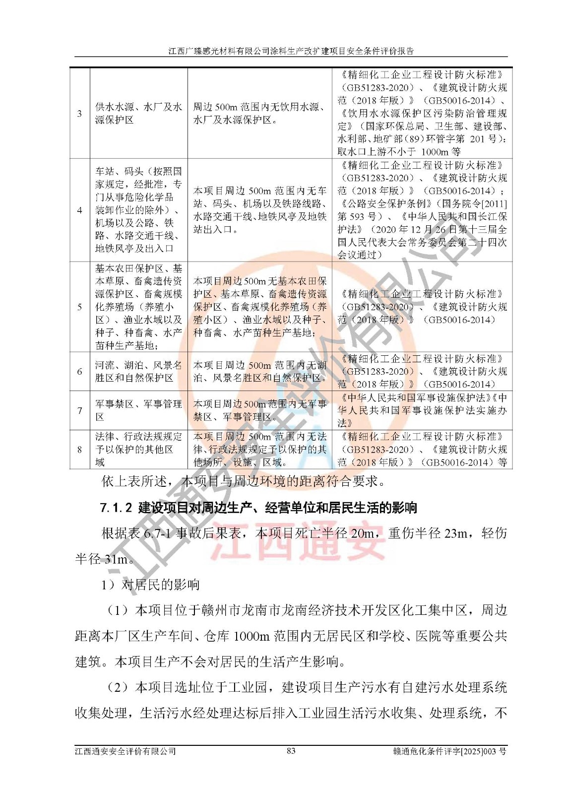 1)本项目取得了龙南市行政审批局下发的《江西省工业企业技术改造项目备案通知书》(项目统一代码为:2408-360727-07-02-3253323)、《建设用地规划许可证》、龙南市自然资源局出具对《关于为江西广臻年产2万吨涂料技改项目出具用地证明的函》的复函,符合地方产业发展规划的要求。 2)根据《危险化学品目录》(2015年版,十部委公告2022年第8号修订),本项目原辅料蜡浆、色浆、助剂、二甲苯、正丁醇、乙二醇丁醚、乙二醇乙醚醋酸酯、S100溶剂油、氮气[压缩的]及产品溶剂型涂料(色漆)属于危险化学品。本项目不涉及监控化学品、剧毒化学品、易制爆化学品、易制毒化学品、重点监管的危险化学品、特别管控危险化学品、高毒物品。本项目不涉及重点监管的危险化工工艺。 3)根据《危险化学品重大危险源辨识》(GB18218-2018),该项目未构成危险化学品重大危险源。 4)项目存在的主要危险因素有:火灾爆炸、容器爆炸、中毒窒息、灼烫、触电、**伤害、机械伤害、高处坠落、物体打击、淹溺等,存在的主要危害因素有:噪声与振动、高温、有害化学物质等;引起事故的原因有人的不安全行为、物的不安全状态、管理缺陷和环境不良。其中*主要的危险有害因素是火灾爆炸。 5)采用预先危险性分析法评价,结果为: (1)通过预先危险(PHA)分析可知,项目厂址及总体布局单元存在周边环境相互影响,发生异常情况,可对周边企业生产经营活动、人员活动产生影响;存在自然条件影响,可因雷击、暴雨等引起事故;存在**伤害、建筑物危害,其固有的危险性等级为Ⅱ级,属于“临界的”,应予以排除、采取控制措施因素。 (2)生产作业存在的危险因素包括火灾爆炸、触电、灼烫、中毒窒息固有的危险等级为Ⅲ级,属于“危险的”,可能导致人员伤亡和系统损坏的因素,需要采取防范和对策措施的因素;其它危险因素固有的危险等级为Ⅱ级,属于“临界的”,应予以排除、采取控制措施因素。 (3)生产作业存在的噪声、粉尘、高温、有害化学物质的危险有害因素等级为Ⅱ级,属于“临界的”,应予以排除、采取控制措施因素。 6)危险度评价分析,结果为: 生产装置危险度评价分析:3#甲类车间为中度危险(Ⅱ级)。 储存单元危险度评价分析:1#涂料成品仓库为**危险(Ⅰ级)、5#涂料原料仓库为**危险(Ⅰ级)、6#涂料原料仓库为中度危险(Ⅱ级)、7#涂料原料仓库为中度危险(Ⅱ级)、9#危废仓库为中度危险(Ⅱ级)、2#丙类原料仓库为中度危险(Ⅱ级)、甲类罐区为**危险(Ⅰ级)。 7)作业条件危险性评价结果:在选定的评价单元中,其危险分值均在70以下,危险程度基本属于“可能危险”、“稍有危险”范围,作业条件相对安全。企业经营过程中首先应重点加强对甲类生产车间、甲类仓库、储罐区的危险因素的严格控制,注重日常安全管理;其次要建立健全完善的安全生产责任制、安全管理制度、安全技术操作规程并**其贯彻落实;第三要认真抓好操作人员、管理人员的安全知识和操作技能的培训,**人员具有与工程技术水平相适应的技术素质和安全素质,**安全作业。 8)项目建设场地符合当地规划要求,建设场地通过合理规划,其选址、周边环境、总平面布置、交通运输等能符合《中华人民共和国安全生产法》《危险化学品安全管理条例》《建筑设计防火规范》《精细化工企业工程设计防火标准》等法规、标准、规范要求。 厂址地区地震活动相对较弱,灾害性天气出现频率稍高,自然灾害对项目建设具有**影响,通过采取相应的防护措施,自然条件适宜建设。 9)建设项目符合**产业政策的要求;选择工艺为现行成熟工艺,其安全可靠性可得到**。 10)本报告已根据有关安全生产法律、法规、规章和**标准、行业标准,并严格执行省委办公厅省**办公厅《关于全面加强危险化学品安全生产工作的实施意见》(赣办发[2020]32号)及鄱阳湖生态经济区、长江经济带、“五河一湖”相关政策规定,客观、公正、科学地进行安全评价,项目符合《江西省应急管理厅关于印发《江西省危险化学品建设项目安全监督管理实施细则》(试行)的通知》(赣应急字[2021]100号)的要求。 11)本报告结合工艺特征,提出应采取的对应的自动化控制系统及自动化实施方案,满足《江西省应急管理厅关于印发《江西省化工企业自动化提升实施方案》(试行)的通知》(赣应急字[2021]190号)的要求。 综上所述:江西广臻感光材料有限公司涂料生产改扩建项目的产业政策、安全条件、厂址、总体布局、主要技术和工艺、装置、设施、配套和辅助工程、安全管理等均满足安全生产相关法律法规、标准规范的要求,该建设项目的危险、有害因素可得到**控制,风险在可接受范围内,具有**的本质安全水平。企业应认真落实本报告提出的安全对策与建议,在下一步设计、建设施工过程中严把质量关、严格施工安全管理和检查,使各项安全措施落实到实处,且严格执行建设项目安全设施“三同时”的规定,建立**的事故应急体系和措施。 |