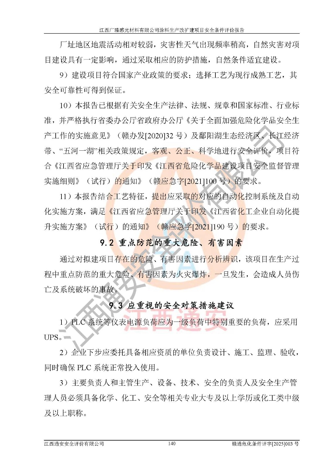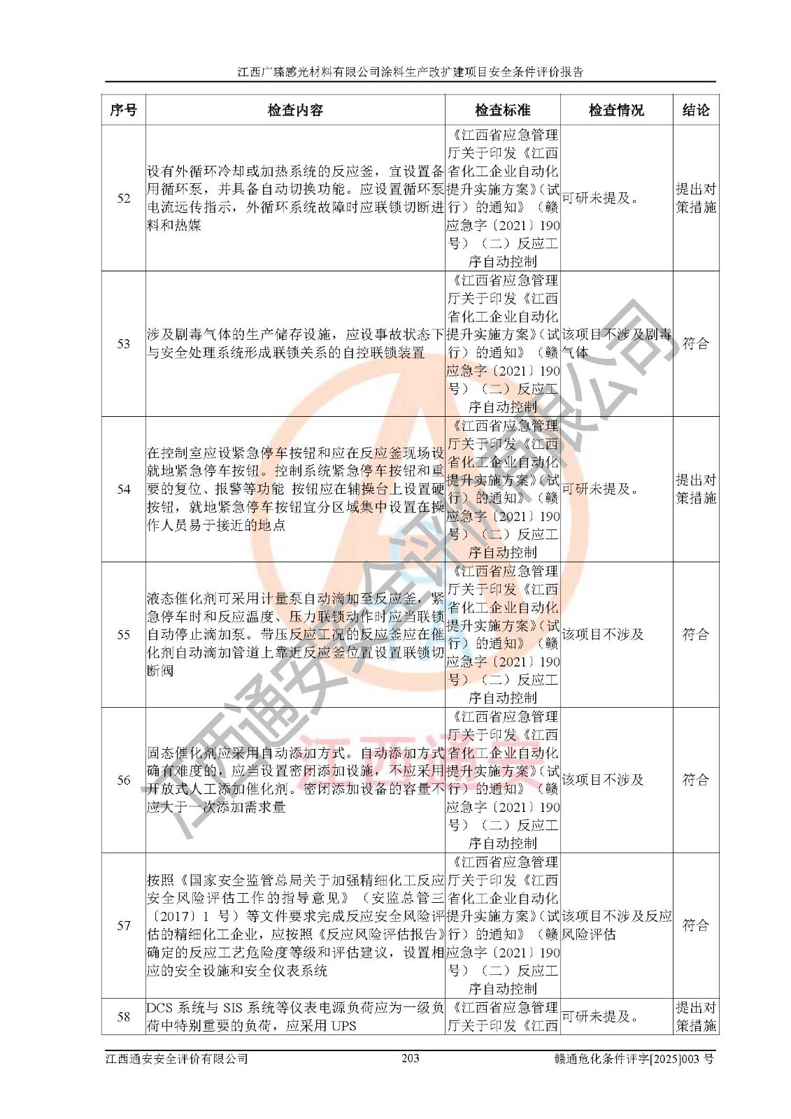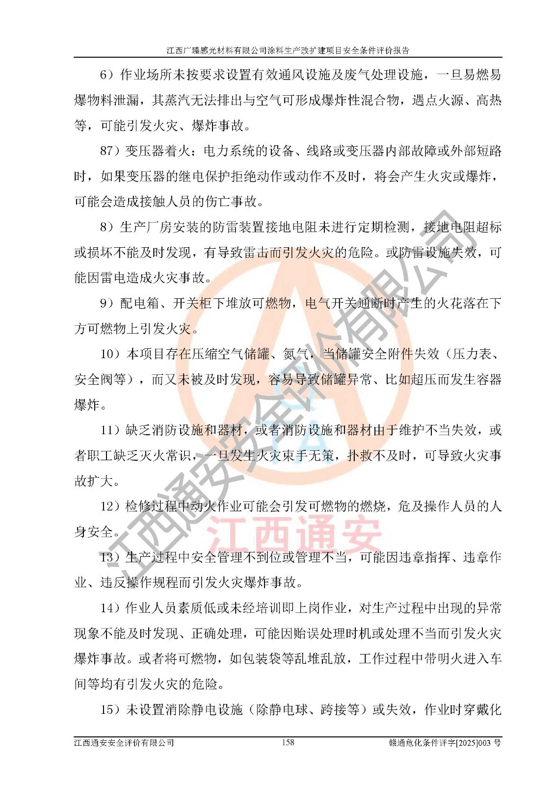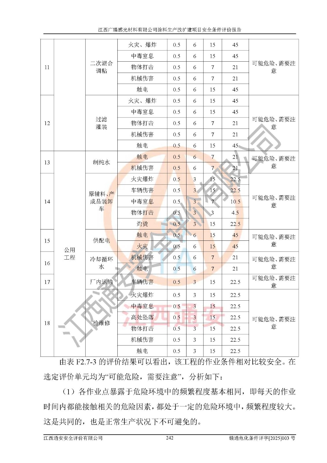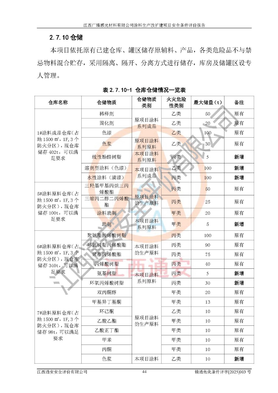 1)本项目取得了龙南市行政审批局下发的《江西省工业企业技术改造项目备案通知书》(项目统一代码为:2408-360727-07-02-3253323)、《建设用地规划许可证》、龙南市自然资源局出具对《关于为江西广臻年产2万吨涂料技改项目出具用地证明的函》的复函,符合地方产业发展规划的要求。 2)根据《危险化学品目录》(2015年版,十部委公告2022年第8号修订),本项目原辅料蜡浆、色浆、助剂、二甲苯、正丁醇、乙二醇丁醚、乙二醇乙醚醋酸酯、S100溶剂油、氮气[压缩的]及产品溶剂型涂料(色漆)属于危险化学品。本项目不涉及监控化学品、剧毒化学品、易制爆化学品、易制毒化学品、重点监管的危险化学品、特别管控危险化学品、高毒物品。本项目不涉及重点监管的危险化工工艺。 3)根据《危险化学品重大危险源辨识》(GB18218-2018),该项目未构成危险化学品重大危险源。 4)项目存在的主要危险因素有:火灾爆炸、容器爆炸、中毒窒息、灼烫、触电、**伤害、机械伤害、高处坠落、物体打击、淹溺等,存在的主要危害因素有:噪声与振动、高温、有害化学物质等;引起事故的原因有人的不安全行为、物的不安全状态、管理缺陷和环境不良。其中*主要的危险有害因素是火灾爆炸。 5)采用预先危险性分析法评价,结果为: (1)通过预先危险(PHA)分析可知,项目厂址及总体布局单元存在周边环境相互影响,发生异常情况,可对周边企业生产经营活动、人员活动产生影响;存在自然条件影响,可因雷击、暴雨等引起事故;存在**伤害、建筑物危害,其固有的危险性等级为Ⅱ级,属于“临界的”,应予以排除、采取控制措施因素。 (2)生产作业存在的危险因素包括火灾爆炸、触电、灼烫、中毒窒息固有的危险等级为Ⅲ级,属于“危险的”,可能导致人员伤亡和系统损坏的因素,需要采取防范和对策措施的因素;其它危险因素固有的危险等级为Ⅱ级,属于“临界的”,应予以排除、采取控制措施因素。 (3)生产作业存在的噪声、粉尘、高温、有害化学物质的危险有害因素等级为Ⅱ级,属于“临界的”,应予以排除、采取控制措施因素。 6)危险度评价分析,结果为: 生产装置危险度评价分析:3#甲类车间为中度危险(Ⅱ级)。 储存单元危险度评价分析:1#涂料成品仓库为**危险(Ⅰ级)、5#涂料原料仓库为**危险(Ⅰ级)、6#涂料原料仓库为中度危险(Ⅱ级)、7#涂料原料仓库为中度危险(Ⅱ级)、9#危废仓库为中度危险(Ⅱ级)、2#丙类原料仓库为中度危险(Ⅱ级)、甲类罐区为**危险(Ⅰ级)。 7)作业条件危险性评价结果:在选定的评价单元中,其危险分值均在70以下,危险程度基本属于“可能危险”、“稍有危险”范围,作业条件相对安全。企业经营过程中首先应重点加强对甲类生产车间、甲类仓库、储罐区的危险因素的严格控制,注重日常安全管理;其次要建立健全完善的安全生产责任制、安全管理制度、安全技术操作规程并**其贯彻落实;第三要认真抓好操作人员、管理人员的安全知识和操作技能的培训,**人员具有与工程技术水平相适应的技术素质和安全素质,**安全作业。 8)项目建设场地符合当地规划要求,建设场地通过合理规划,其选址、周边环境、总平面布置、交通运输等能符合《中华人民共和国安全生产法》《危险化学品安全管理条例》《建筑设计防火规范》《精细化工企业工程设计防火标准》等法规、标准、规范要求。 厂址地区地震活动相对较弱,灾害性天气出现频率稍高,自然灾害对项目建设具有**影响,通过采取相应的防护措施,自然条件适宜建设。 9)建设项目符合**产业政策的要求;选择工艺为现行成熟工艺,其安全可靠性可得到**。 10)本报告已根据有关安全生产法律、法规、规章和**标准、行业标准,并严格执行省委办公厅省**办公厅《关于全面加强危险化学品安全生产工作的实施意见》(赣办发[2020]32号)及鄱阳湖生态经济区、长江经济带、“五河一湖”相关政策规定,客观、公正、科学地进行安全评价,项目符合《江西省应急管理厅关于印发《江西省危险化学品建设项目安全监督管理实施细则》(试行)的通知》(赣应急字[2021]100号)的要求。 11)本报告结合工艺特征,提出应采取的对应的自动化控制系统及自动化实施方案,满足《江西省应急管理厅关于印发《江西省化工企业自动化提升实施方案》(试行)的通知》(赣应急字[2021]190号)的要求。 综上所述:江西广臻感光材料有限公司涂料生产改扩建项目的产业政策、安全条件、厂址、总体布局、主要技术和工艺、装置、设施、配套和辅助工程、安全管理等均满足安全生产相关法律法规、标准规范的要求,该建设项目的危险、有害因素可得到**控制,风险在可接受范围内,具有**的本质安全水平。企业应认真落实本报告提出的安全对策与建议,在下一步设计、建设施工过程中严把质量关、严格施工安全管理和检查,使各项安全措施落实到实处,且严格执行建设项目安全设施“三同时”的规定,建立**的事故应急体系和措施。 |