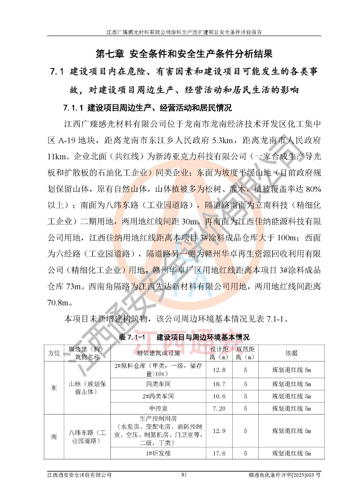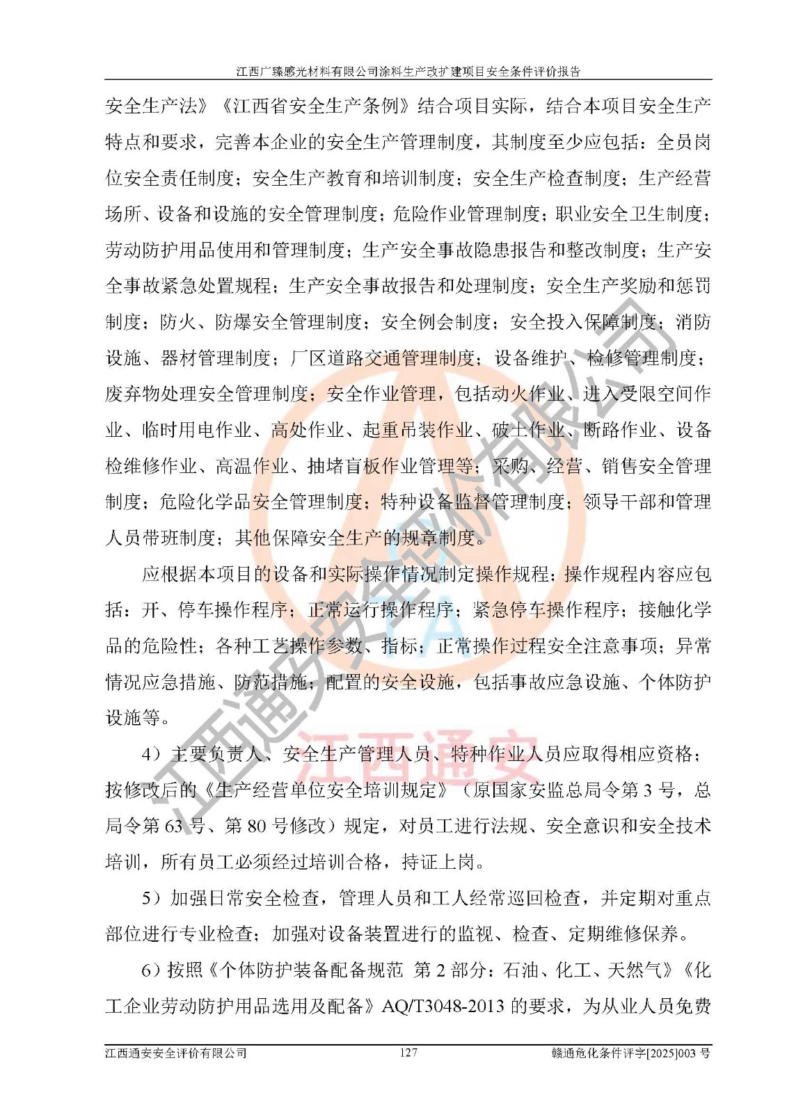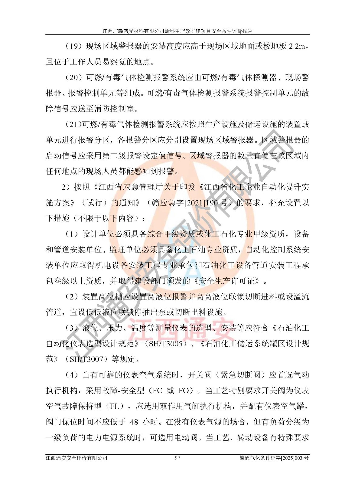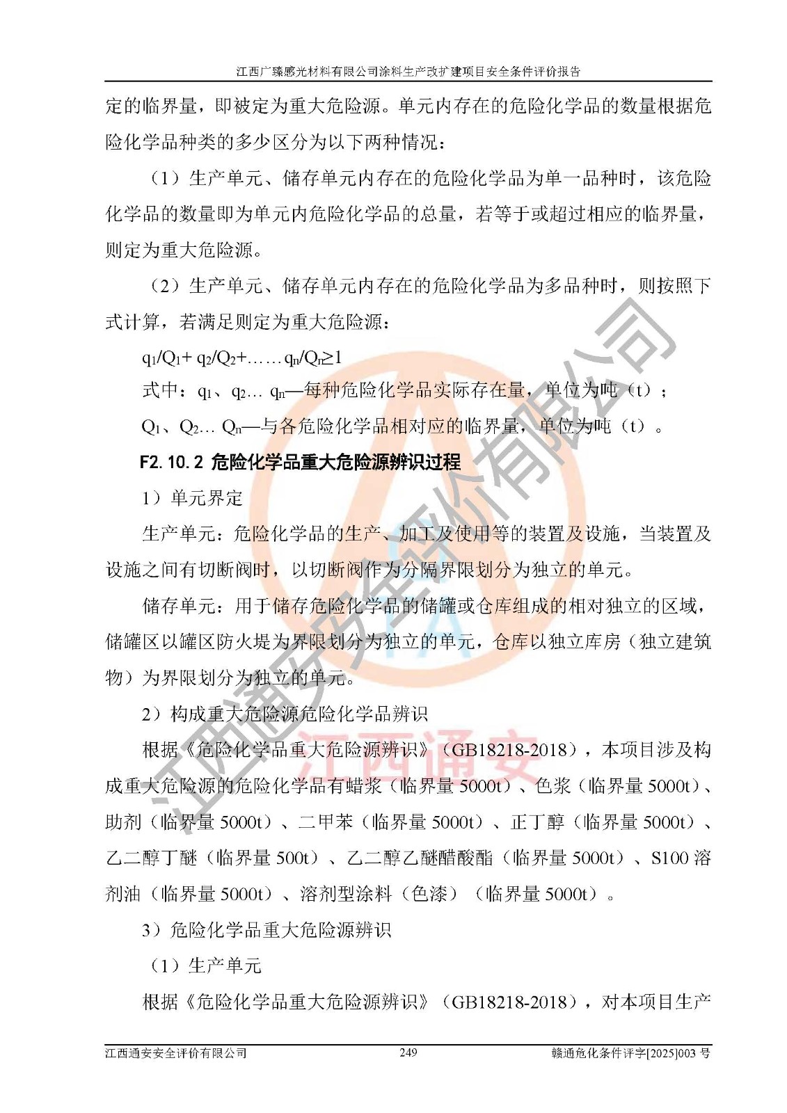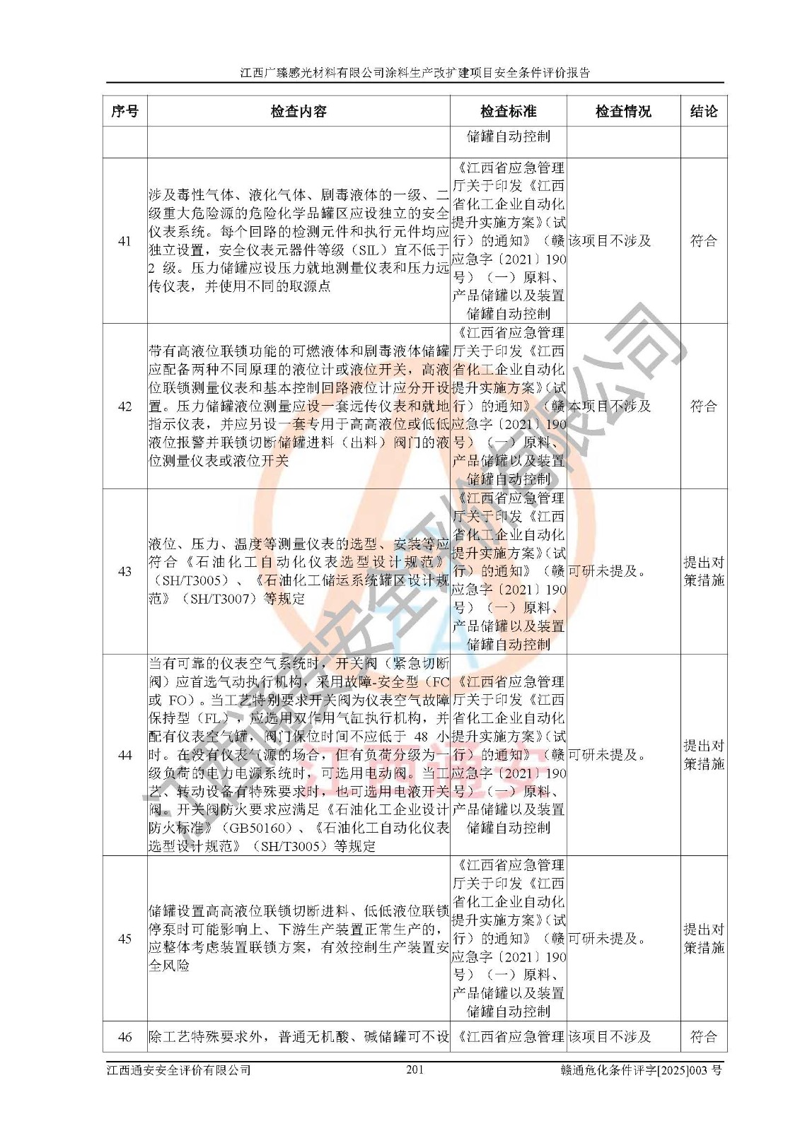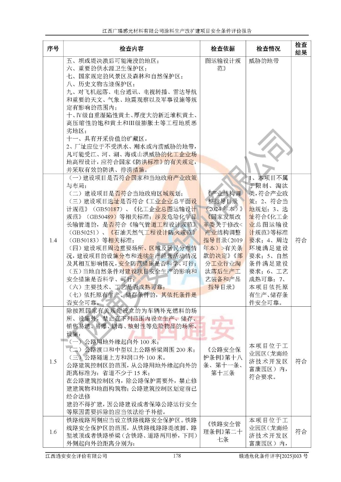 1)本项目取得了龙南市行政审批局下发的《江西省工业企业技术改造项目备案通知书》(项目统一代码为:2408-360727-07-02-3253323)、《建设用地规划许可证》、龙南市自然资源局出具对《关于为江西广臻年产2万吨涂料技改项目出具用地证明的函》的复函,符合地方产业发展规划的要求。 2)根据《危险化学品目录》(2015年版,十部委公告2022年第8号修订),本项目原辅料蜡浆、色浆、助剂、二甲苯、正丁醇、乙二醇丁醚、乙二醇乙醚醋酸酯、S100溶剂油、氮气[压缩的]及产品溶剂型涂料(色漆)属于危险化学品。本项目不涉及监控化学品、剧毒化学品、易制爆化学品、易制毒化学品、重点监管的危险化学品、特别管控危险化学品、高毒物品。本项目不涉及重点监管的危险化工工艺。 3)根据《危险化学品重大危险源辨识》(GB18218-2018),该项目未构成危险化学品重大危险源。 4)项目存在的主要危险因素有:火灾爆炸、容器爆炸、中毒窒息、灼烫、触电、**伤害、机械伤害、高处坠落、物体打击、淹溺等,存在的主要危害因素有:噪声与振动、高温、有害化学物质等;引起事故的原因有人的不安全行为、物的不安全状态、管理缺陷和环境不良。其中*主要的危险有害因素是火灾爆炸。 5)采用预先危险性分析法评价,结果为: (1)通过预先危险(PHA)分析可知,项目厂址及总体布局单元存在周边环境相互影响,发生异常情况,可对周边企业生产经营活动、人员活动产生影响;存在自然条件影响,可因雷击、暴雨等引起事故;存在**伤害、建筑物危害,其固有的危险性等级为Ⅱ级,属于“临界的”,应予以排除、采取控制措施因素。 (2)生产作业存在的危险因素包括火灾爆炸、触电、灼烫、中毒窒息固有的危险等级为Ⅲ级,属于“危险的”,可能导致人员伤亡和系统损坏的因素,需要采取防范和对策措施的因素;其它危险因素固有的危险等级为Ⅱ级,属于“临界的”,应予以排除、采取控制措施因素。 (3)生产作业存在的噪声、粉尘、高温、有害化学物质的危险有害因素等级为Ⅱ级,属于“临界的”,应予以排除、采取控制措施因素。 6)危险度评价分析,结果为: 生产装置危险度评价分析:3#甲类车间为中度危险(Ⅱ级)。 储存单元危险度评价分析:1#涂料成品仓库为**危险(Ⅰ级)、5#涂料原料仓库为**危险(Ⅰ级)、6#涂料原料仓库为中度危险(Ⅱ级)、7#涂料原料仓库为中度危险(Ⅱ级)、9#危废仓库为中度危险(Ⅱ级)、2#丙类原料仓库为中度危险(Ⅱ级)、甲类罐区为**危险(Ⅰ级)。 7)作业条件危险性评价结果:在选定的评价单元中,其危险分值均在70以下,危险程度基本属于“可能危险”、“稍有危险”范围,作业条件相对安全。企业经营过程中首先应重点加强对甲类生产车间、甲类仓库、储罐区的危险因素的严格控制,注重日常安全管理;其次要建立健全完善的安全生产责任制、安全管理制度、安全技术操作规程并**其贯彻落实;第三要认真抓好操作人员、管理人员的安全知识和操作技能的培训,**人员具有与工程技术水平相适应的技术素质和安全素质,**安全作业。 8)项目建设场地符合当地规划要求,建设场地通过合理规划,其选址、周边环境、总平面布置、交通运输等能符合《中华人民共和国安全生产法》《危险化学品安全管理条例》《建筑设计防火规范》《精细化工企业工程设计防火标准》等法规、标准、规范要求。 厂址地区地震活动相对较弱,灾害性天气出现频率稍高,自然灾害对项目建设具有**影响,通过采取相应的防护措施,自然条件适宜建设。 9)建设项目符合**产业政策的要求;选择工艺为现行成熟工艺,其安全可靠性可得到**。 10)本报告已根据有关安全生产法律、法规、规章和**标准、行业标准,并严格执行省委办公厅省**办公厅《关于全面加强危险化学品安全生产工作的实施意见》(赣办发[2020]32号)及鄱阳湖生态经济区、长江经济带、“五河一湖”相关政策规定,客观、公正、科学地进行安全评价,项目符合《江西省应急管理厅关于印发《江西省危险化学品建设项目安全监督管理实施细则》(试行)的通知》(赣应急字[2021]100号)的要求。 11)本报告结合工艺特征,提出应采取的对应的自动化控制系统及自动化实施方案,满足《江西省应急管理厅关于印发《江西省化工企业自动化提升实施方案》(试行)的通知》(赣应急字[2021]190号)的要求。 综上所述:江西广臻感光材料有限公司涂料生产改扩建项目的产业政策、安全条件、厂址、总体布局、主要技术和工艺、装置、设施、配套和辅助工程、安全管理等均满足安全生产相关法律法规、标准规范的要求,该建设项目的危险、有害因素可得到**控制,风险在可接受范围内,具有**的本质安全水平。企业应认真落实本报告提出的安全对策与建议,在下一步设计、建设施工过程中严把质量关、严格施工安全管理和检查,使各项安全措施落实到实处,且严格执行建设项目安全设施“三同时”的规定,建立**的事故应急体系和措施。 |