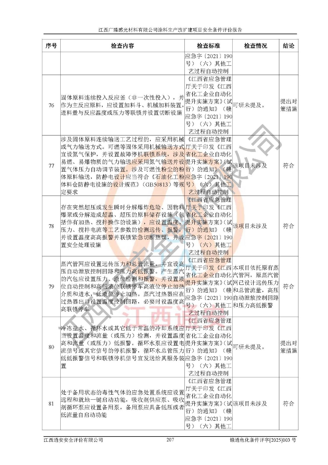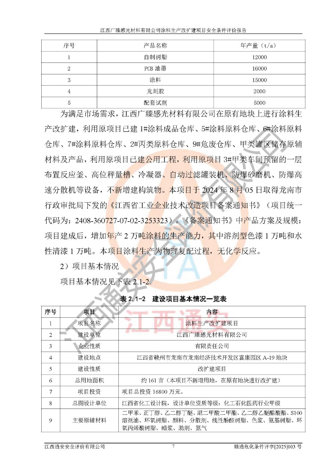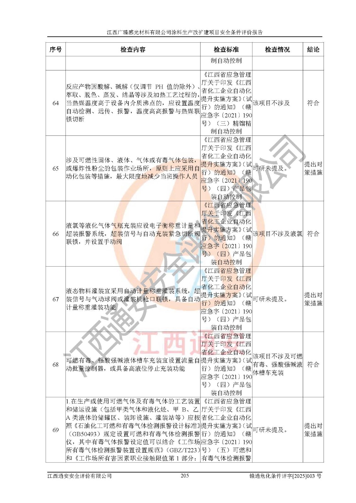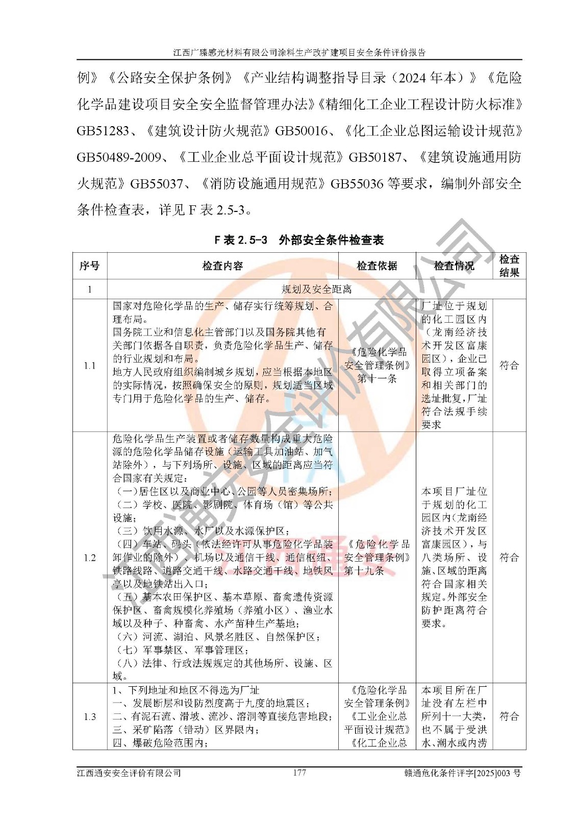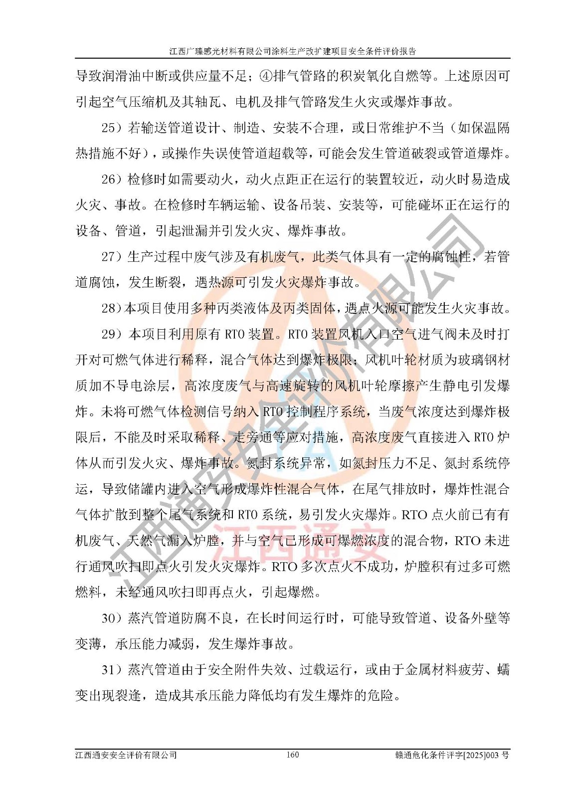 1)本项目取得了龙南市行政审批局下发的《江西省工业企业技术改造项目备案通知书》(项目统一代码为:2408-360727-07-02-3253323)、《建设用地规划许可证》、龙南市自然资源局出具对《关于为江西广臻年产2万吨涂料技改项目出具用地证明的函》的复函,符合地方产业发展规划的要求。 2)根据《危险化学品目录》(2015年版,十部委公告2022年第8号修订),本项目原辅料蜡浆、色浆、助剂、二甲苯、正丁醇、乙二醇丁醚、乙二醇乙醚醋酸酯、S100溶剂油、氮气[压缩的]及产品溶剂型涂料(色漆)属于危险化学品。本项目不涉及监控化学品、剧毒化学品、易制爆化学品、易制毒化学品、重点监管的危险化学品、特别管控危险化学品、高毒物品。本项目不涉及重点监管的危险化工工艺。 3)根据《危险化学品重大危险源辨识》(GB18218-2018),该项目未构成危险化学品重大危险源。 4)项目存在的主要危险因素有:火灾爆炸、容器爆炸、中毒窒息、灼烫、触电、**伤害、机械伤害、高处坠落、物体打击、淹溺等,存在的主要危害因素有:噪声与振动、高温、有害化学物质等;引起事故的原因有人的不安全行为、物的不安全状态、管理缺陷和环境不良。其中*主要的危险有害因素是火灾爆炸。 5)采用预先危险性分析法评价,结果为: (1)通过预先危险(PHA)分析可知,项目厂址及总体布局单元存在周边环境相互影响,发生异常情况,可对周边企业生产经营活动、人员活动产生影响;存在自然条件影响,可因雷击、暴雨等引起事故;存在**伤害、建筑物危害,其固有的危险性等级为Ⅱ级,属于“临界的”,应予以排除、采取控制措施因素。 (2)生产作业存在的危险因素包括火灾爆炸、触电、灼烫、中毒窒息固有的危险等级为Ⅲ级,属于“危险的”,可能导致人员伤亡和系统损坏的因素,需要采取防范和对策措施的因素;其它危险因素固有的危险等级为Ⅱ级,属于“临界的”,应予以排除、采取控制措施因素。 (3)生产作业存在的噪声、粉尘、高温、有害化学物质的危险有害因素等级为Ⅱ级,属于“临界的”,应予以排除、采取控制措施因素。 6)危险度评价分析,结果为: 生产装置危险度评价分析:3#甲类车间为中度危险(Ⅱ级)。 储存单元危险度评价分析:1#涂料成品仓库为**危险(Ⅰ级)、5#涂料原料仓库为**危险(Ⅰ级)、6#涂料原料仓库为中度危险(Ⅱ级)、7#涂料原料仓库为中度危险(Ⅱ级)、9#危废仓库为中度危险(Ⅱ级)、2#丙类原料仓库为中度危险(Ⅱ级)、甲类罐区为**危险(Ⅰ级)。 7)作业条件危险性评价结果:在选定的评价单元中,其危险分值均在70以下,危险程度基本属于“可能危险”、“稍有危险”范围,作业条件相对安全。企业经营过程中首先应重点加强对甲类生产车间、甲类仓库、储罐区的危险因素的严格控制,注重日常安全管理;其次要建立健全完善的安全生产责任制、安全管理制度、安全技术操作规程并**其贯彻落实;第三要认真抓好操作人员、管理人员的安全知识和操作技能的培训,**人员具有与工程技术水平相适应的技术素质和安全素质,**安全作业。 8)项目建设场地符合当地规划要求,建设场地通过合理规划,其选址、周边环境、总平面布置、交通运输等能符合《中华人民共和国安全生产法》《危险化学品安全管理条例》《建筑设计防火规范》《精细化工企业工程设计防火标准》等法规、标准、规范要求。 厂址地区地震活动相对较弱,灾害性天气出现频率稍高,自然灾害对项目建设具有**影响,通过采取相应的防护措施,自然条件适宜建设。 9)建设项目符合**产业政策的要求;选择工艺为现行成熟工艺,其安全可靠性可得到**。 10)本报告已根据有关安全生产法律、法规、规章和**标准、行业标准,并严格执行省委办公厅省**办公厅《关于全面加强危险化学品安全生产工作的实施意见》(赣办发[2020]32号)及鄱阳湖生态经济区、长江经济带、“五河一湖”相关政策规定,客观、公正、科学地进行安全评价,项目符合《江西省应急管理厅关于印发《江西省危险化学品建设项目安全监督管理实施细则》(试行)的通知》(赣应急字[2021]100号)的要求。 11)本报告结合工艺特征,提出应采取的对应的自动化控制系统及自动化实施方案,满足《江西省应急管理厅关于印发《江西省化工企业自动化提升实施方案》(试行)的通知》(赣应急字[2021]190号)的要求。 综上所述:江西广臻感光材料有限公司涂料生产改扩建项目的产业政策、安全条件、厂址、总体布局、主要技术和工艺、装置、设施、配套和辅助工程、安全管理等均满足安全生产相关法律法规、标准规范的要求,该建设项目的危险、有害因素可得到**控制,风险在可接受范围内,具有**的本质安全水平。企业应认真落实本报告提出的安全对策与建议,在下一步设计、建设施工过程中严把质量关、严格施工安全管理和检查,使各项安全措施落实到实处,且严格执行建设项目安全设施“三同时”的规定,建立**的事故应急体系和措施。 |