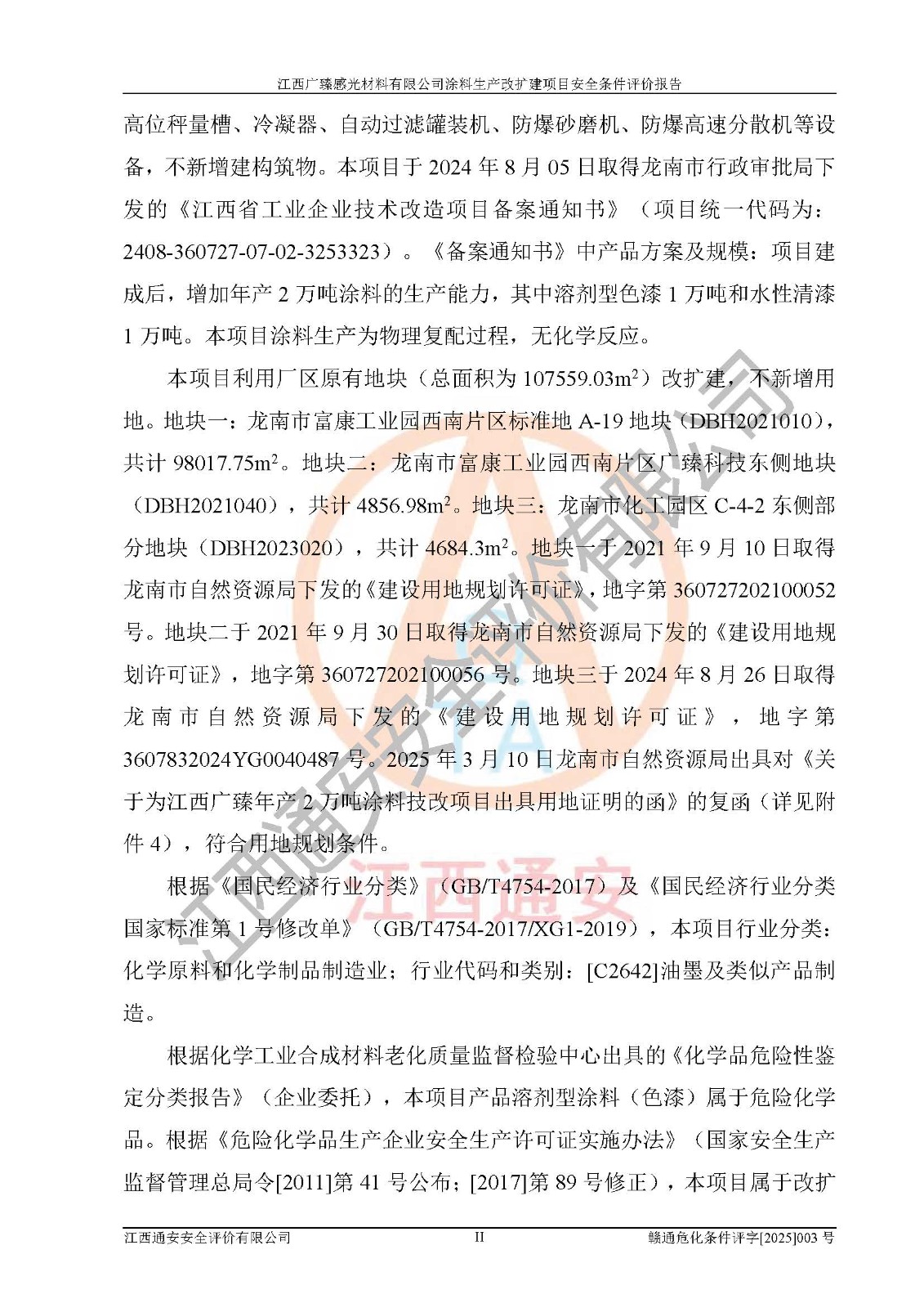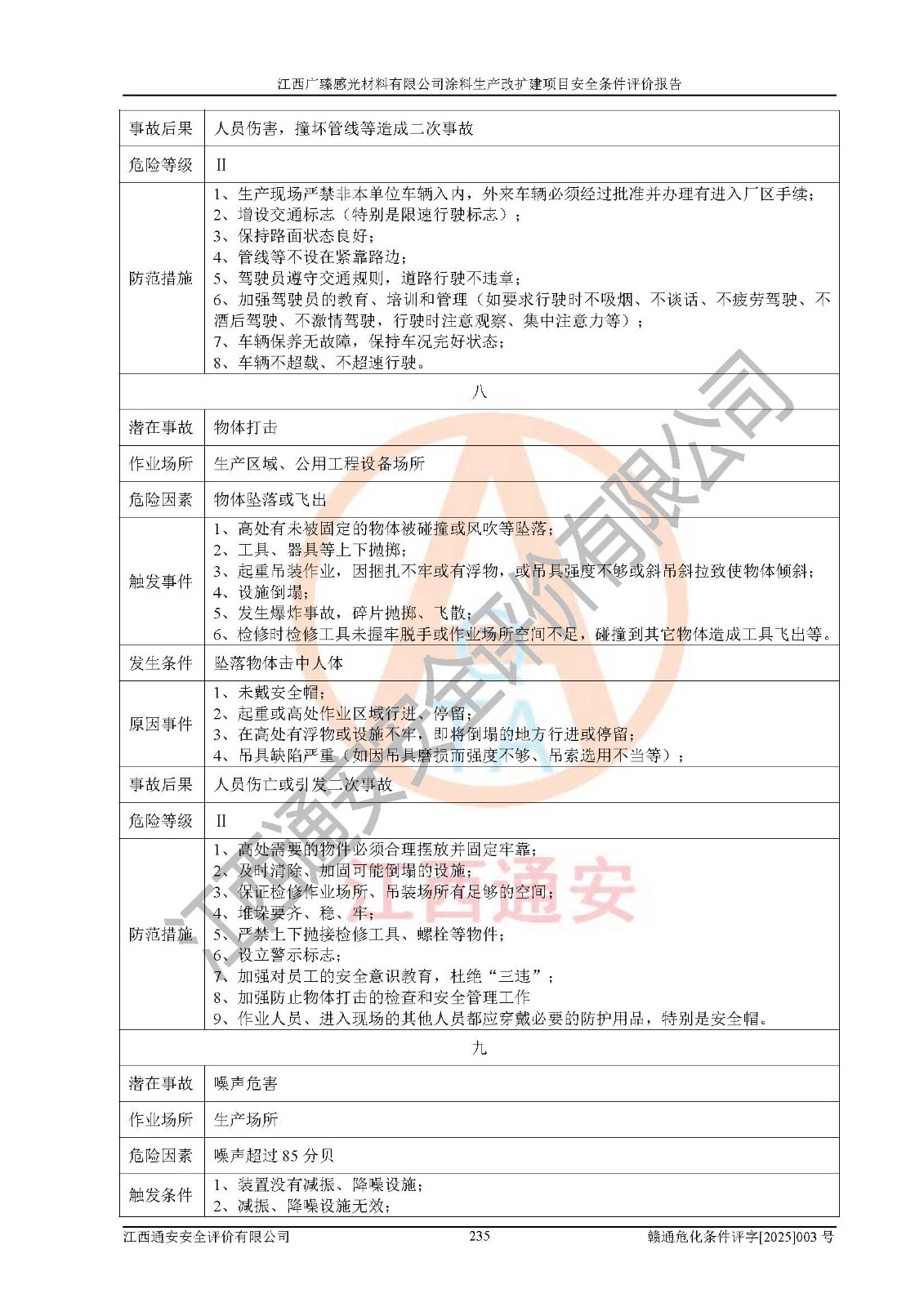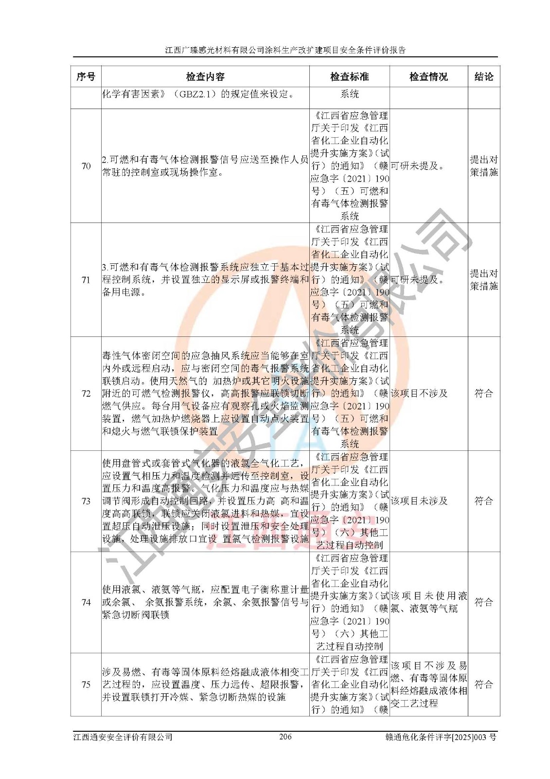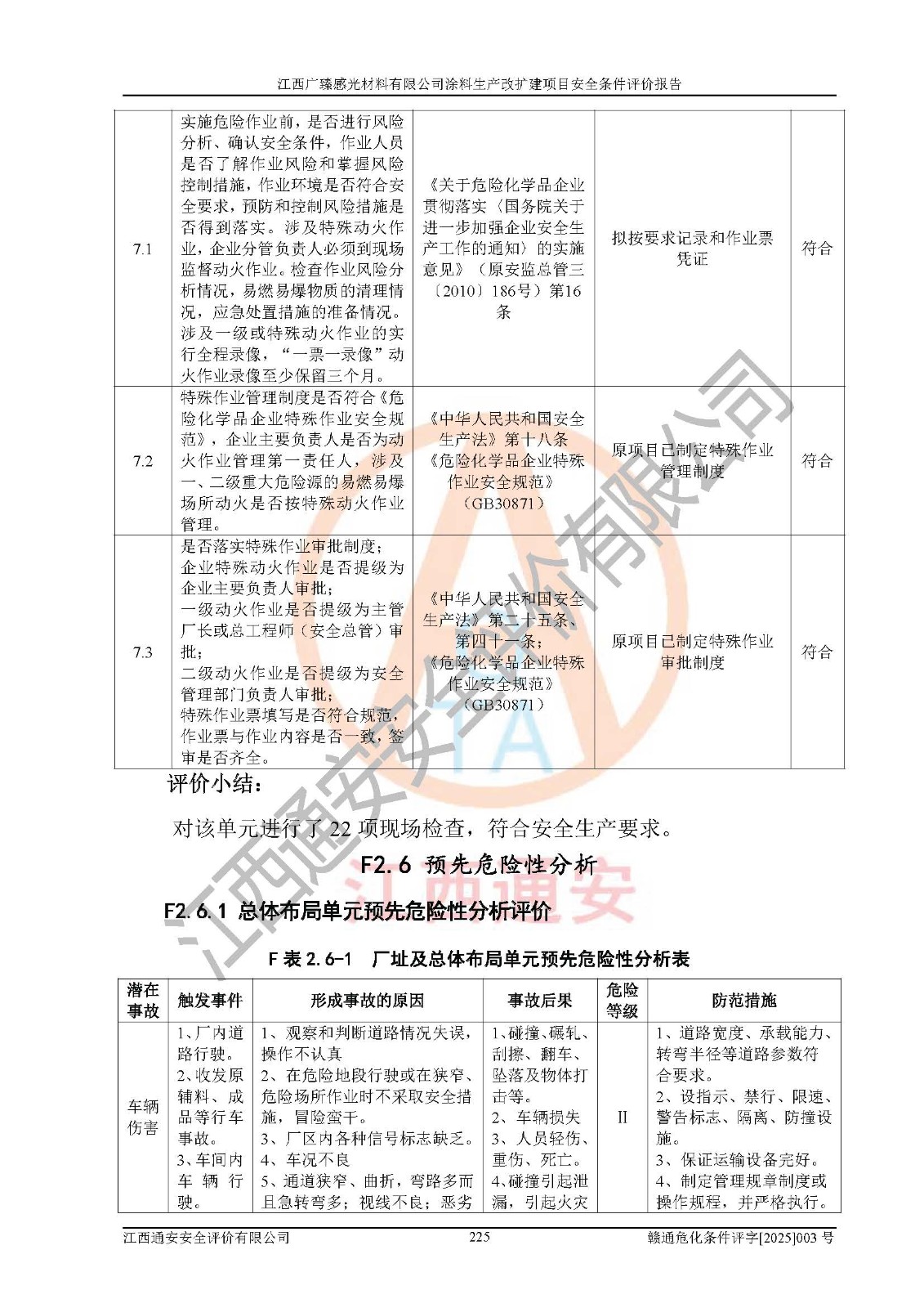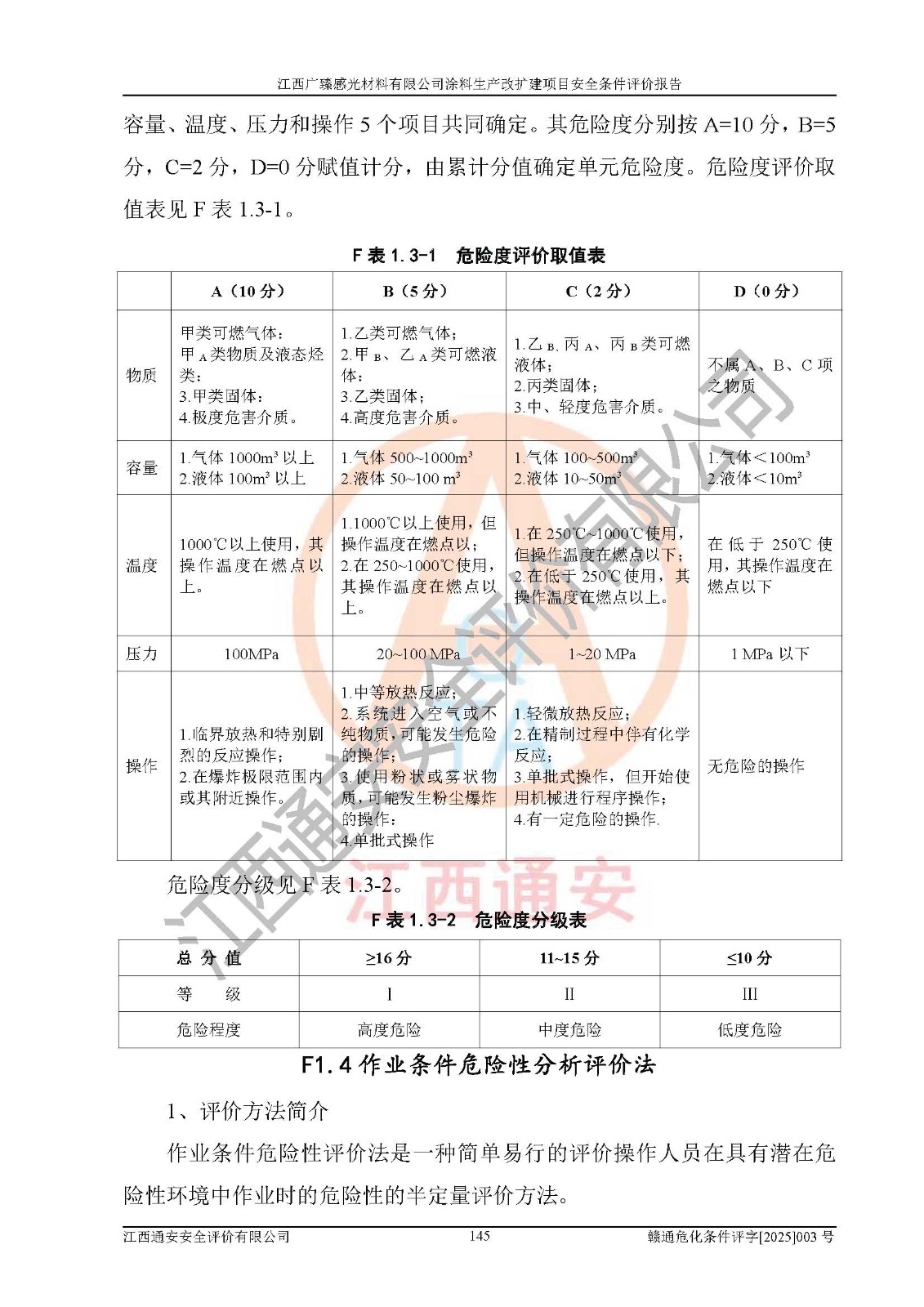 1)本项目取得了龙南市行政审批局下发的《江西省工业企业技术改造项目备案通知书》(项目统一代码为:2408-360727-07-02-3253323)、《建设用地规划许可证》、龙南市自然资源局出具对《关于为江西广臻年产2万吨涂料技改项目出具用地证明的函》的复函,符合地方产业发展规划的要求。 2)根据《危险化学品目录》(2015年版,十部委公告2022年第8号修订),本项目原辅料蜡浆、色浆、助剂、二甲苯、正丁醇、乙二醇丁醚、乙二醇乙醚醋酸酯、S100溶剂油、氮气[压缩的]及产品溶剂型涂料(色漆)属于危险化学品。本项目不涉及监控化学品、剧毒化学品、易制爆化学品、易制毒化学品、重点监管的危险化学品、特别管控危险化学品、高毒物品。本项目不涉及重点监管的危险化工工艺。 3)根据《危险化学品重大危险源辨识》(GB18218-2018),该项目未构成危险化学品重大危险源。 4)项目存在的主要危险因素有:火灾爆炸、容器爆炸、中毒窒息、灼烫、触电、**伤害、机械伤害、高处坠落、物体打击、淹溺等,存在的主要危害因素有:噪声与振动、高温、有害化学物质等;引起事故的原因有人的不安全行为、物的不安全状态、管理缺陷和环境不良。其中*主要的危险有害因素是火灾爆炸。 5)采用预先危险性分析法评价,结果为: (1)通过预先危险(PHA)分析可知,项目厂址及总体布局单元存在周边环境相互影响,发生异常情况,可对周边企业生产经营活动、人员活动产生影响;存在自然条件影响,可因雷击、暴雨等引起事故;存在**伤害、建筑物危害,其固有的危险性等级为Ⅱ级,属于“临界的”,应予以排除、采取控制措施因素。 (2)生产作业存在的危险因素包括火灾爆炸、触电、灼烫、中毒窒息固有的危险等级为Ⅲ级,属于“危险的”,可能导致人员伤亡和系统损坏的因素,需要采取防范和对策措施的因素;其它危险因素固有的危险等级为Ⅱ级,属于“临界的”,应予以排除、采取控制措施因素。 (3)生产作业存在的噪声、粉尘、高温、有害化学物质的危险有害因素等级为Ⅱ级,属于“临界的”,应予以排除、采取控制措施因素。 6)危险度评价分析,结果为: 生产装置危险度评价分析:3#甲类车间为中度危险(Ⅱ级)。 储存单元危险度评价分析:1#涂料成品仓库为**危险(Ⅰ级)、5#涂料原料仓库为**危险(Ⅰ级)、6#涂料原料仓库为中度危险(Ⅱ级)、7#涂料原料仓库为中度危险(Ⅱ级)、9#危废仓库为中度危险(Ⅱ级)、2#丙类原料仓库为中度危险(Ⅱ级)、甲类罐区为**危险(Ⅰ级)。 7)作业条件危险性评价结果:在选定的评价单元中,其危险分值均在70以下,危险程度基本属于“可能危险”、“稍有危险”范围,作业条件相对安全。企业经营过程中首先应重点加强对甲类生产车间、甲类仓库、储罐区的危险因素的严格控制,注重日常安全管理;其次要建立健全完善的安全生产责任制、安全管理制度、安全技术操作规程并**其贯彻落实;第三要认真抓好操作人员、管理人员的安全知识和操作技能的培训,**人员具有与工程技术水平相适应的技术素质和安全素质,**安全作业。 8)项目建设场地符合当地规划要求,建设场地通过合理规划,其选址、周边环境、总平面布置、交通运输等能符合《中华人民共和国安全生产法》《危险化学品安全管理条例》《建筑设计防火规范》《精细化工企业工程设计防火标准》等法规、标准、规范要求。 厂址地区地震活动相对较弱,灾害性天气出现频率稍高,自然灾害对项目建设具有**影响,通过采取相应的防护措施,自然条件适宜建设。 9)建设项目符合**产业政策的要求;选择工艺为现行成熟工艺,其安全可靠性可得到**。 10)本报告已根据有关安全生产法律、法规、规章和**标准、行业标准,并严格执行省委办公厅省**办公厅《关于全面加强危险化学品安全生产工作的实施意见》(赣办发[2020]32号)及鄱阳湖生态经济区、长江经济带、“五河一湖”相关政策规定,客观、公正、科学地进行安全评价,项目符合《江西省应急管理厅关于印发《江西省危险化学品建设项目安全监督管理实施细则》(试行)的通知》(赣应急字[2021]100号)的要求。 11)本报告结合工艺特征,提出应采取的对应的自动化控制系统及自动化实施方案,满足《江西省应急管理厅关于印发《江西省化工企业自动化提升实施方案》(试行)的通知》(赣应急字[2021]190号)的要求。 综上所述:江西广臻感光材料有限公司涂料生产改扩建项目的产业政策、安全条件、厂址、总体布局、主要技术和工艺、装置、设施、配套和辅助工程、安全管理等均满足安全生产相关法律法规、标准规范的要求,该建设项目的危险、有害因素可得到**控制,风险在可接受范围内,具有**的本质安全水平。企业应认真落实本报告提出的安全对策与建议,在下一步设计、建设施工过程中严把质量关、严格施工安全管理和检查,使各项安全措施落实到实处,且严格执行建设项目安全设施“三同时”的规定,建立**的事故应急体系和措施。 |