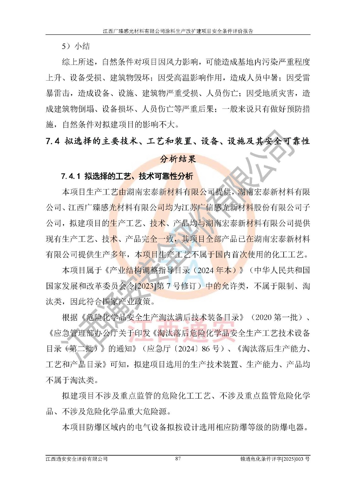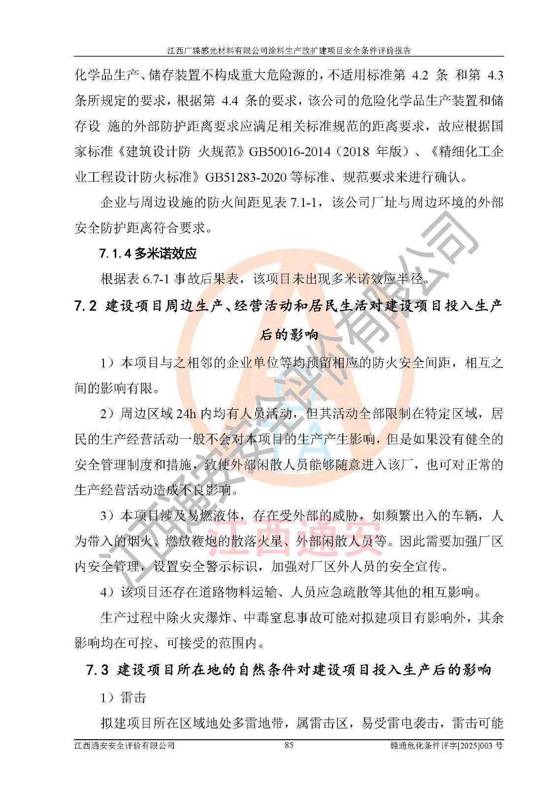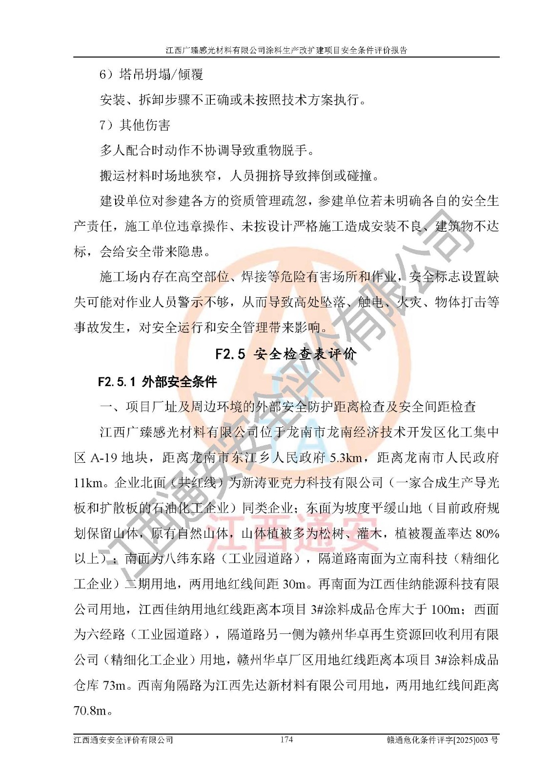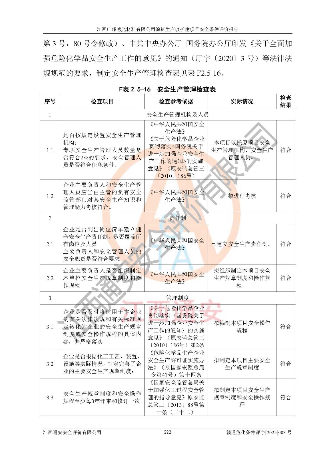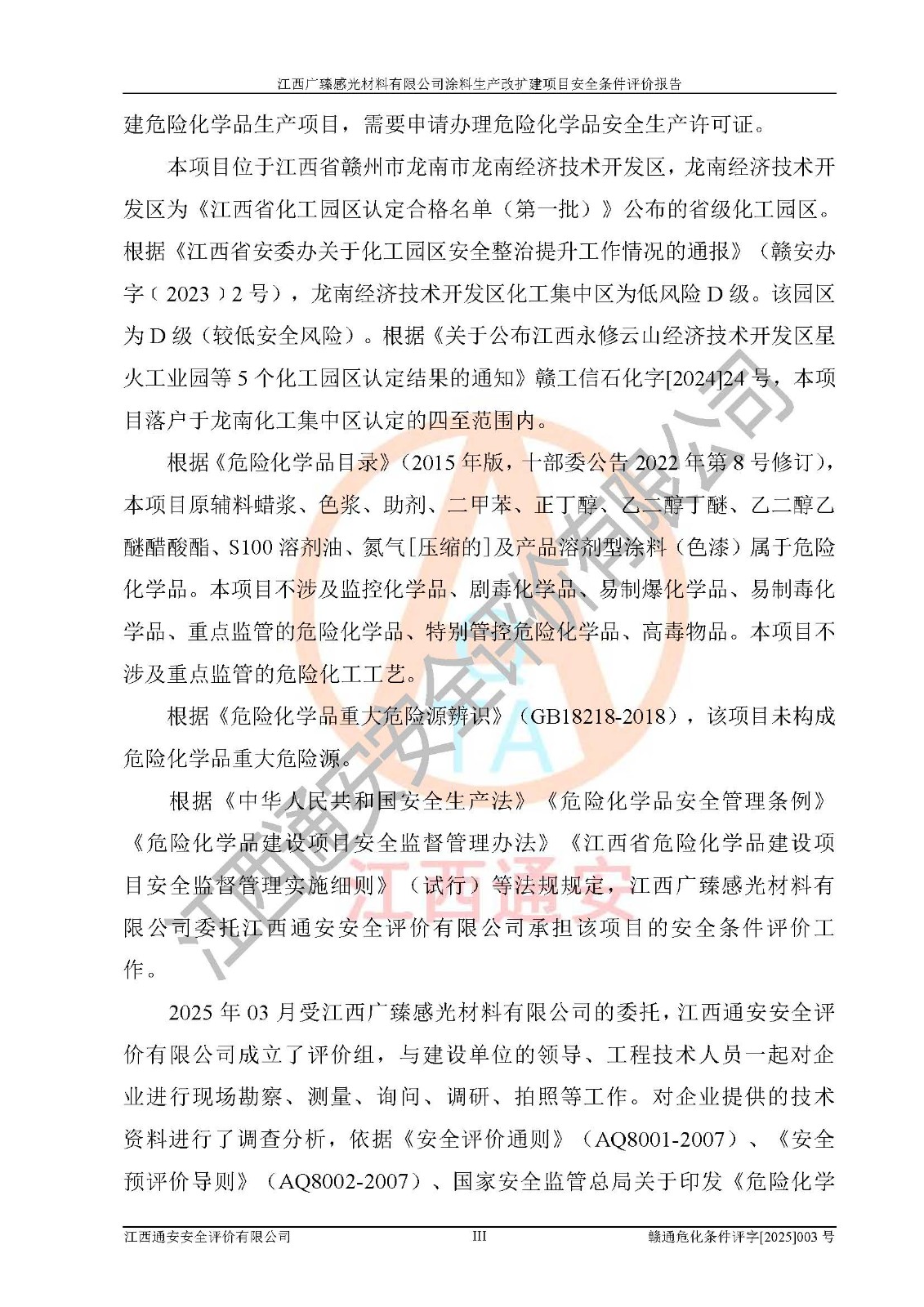 1)本项目取得了龙南市行政审批局下发的《江西省工业企业技术改造项目备案通知书》(项目统一代码为:2408-360727-07-02-3253323)、《建设用地规划许可证》、龙南市自然资源局出具对《关于为江西广臻年产2万吨涂料技改项目出具用地证明的函》的复函,符合地方产业发展规划的要求。 2)根据《危险化学品目录》(2015年版,十部委公告2022年第8号修订),本项目原辅料蜡浆、色浆、助剂、二甲苯、正丁醇、乙二醇丁醚、乙二醇乙醚醋酸酯、S100溶剂油、氮气[压缩的]及产品溶剂型涂料(色漆)属于危险化学品。本项目不涉及监控化学品、剧毒化学品、易制爆化学品、易制毒化学品、重点监管的危险化学品、特别管控危险化学品、高毒物品。本项目不涉及重点监管的危险化工工艺。 3)根据《危险化学品重大危险源辨识》(GB18218-2018),该项目未构成危险化学品重大危险源。 4)项目存在的主要危险因素有:火灾爆炸、容器爆炸、中毒窒息、灼烫、触电、**伤害、机械伤害、高处坠落、物体打击、淹溺等,存在的主要危害因素有:噪声与振动、高温、有害化学物质等;引起事故的原因有人的不安全行为、物的不安全状态、管理缺陷和环境不良。其中*主要的危险有害因素是火灾爆炸。 5)采用预先危险性分析法评价,结果为: (1)通过预先危险(PHA)分析可知,项目厂址及总体布局单元存在周边环境相互影响,发生异常情况,可对周边企业生产经营活动、人员活动产生影响;存在自然条件影响,可因雷击、暴雨等引起事故;存在**伤害、建筑物危害,其固有的危险性等级为Ⅱ级,属于“临界的”,应予以排除、采取控制措施因素。 (2)生产作业存在的危险因素包括火灾爆炸、触电、灼烫、中毒窒息固有的危险等级为Ⅲ级,属于“危险的”,可能导致人员伤亡和系统损坏的因素,需要采取防范和对策措施的因素;其它危险因素固有的危险等级为Ⅱ级,属于“临界的”,应予以排除、采取控制措施因素。 (3)生产作业存在的噪声、粉尘、高温、有害化学物质的危险有害因素等级为Ⅱ级,属于“临界的”,应予以排除、采取控制措施因素。 6)危险度评价分析,结果为: 生产装置危险度评价分析:3#甲类车间为中度危险(Ⅱ级)。 储存单元危险度评价分析:1#涂料成品仓库为**危险(Ⅰ级)、5#涂料原料仓库为**危险(Ⅰ级)、6#涂料原料仓库为中度危险(Ⅱ级)、7#涂料原料仓库为中度危险(Ⅱ级)、9#危废仓库为中度危险(Ⅱ级)、2#丙类原料仓库为中度危险(Ⅱ级)、甲类罐区为**危险(Ⅰ级)。 7)作业条件危险性评价结果:在选定的评价单元中,其危险分值均在70以下,危险程度基本属于“可能危险”、“稍有危险”范围,作业条件相对安全。企业经营过程中首先应重点加强对甲类生产车间、甲类仓库、储罐区的危险因素的严格控制,注重日常安全管理;其次要建立健全完善的安全生产责任制、安全管理制度、安全技术操作规程并**其贯彻落实;第三要认真抓好操作人员、管理人员的安全知识和操作技能的培训,**人员具有与工程技术水平相适应的技术素质和安全素质,**安全作业。 8)项目建设场地符合当地规划要求,建设场地通过合理规划,其选址、周边环境、总平面布置、交通运输等能符合《中华人民共和国安全生产法》《危险化学品安全管理条例》《建筑设计防火规范》《精细化工企业工程设计防火标准》等法规、标准、规范要求。 厂址地区地震活动相对较弱,灾害性天气出现频率稍高,自然灾害对项目建设具有**影响,通过采取相应的防护措施,自然条件适宜建设。 9)建设项目符合**产业政策的要求;选择工艺为现行成熟工艺,其安全可靠性可得到**。 10)本报告已根据有关安全生产法律、法规、规章和**标准、行业标准,并严格执行省委办公厅省**办公厅《关于全面加强危险化学品安全生产工作的实施意见》(赣办发[2020]32号)及鄱阳湖生态经济区、长江经济带、“五河一湖”相关政策规定,客观、公正、科学地进行安全评价,项目符合《江西省应急管理厅关于印发《江西省危险化学品建设项目安全监督管理实施细则》(试行)的通知》(赣应急字[2021]100号)的要求。 11)本报告结合工艺特征,提出应采取的对应的自动化控制系统及自动化实施方案,满足《江西省应急管理厅关于印发《江西省化工企业自动化提升实施方案》(试行)的通知》(赣应急字[2021]190号)的要求。 综上所述:江西广臻感光材料有限公司涂料生产改扩建项目的产业政策、安全条件、厂址、总体布局、主要技术和工艺、装置、设施、配套和辅助工程、安全管理等均满足安全生产相关法律法规、标准规范的要求,该建设项目的危险、有害因素可得到**控制,风险在可接受范围内,具有**的本质安全水平。企业应认真落实本报告提出的安全对策与建议,在下一步设计、建设施工过程中严把质量关、严格施工安全管理和检查,使各项安全措施落实到实处,且严格执行建设项目安全设施“三同时”的规定,建立**的事故应急体系和措施。 |