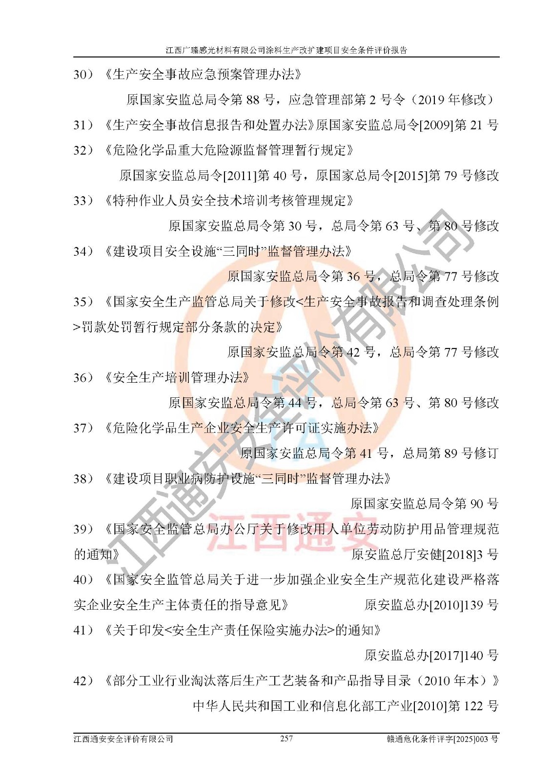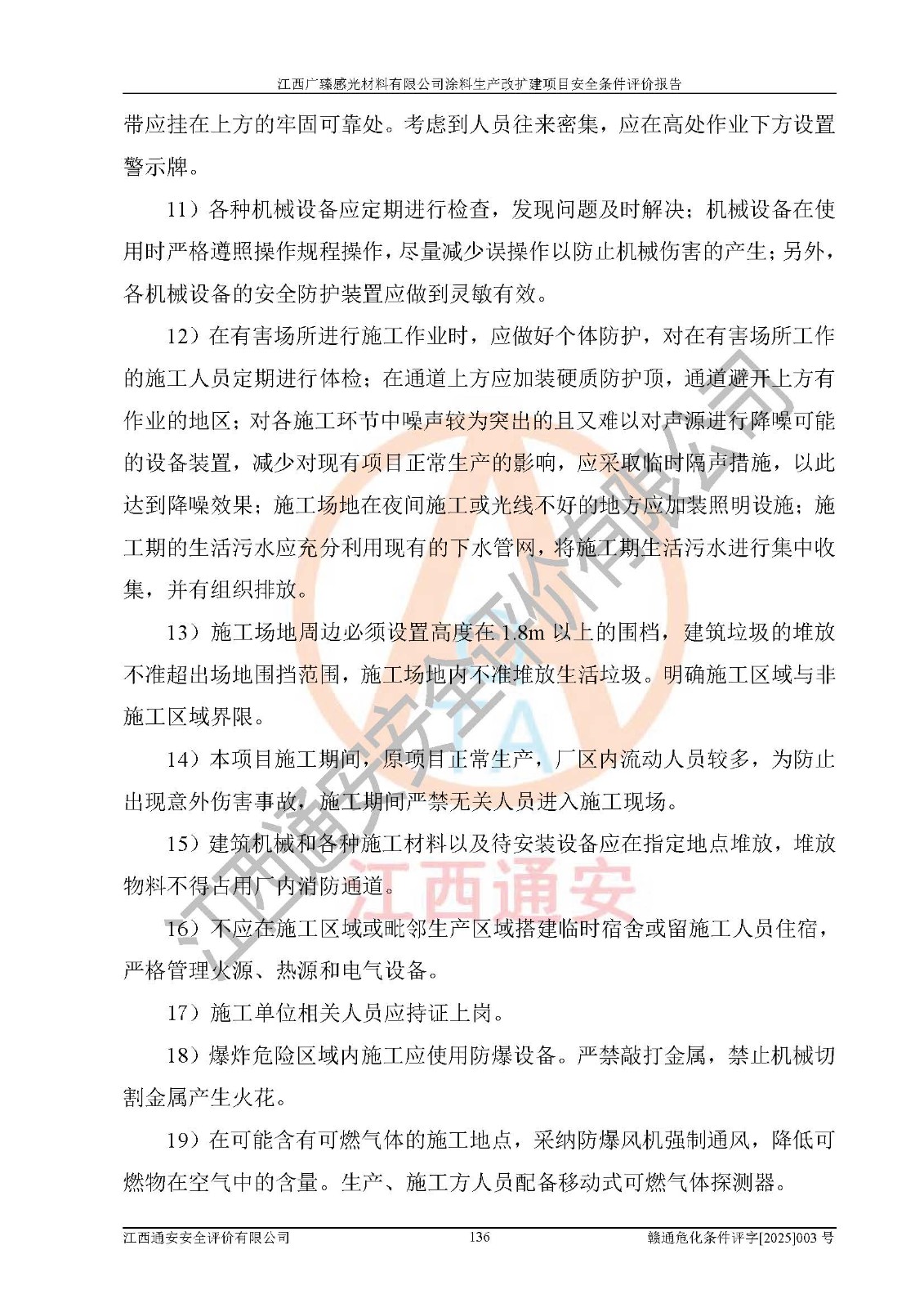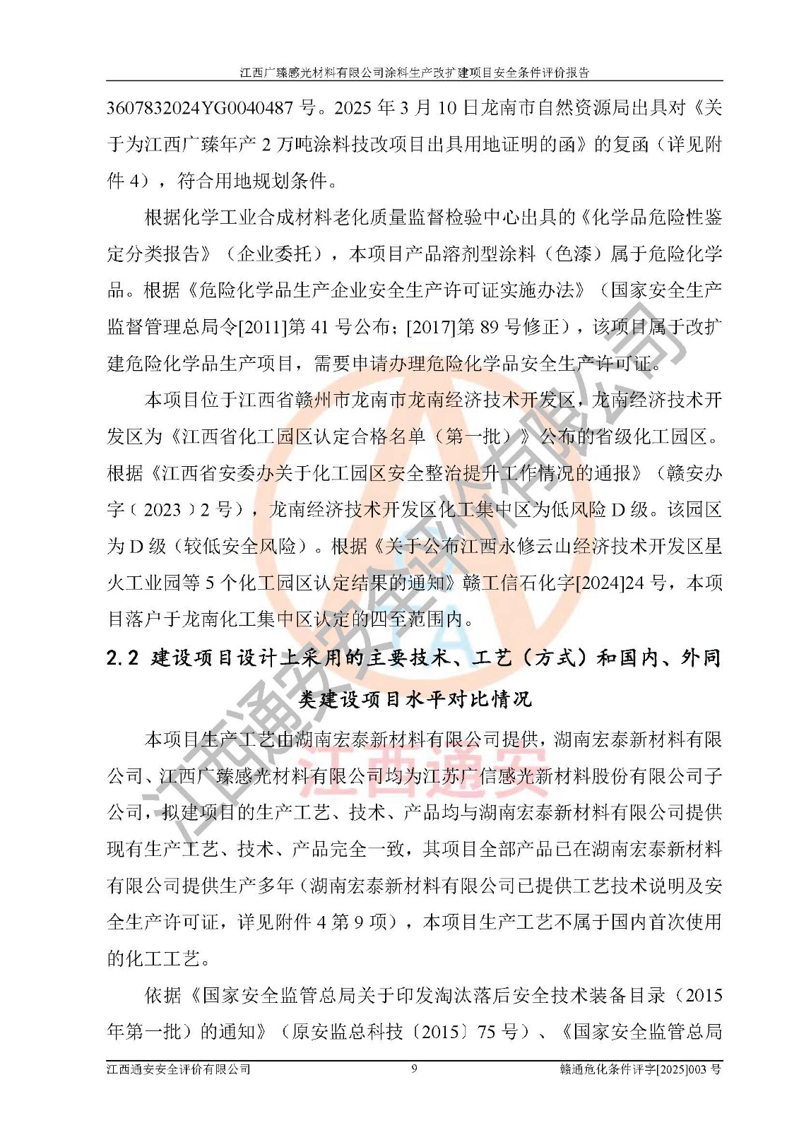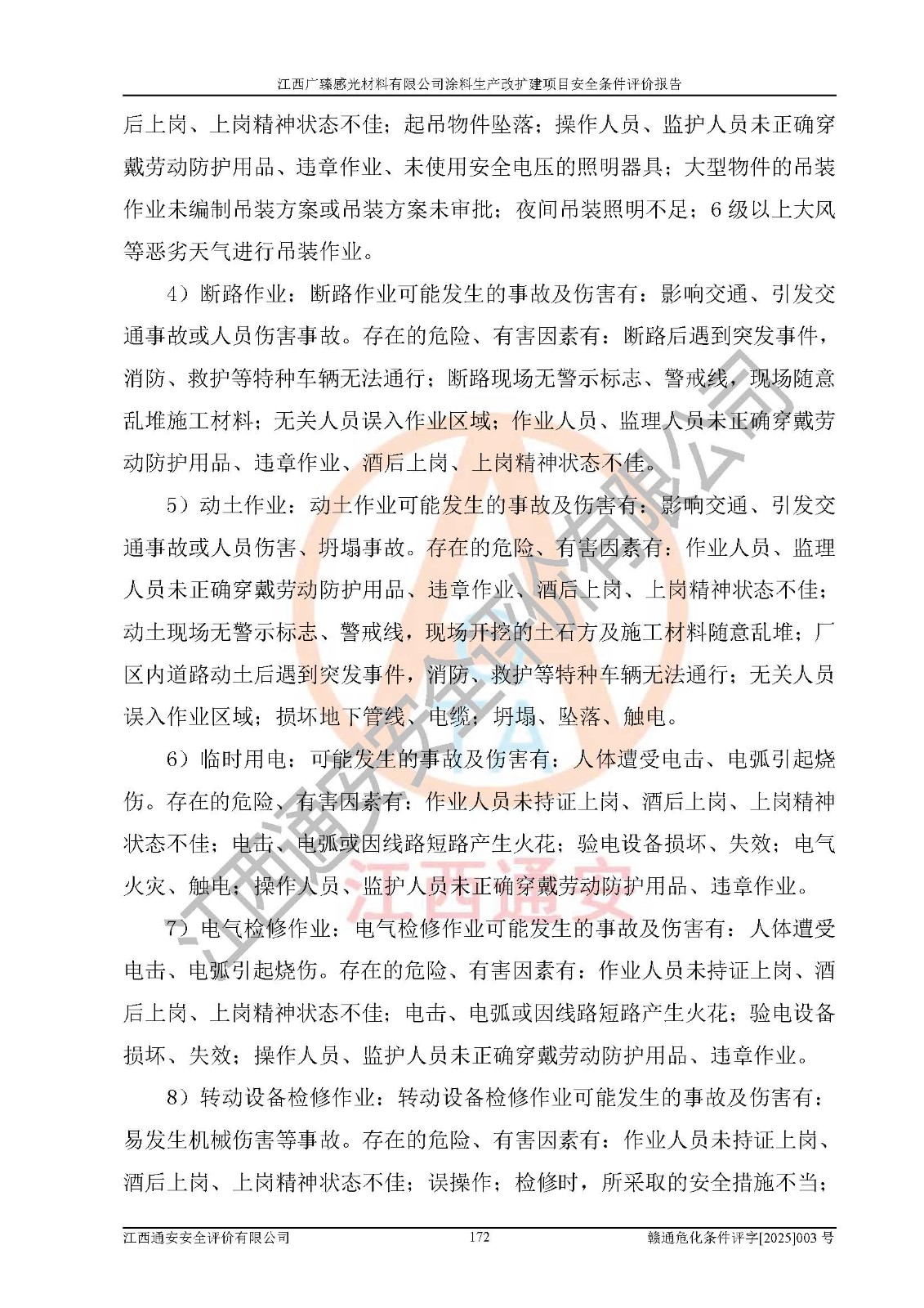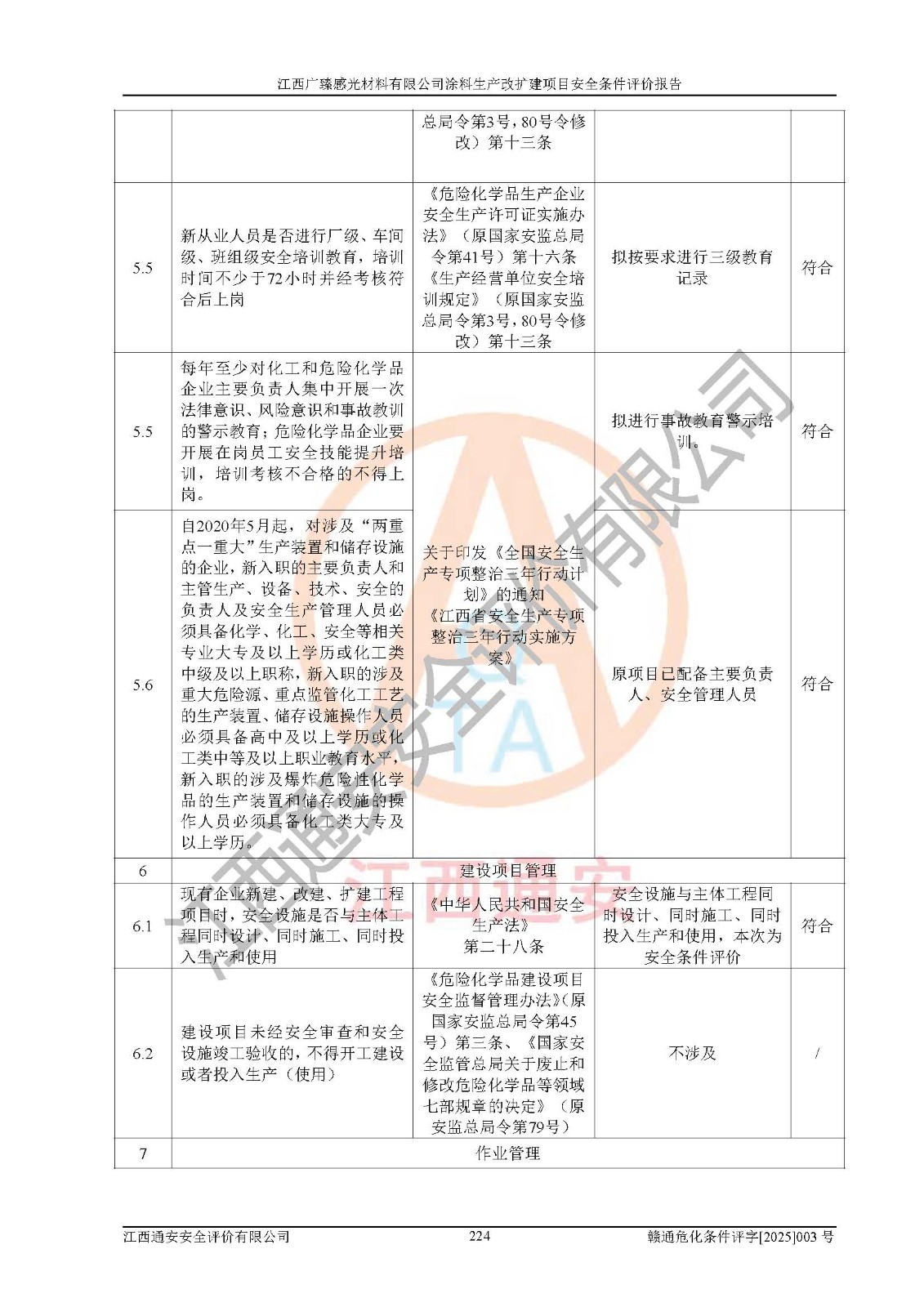 1)本项目取得了龙南市行政审批局下发的《江西省工业企业技术改造项目备案通知书》(项目统一代码为:2408-360727-07-02-3253323)、《建设用地规划许可证》、龙南市自然资源局出具对《关于为江西广臻年产2万吨涂料技改项目出具用地证明的函》的复函,符合地方产业发展规划的要求。 2)根据《危险化学品目录》(2015年版,十部委公告2022年第8号修订),本项目原辅料蜡浆、色浆、助剂、二甲苯、正丁醇、乙二醇丁醚、乙二醇乙醚醋酸酯、S100溶剂油、氮气[压缩的]及产品溶剂型涂料(色漆)属于危险化学品。本项目不涉及监控化学品、剧毒化学品、易制爆化学品、易制毒化学品、重点监管的危险化学品、特别管控危险化学品、高毒物品。本项目不涉及重点监管的危险化工工艺。 3)根据《危险化学品重大危险源辨识》(GB18218-2018),该项目未构成危险化学品重大危险源。 4)项目存在的主要危险因素有:火灾爆炸、容器爆炸、中毒窒息、灼烫、触电、**伤害、机械伤害、高处坠落、物体打击、淹溺等,存在的主要危害因素有:噪声与振动、高温、有害化学物质等;引起事故的原因有人的不安全行为、物的不安全状态、管理缺陷和环境不良。其中*主要的危险有害因素是火灾爆炸。 5)采用预先危险性分析法评价,结果为: (1)通过预先危险(PHA)分析可知,项目厂址及总体布局单元存在周边环境相互影响,发生异常情况,可对周边企业生产经营活动、人员活动产生影响;存在自然条件影响,可因雷击、暴雨等引起事故;存在**伤害、建筑物危害,其固有的危险性等级为Ⅱ级,属于“临界的”,应予以排除、采取控制措施因素。 (2)生产作业存在的危险因素包括火灾爆炸、触电、灼烫、中毒窒息固有的危险等级为Ⅲ级,属于“危险的”,可能导致人员伤亡和系统损坏的因素,需要采取防范和对策措施的因素;其它危险因素固有的危险等级为Ⅱ级,属于“临界的”,应予以排除、采取控制措施因素。 (3)生产作业存在的噪声、粉尘、高温、有害化学物质的危险有害因素等级为Ⅱ级,属于“临界的”,应予以排除、采取控制措施因素。 6)危险度评价分析,结果为: 生产装置危险度评价分析:3#甲类车间为中度危险(Ⅱ级)。 储存单元危险度评价分析:1#涂料成品仓库为**危险(Ⅰ级)、5#涂料原料仓库为**危险(Ⅰ级)、6#涂料原料仓库为中度危险(Ⅱ级)、7#涂料原料仓库为中度危险(Ⅱ级)、9#危废仓库为中度危险(Ⅱ级)、2#丙类原料仓库为中度危险(Ⅱ级)、甲类罐区为**危险(Ⅰ级)。 7)作业条件危险性评价结果:在选定的评价单元中,其危险分值均在70以下,危险程度基本属于“可能危险”、“稍有危险”范围,作业条件相对安全。企业经营过程中首先应重点加强对甲类生产车间、甲类仓库、储罐区的危险因素的严格控制,注重日常安全管理;其次要建立健全完善的安全生产责任制、安全管理制度、安全技术操作规程并**其贯彻落实;第三要认真抓好操作人员、管理人员的安全知识和操作技能的培训,**人员具有与工程技术水平相适应的技术素质和安全素质,**安全作业。 8)项目建设场地符合当地规划要求,建设场地通过合理规划,其选址、周边环境、总平面布置、交通运输等能符合《中华人民共和国安全生产法》《危险化学品安全管理条例》《建筑设计防火规范》《精细化工企业工程设计防火标准》等法规、标准、规范要求。 厂址地区地震活动相对较弱,灾害性天气出现频率稍高,自然灾害对项目建设具有**影响,通过采取相应的防护措施,自然条件适宜建设。 9)建设项目符合**产业政策的要求;选择工艺为现行成熟工艺,其安全可靠性可得到**。 10)本报告已根据有关安全生产法律、法规、规章和**标准、行业标准,并严格执行省委办公厅省**办公厅《关于全面加强危险化学品安全生产工作的实施意见》(赣办发[2020]32号)及鄱阳湖生态经济区、长江经济带、“五河一湖”相关政策规定,客观、公正、科学地进行安全评价,项目符合《江西省应急管理厅关于印发《江西省危险化学品建设项目安全监督管理实施细则》(试行)的通知》(赣应急字[2021]100号)的要求。 11)本报告结合工艺特征,提出应采取的对应的自动化控制系统及自动化实施方案,满足《江西省应急管理厅关于印发《江西省化工企业自动化提升实施方案》(试行)的通知》(赣应急字[2021]190号)的要求。 综上所述:江西广臻感光材料有限公司涂料生产改扩建项目的产业政策、安全条件、厂址、总体布局、主要技术和工艺、装置、设施、配套和辅助工程、安全管理等均满足安全生产相关法律法规、标准规范的要求,该建设项目的危险、有害因素可得到**控制,风险在可接受范围内,具有**的本质安全水平。企业应认真落实本报告提出的安全对策与建议,在下一步设计、建设施工过程中严把质量关、严格施工安全管理和检查,使各项安全措施落实到实处,且严格执行建设项目安全设施“三同时”的规定,建立**的事故应急体系和措施。 |