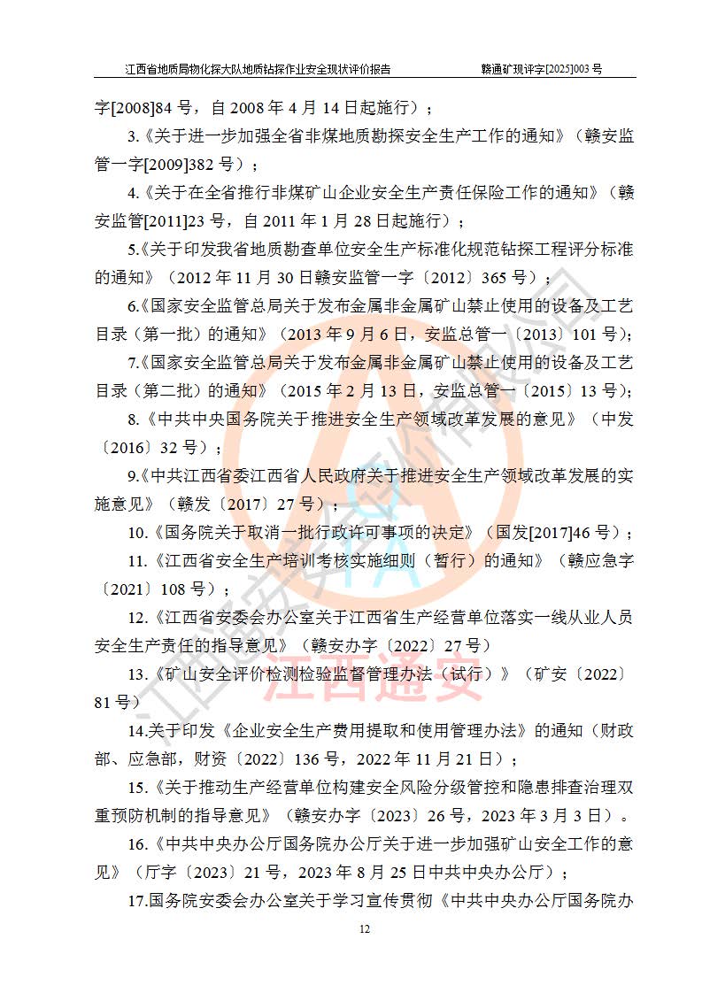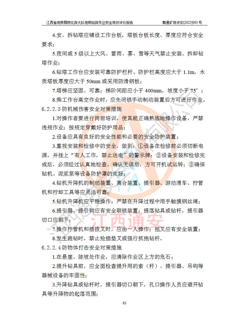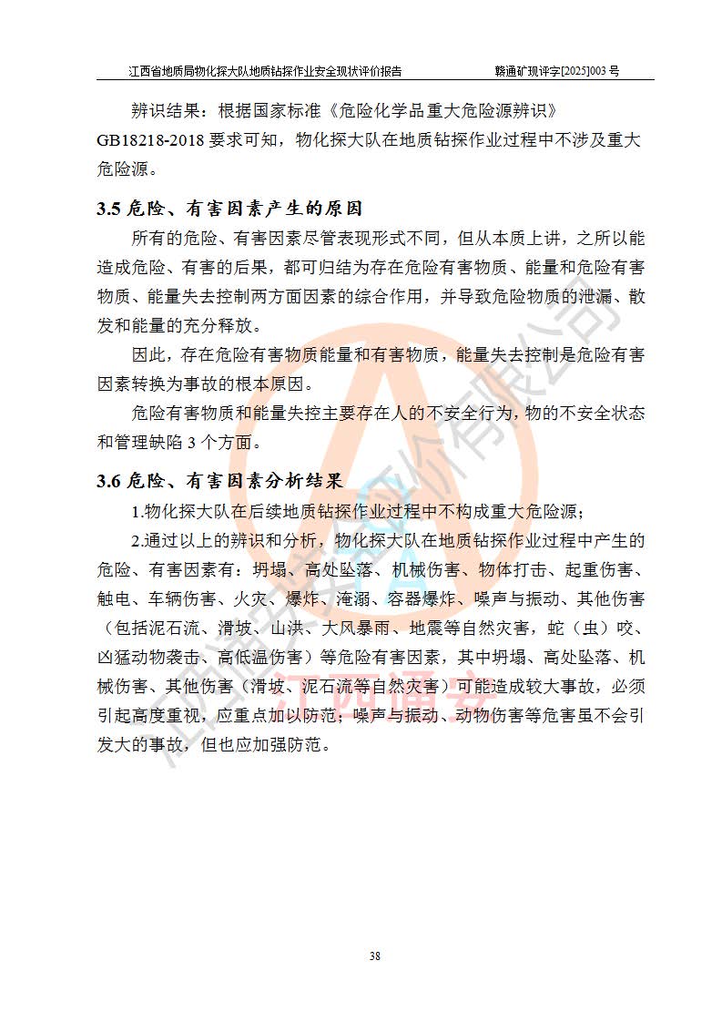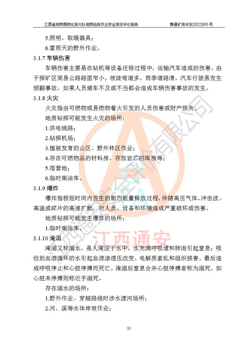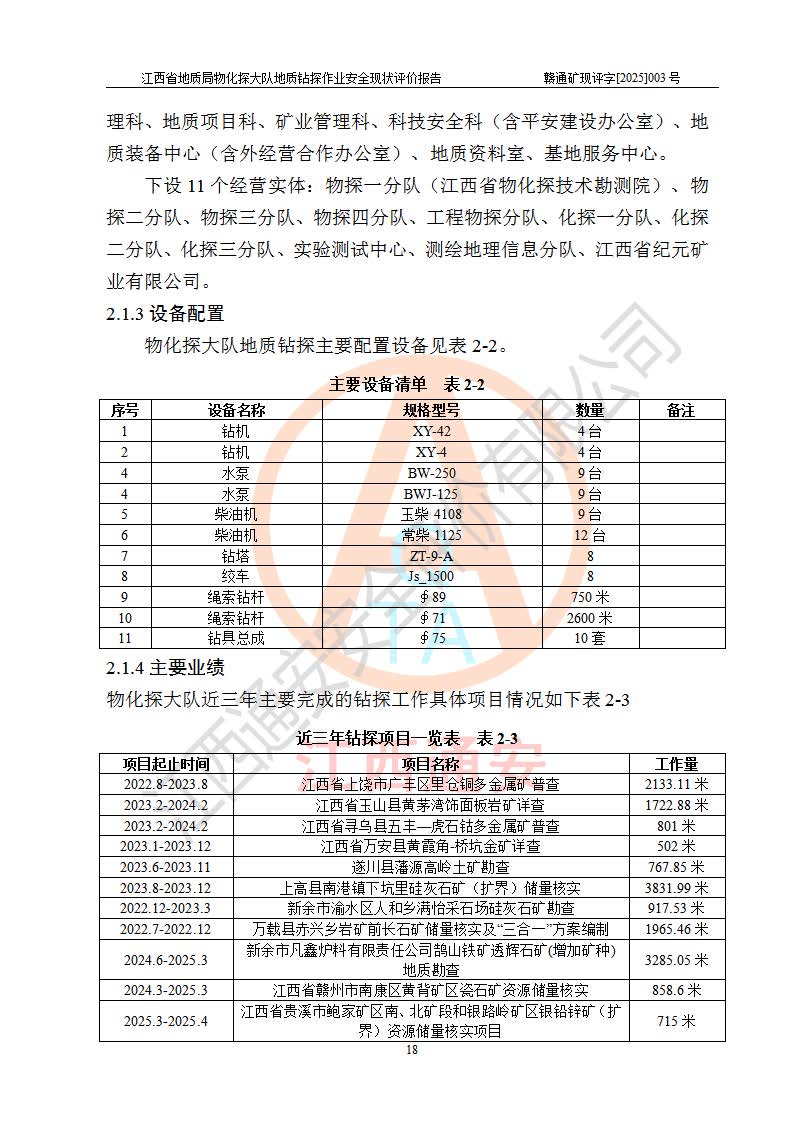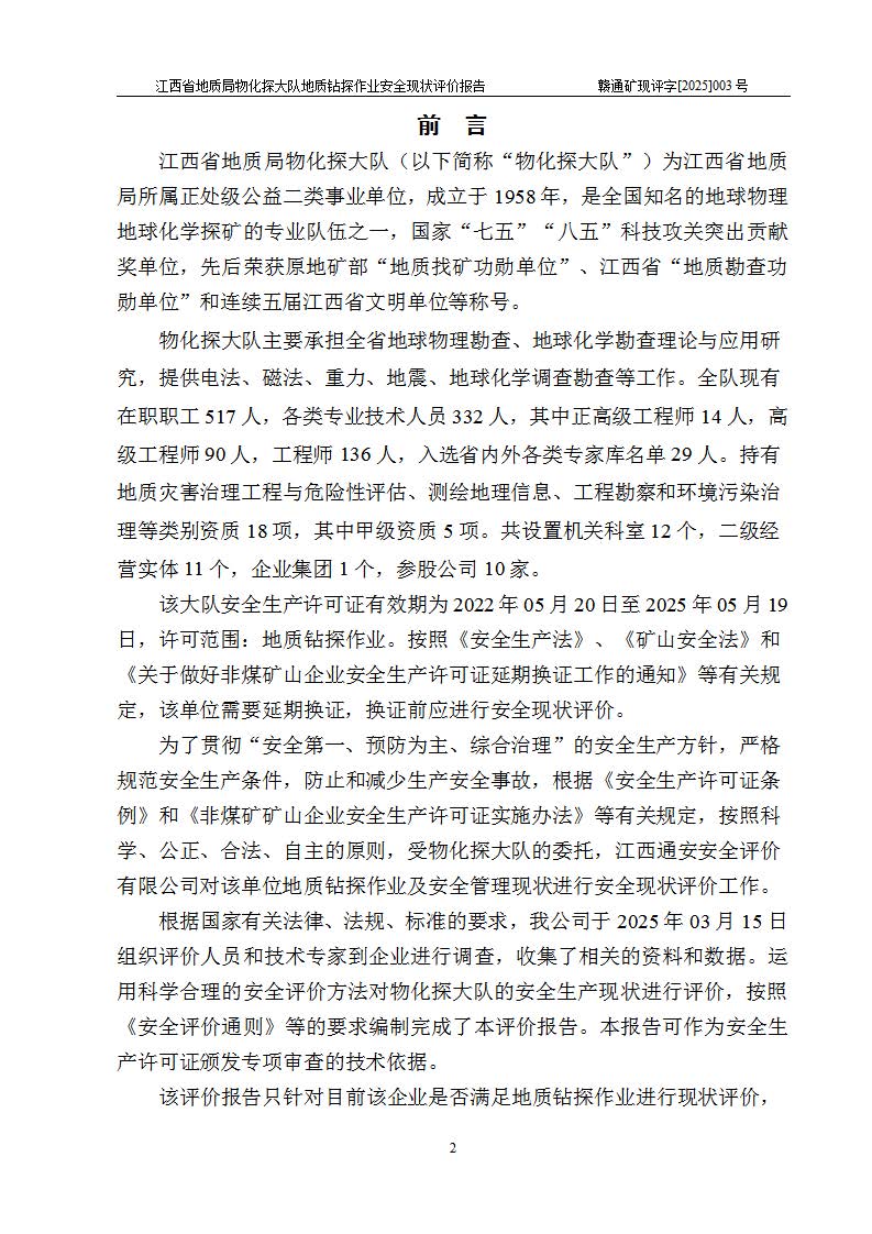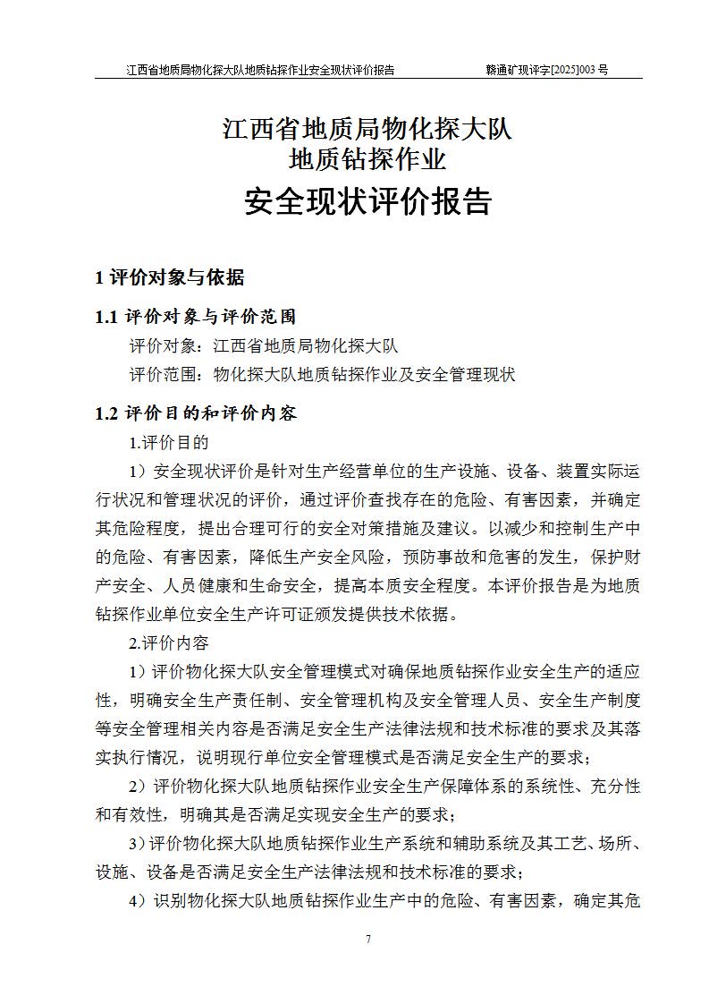 报告名称 | 江西省地质局物化探大队地质钻探作业安全现状评价报告 | |||||