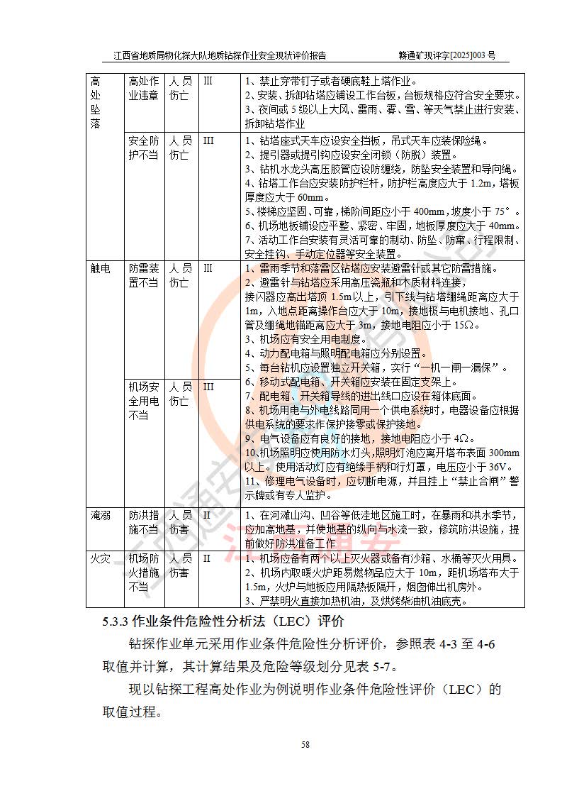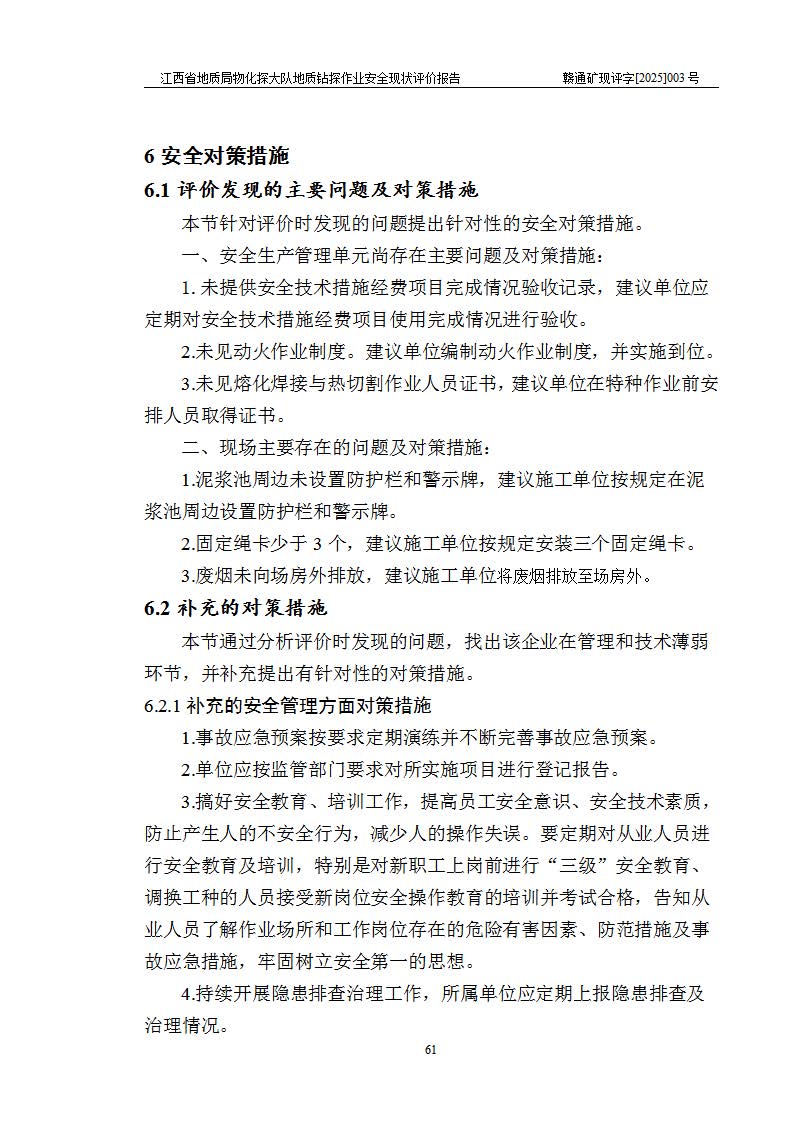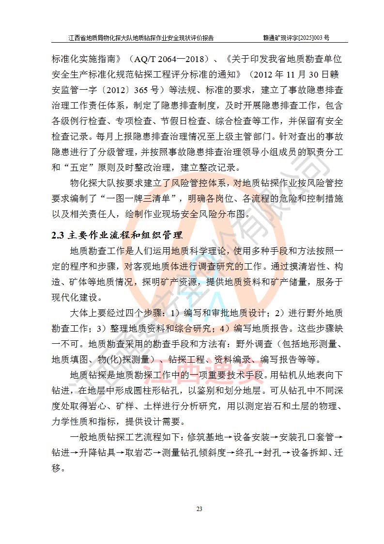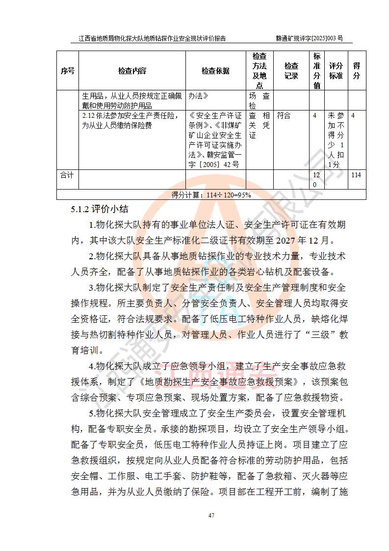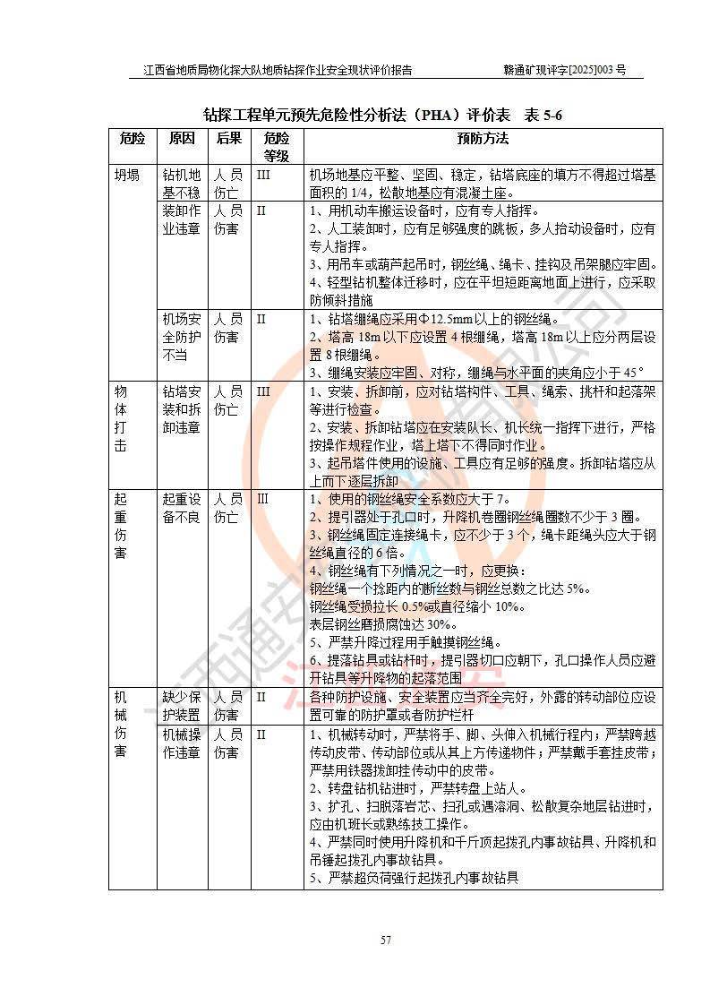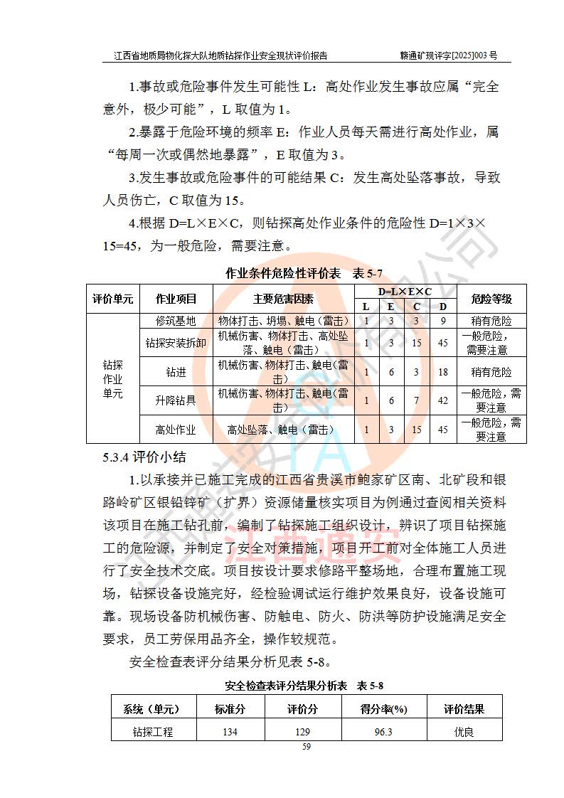 报告名称 | 江西省地质局物化探大队地质钻探作业安全现状评价报告 | |||||