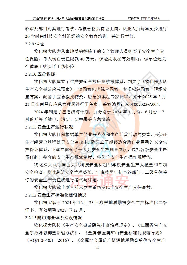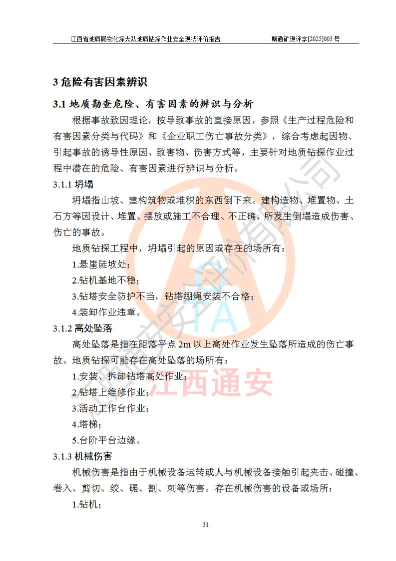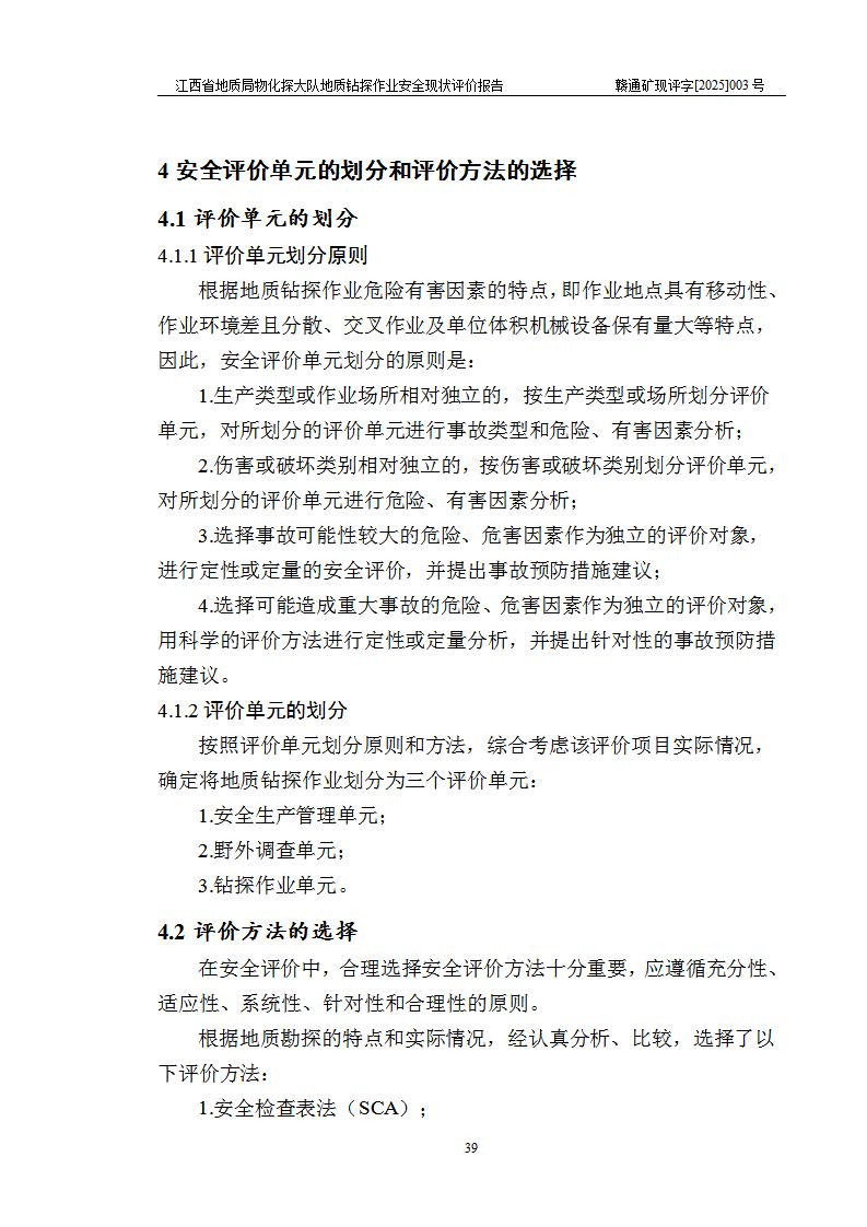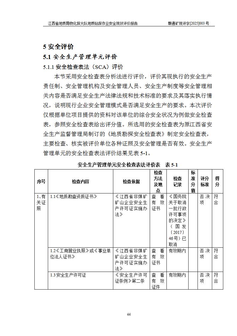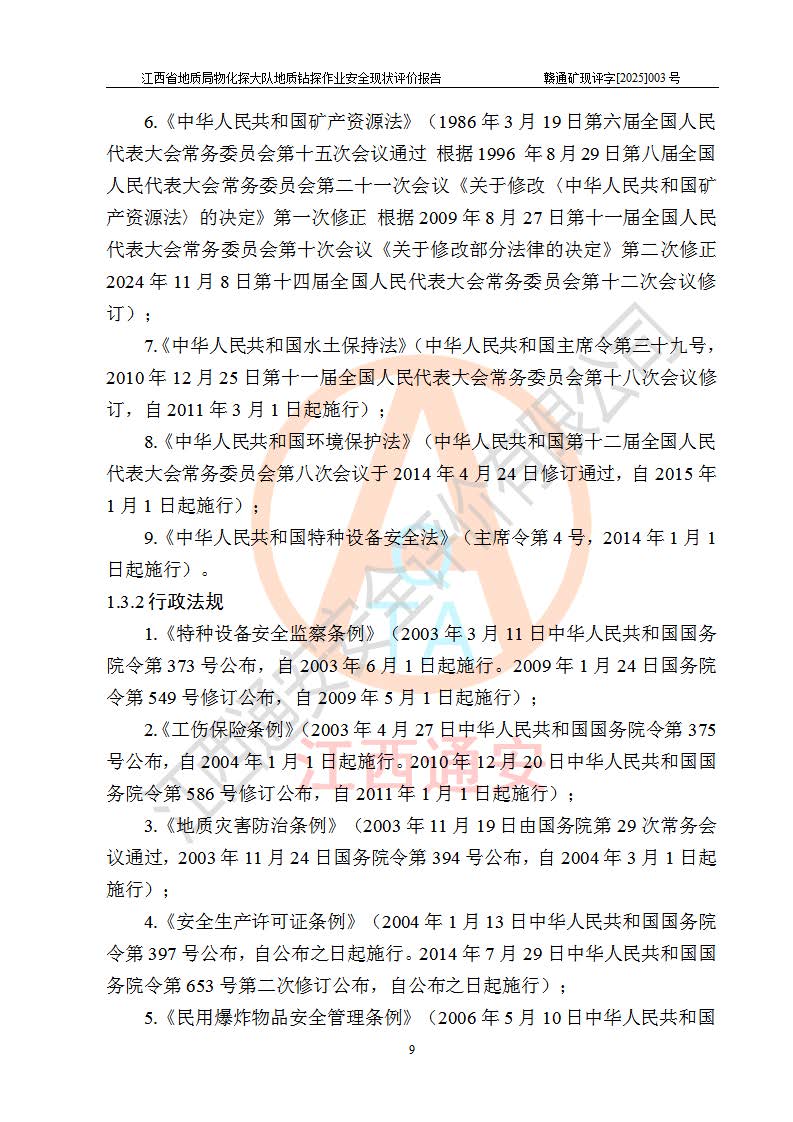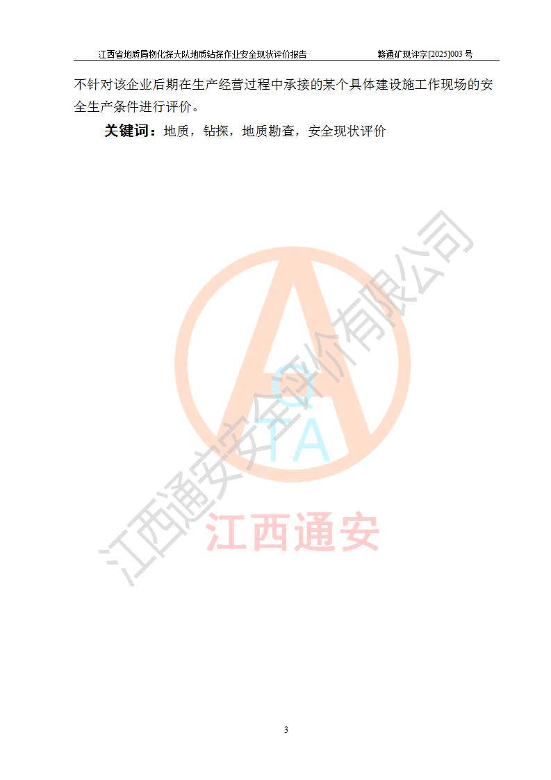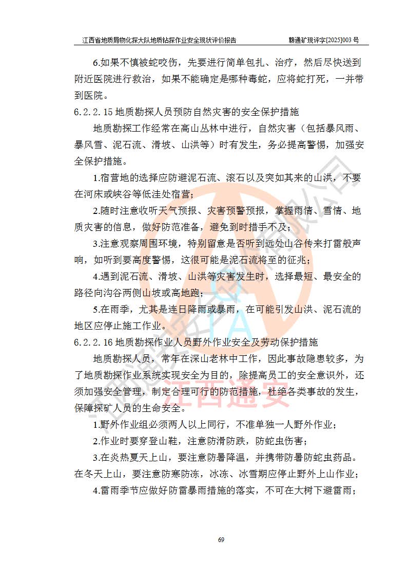 报告名称 | 江西省地质局物化探大队地质钻探作业安全现状评价报告 | |||||