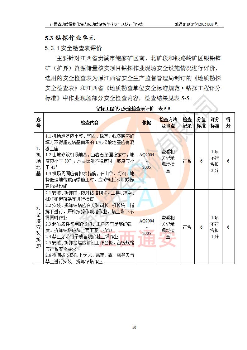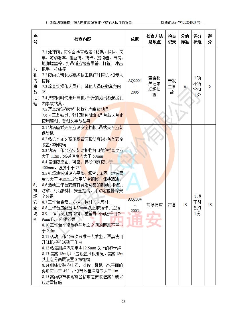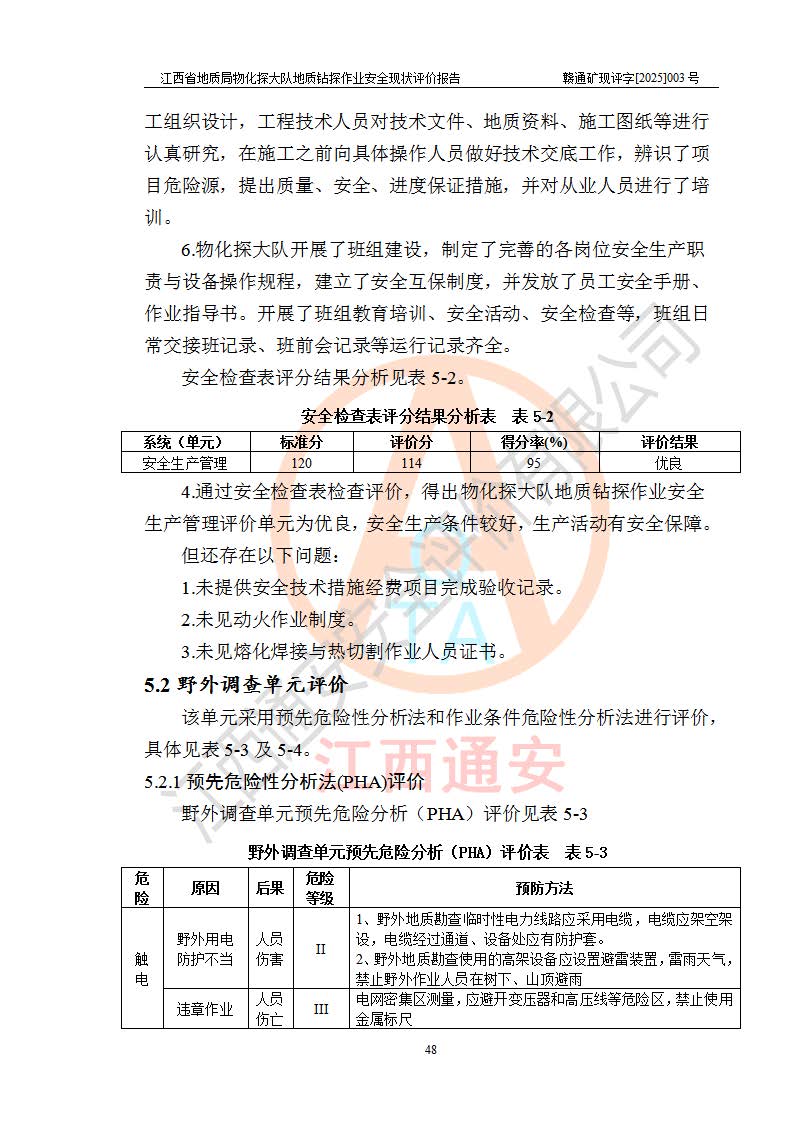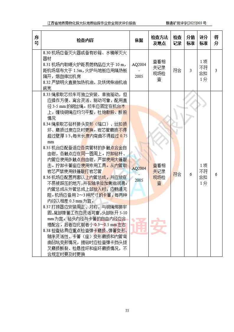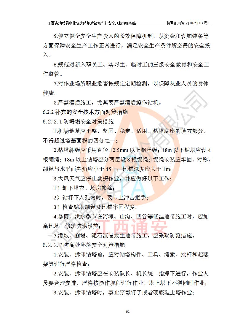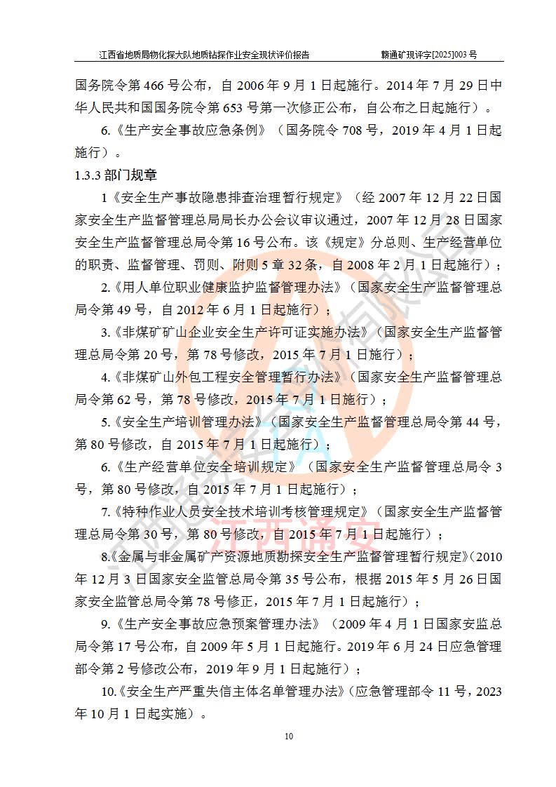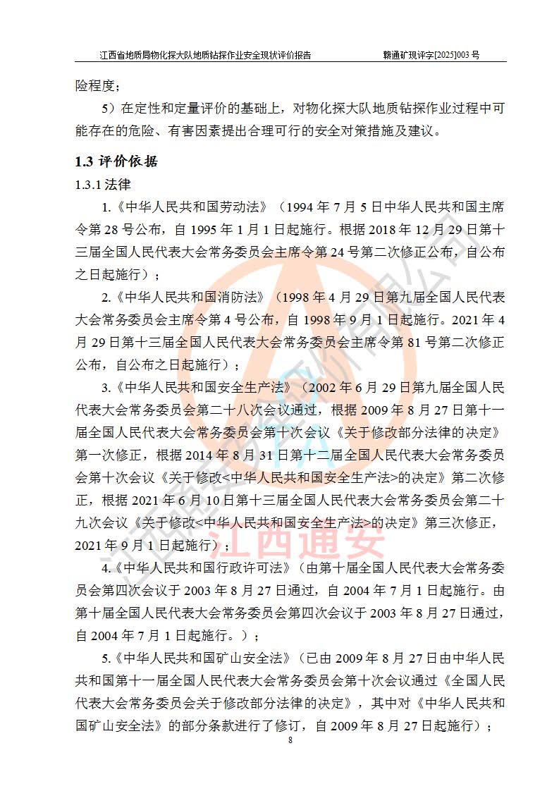 报告名称 | 江西省地质局物化探大队地质钻探作业安全现状评价报告 | |||||