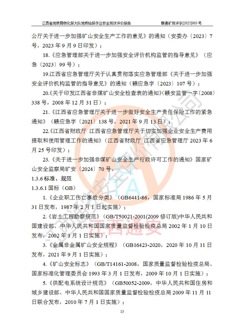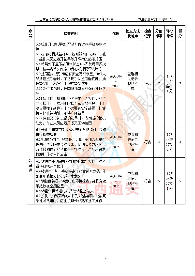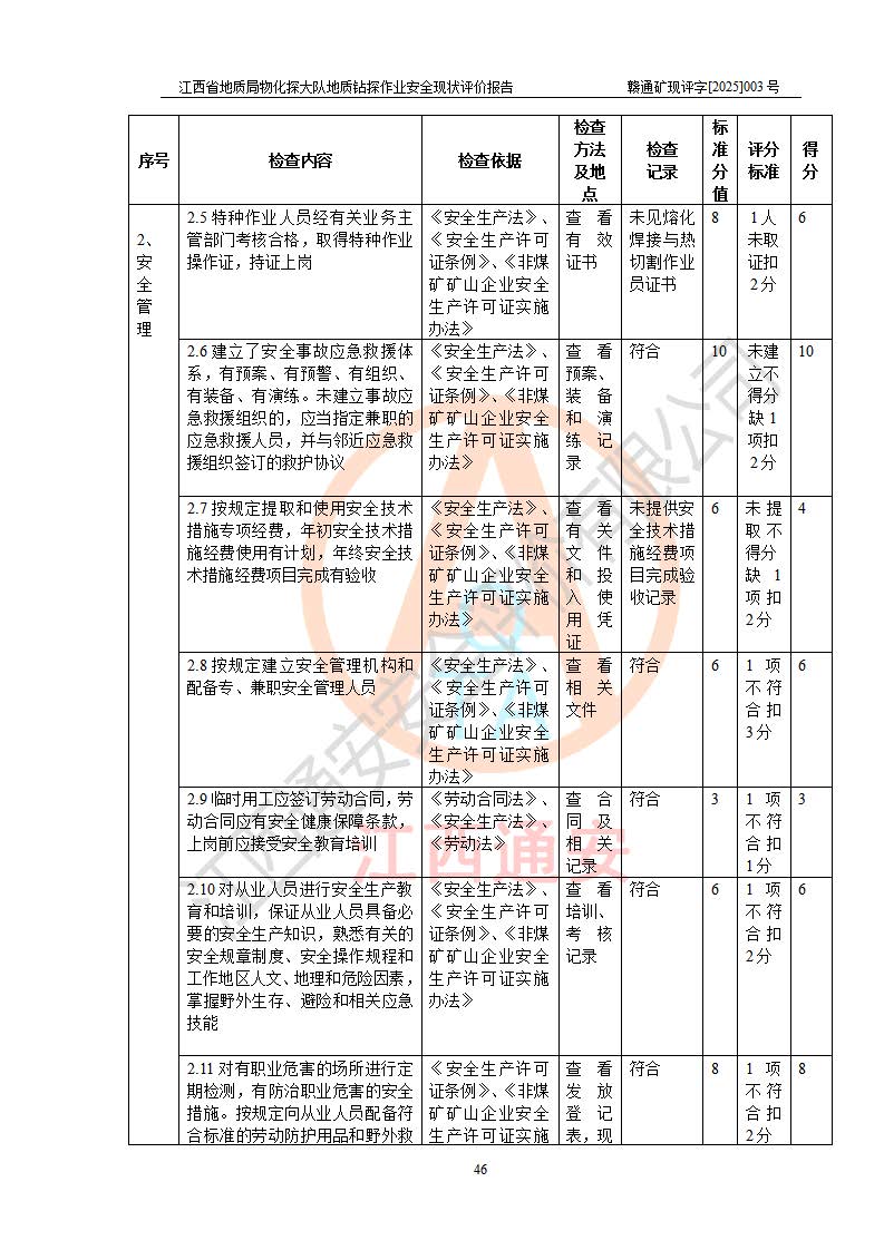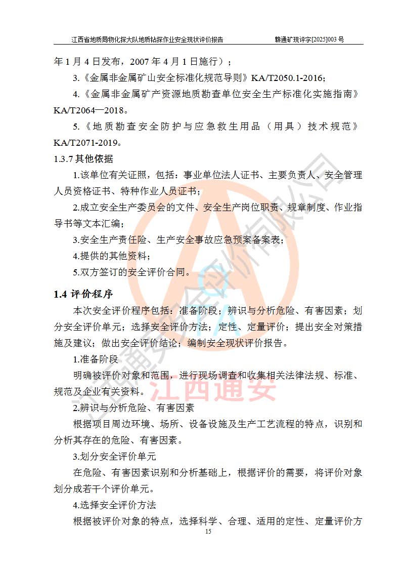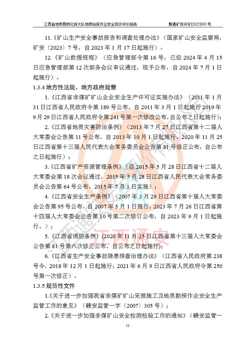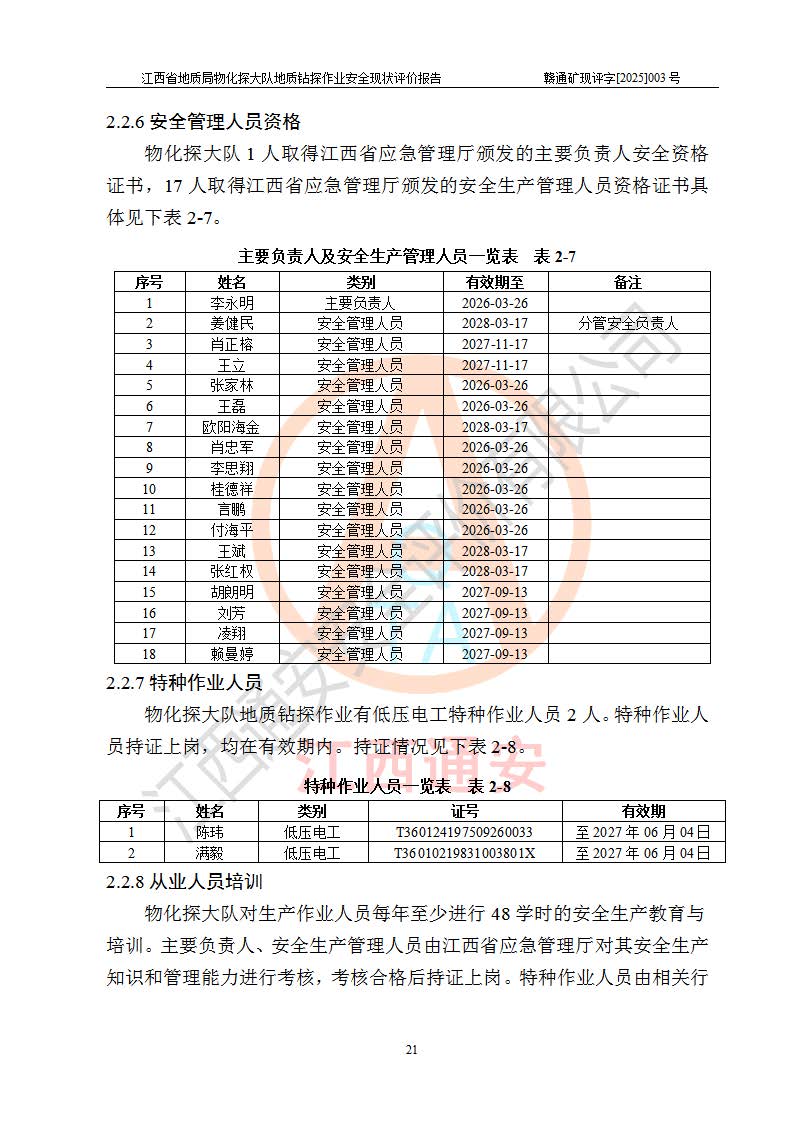 报告名称 | 江西省地质局物化探大队地质钻探作业安全现状评价报告 | |||||