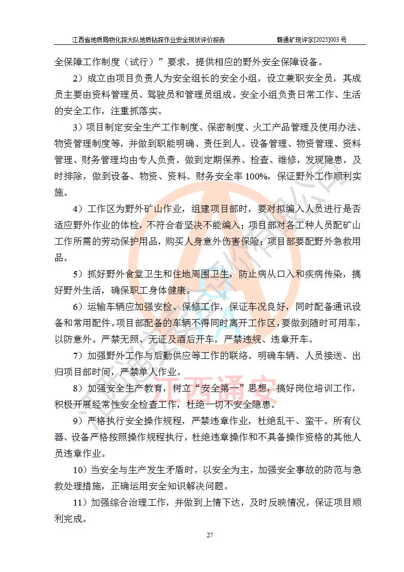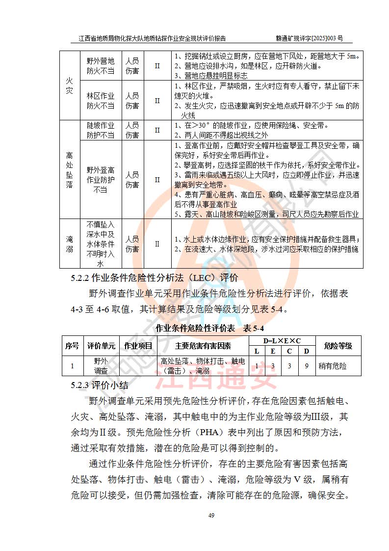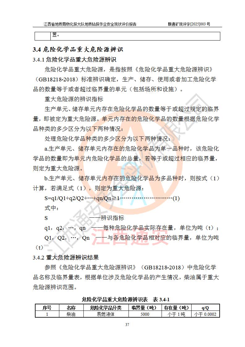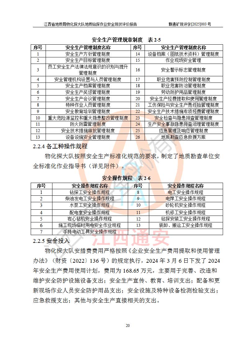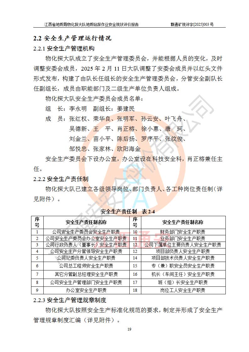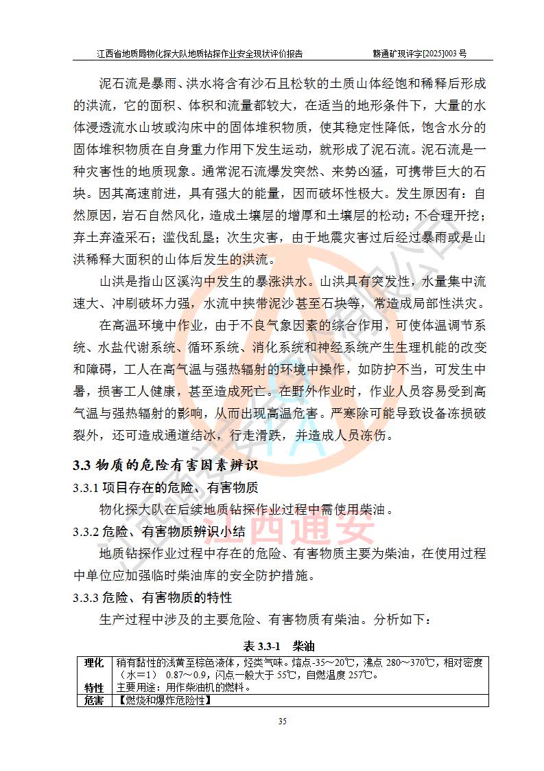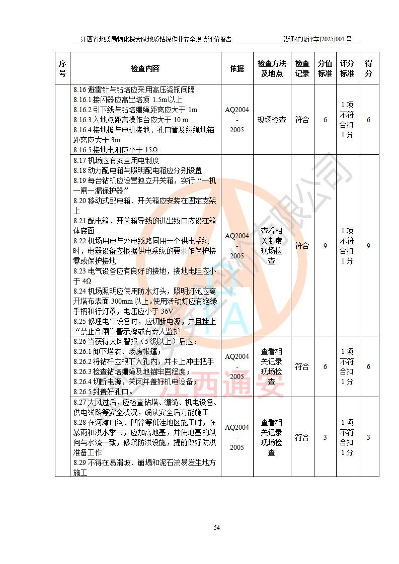 报告名称 | 江西省地质局物化探大队地质钻探作业安全现状评价报告 | |||||