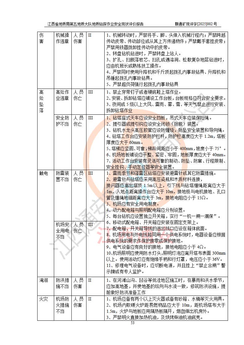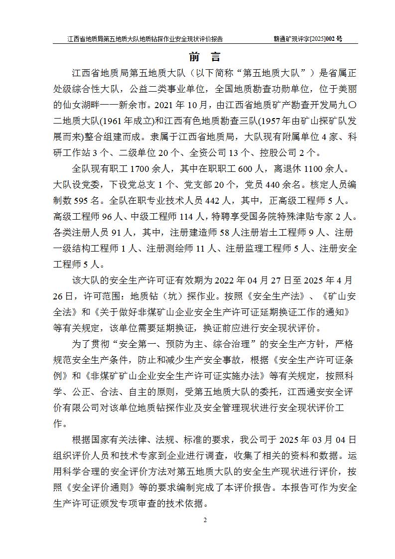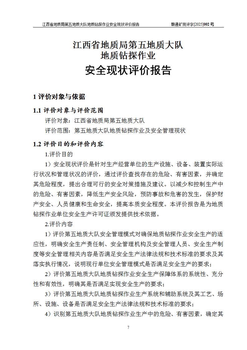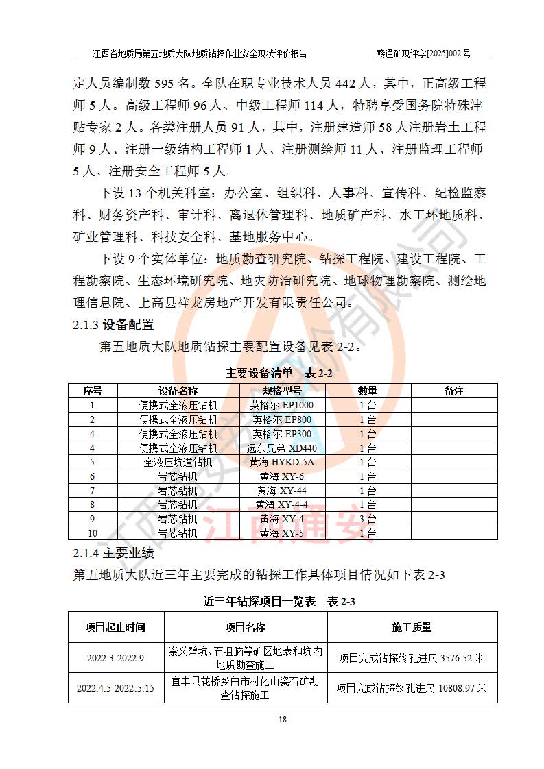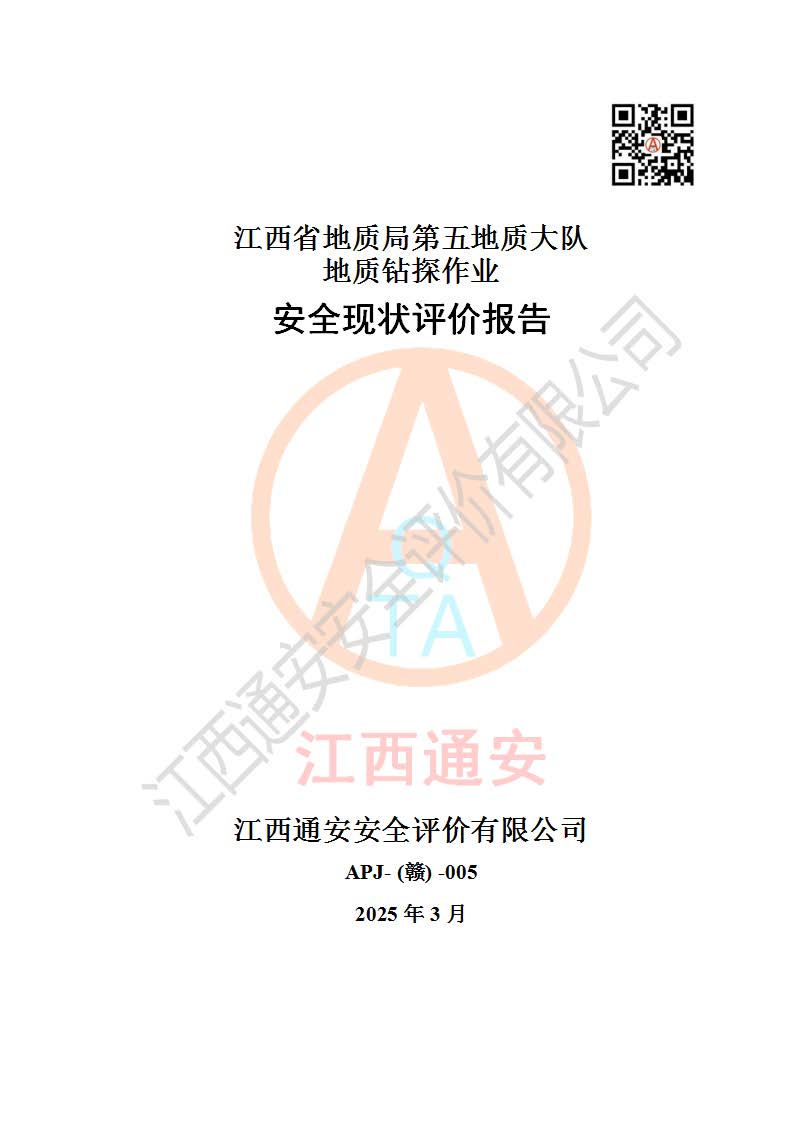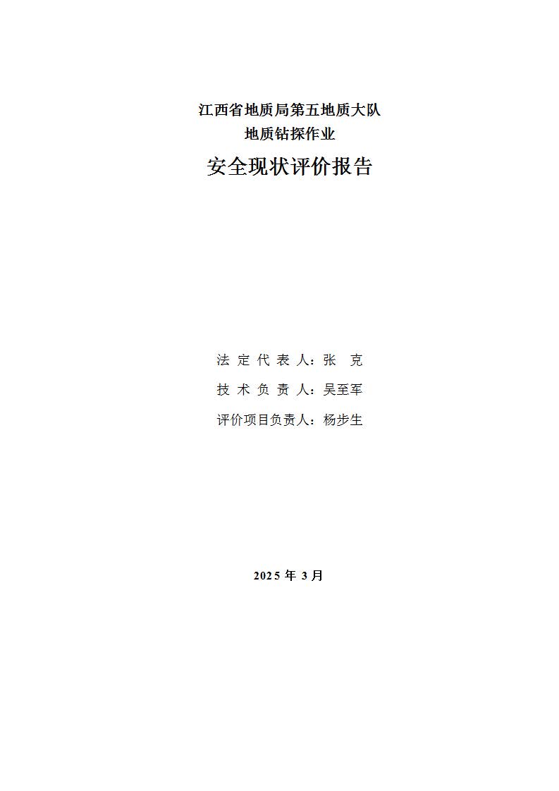 报告名称 | 江西省地质局第五地质大队地质钻探作业安全现状评价报告 | |||||