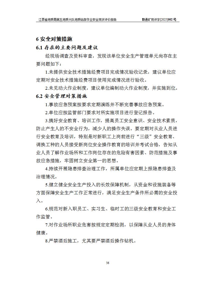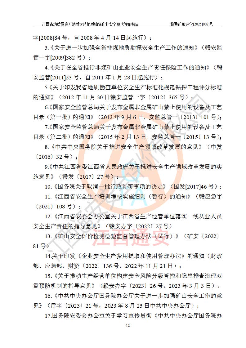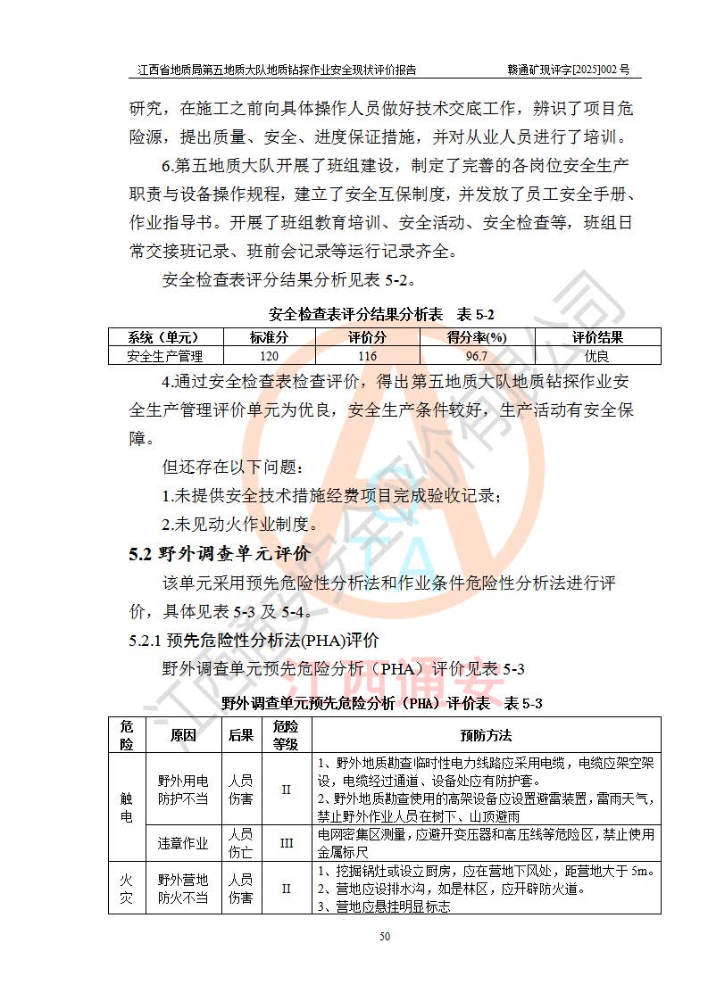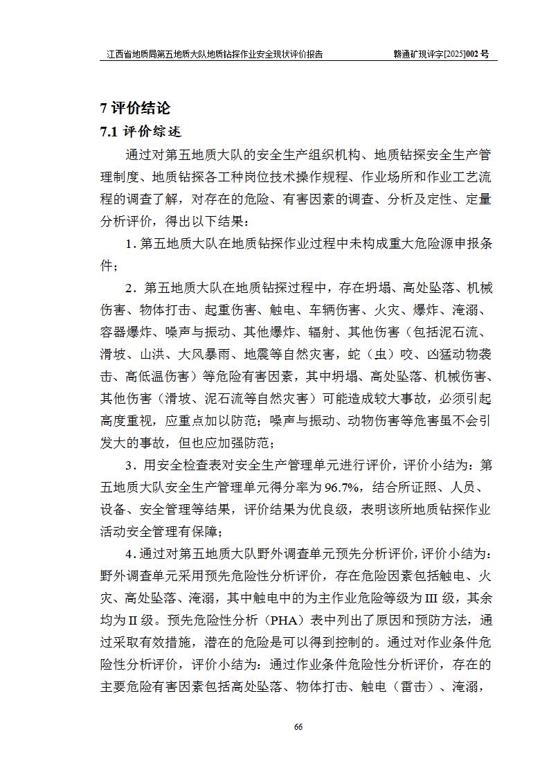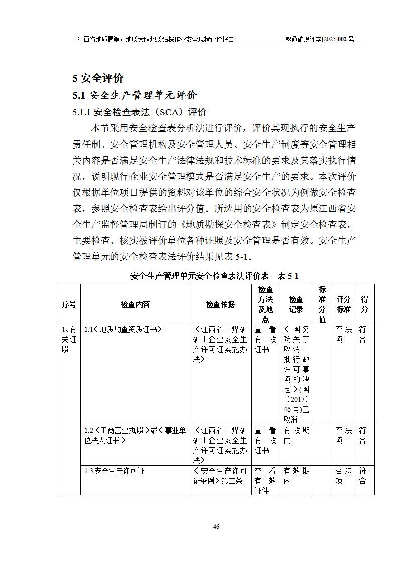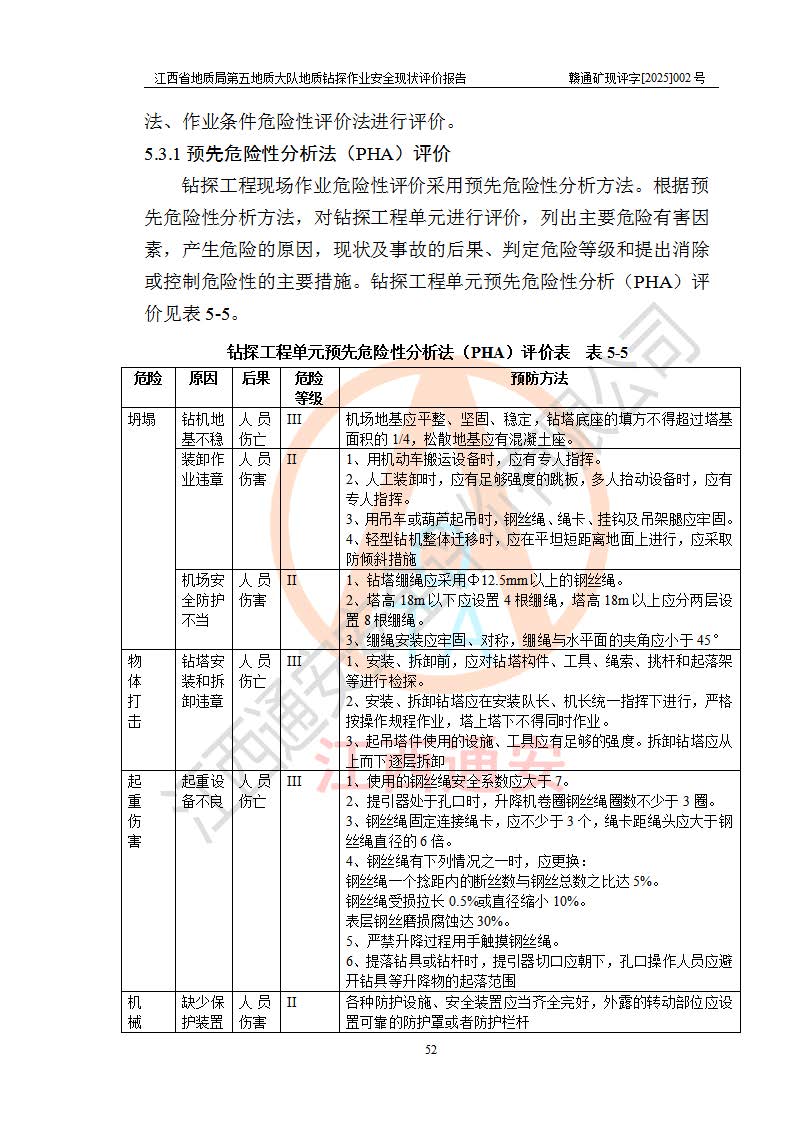 报告名称 | 江西省地质局第五地质大队地质钻探作业安全现状评价报告 | |||||