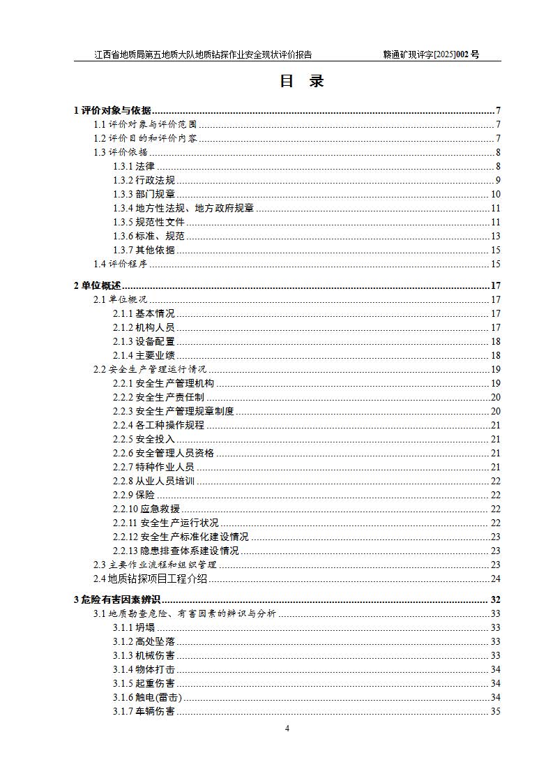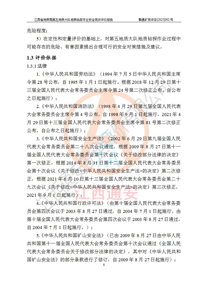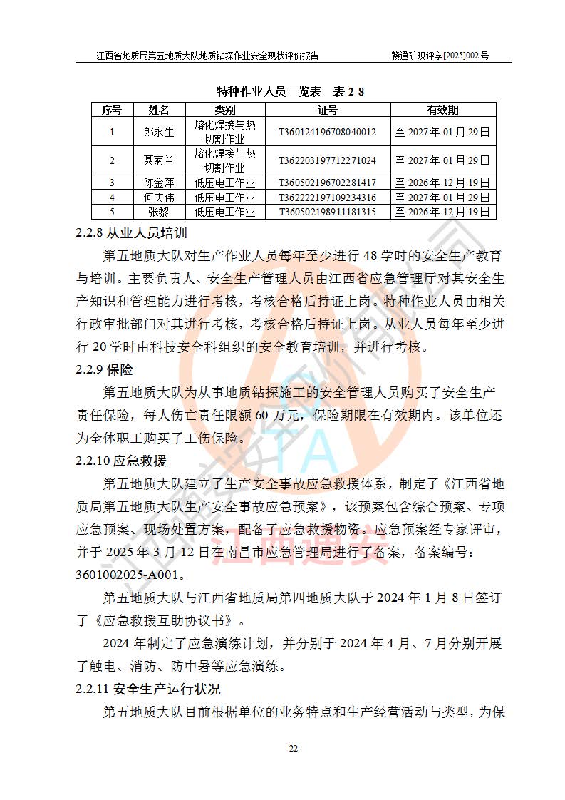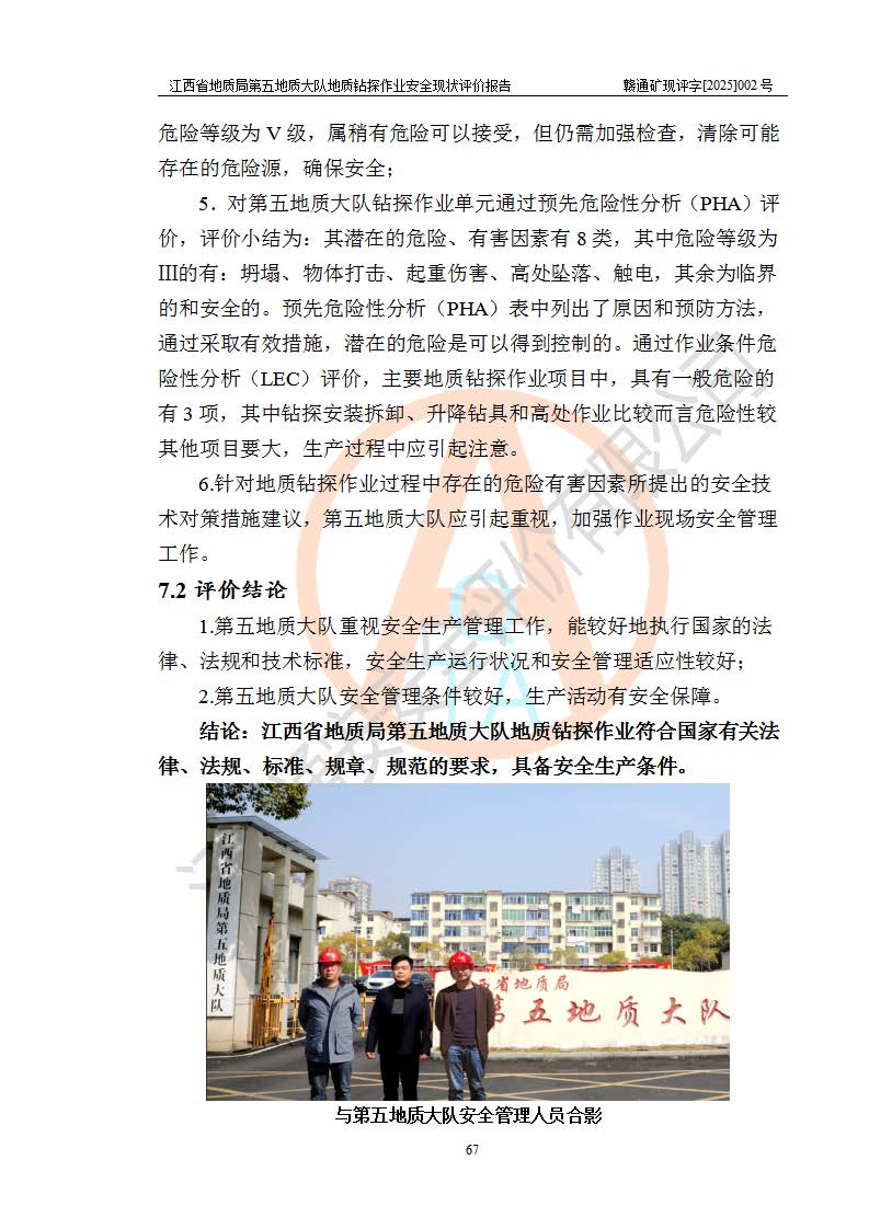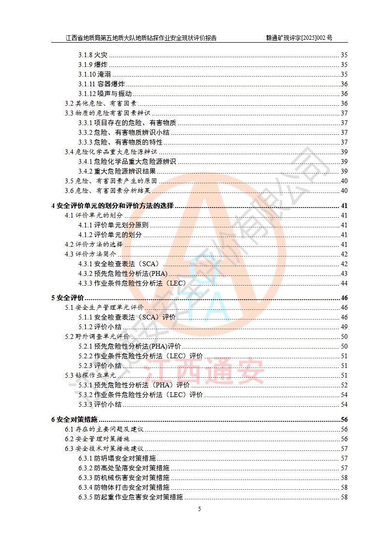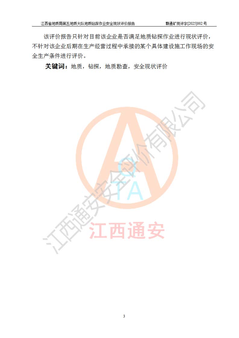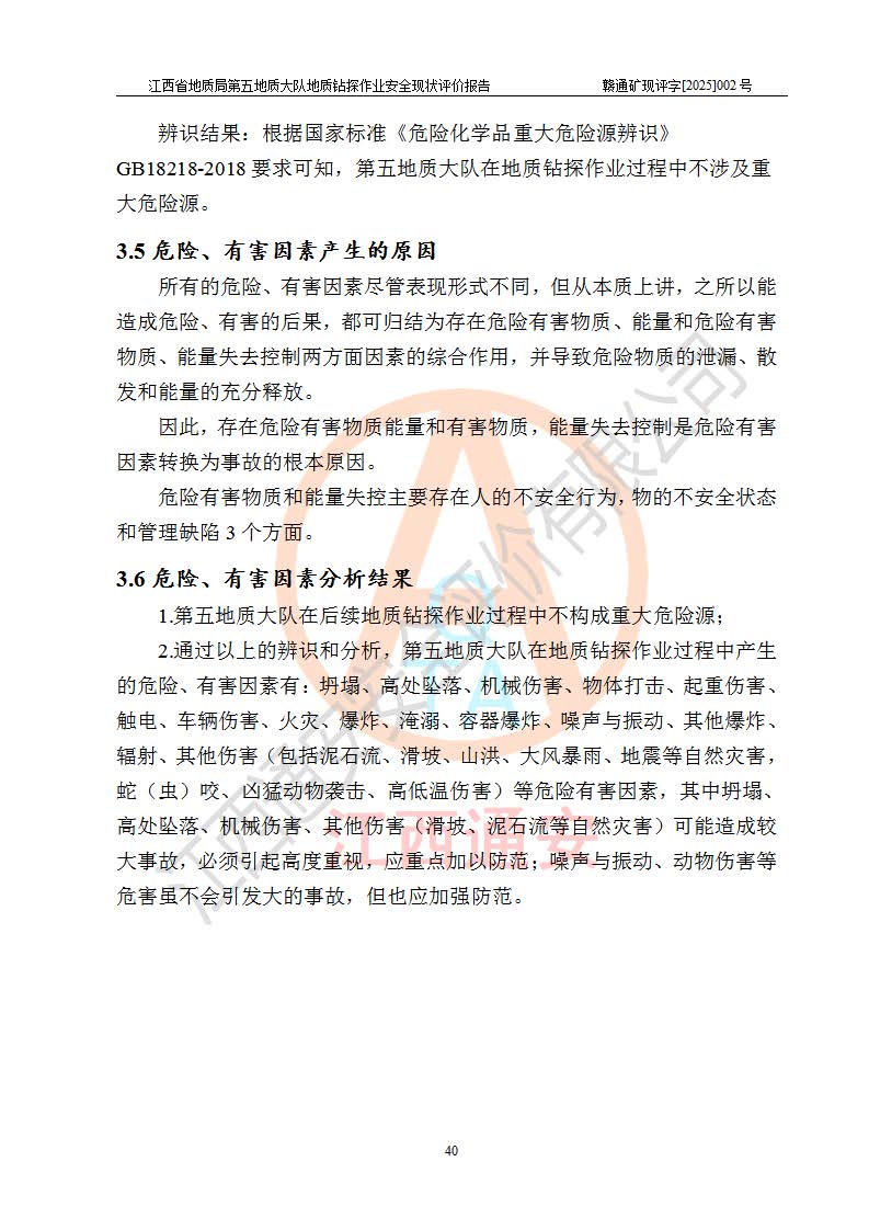 报告名称 | 江西省地质局第五地质大队地质钻探作业安全现状评价报告 | |||||