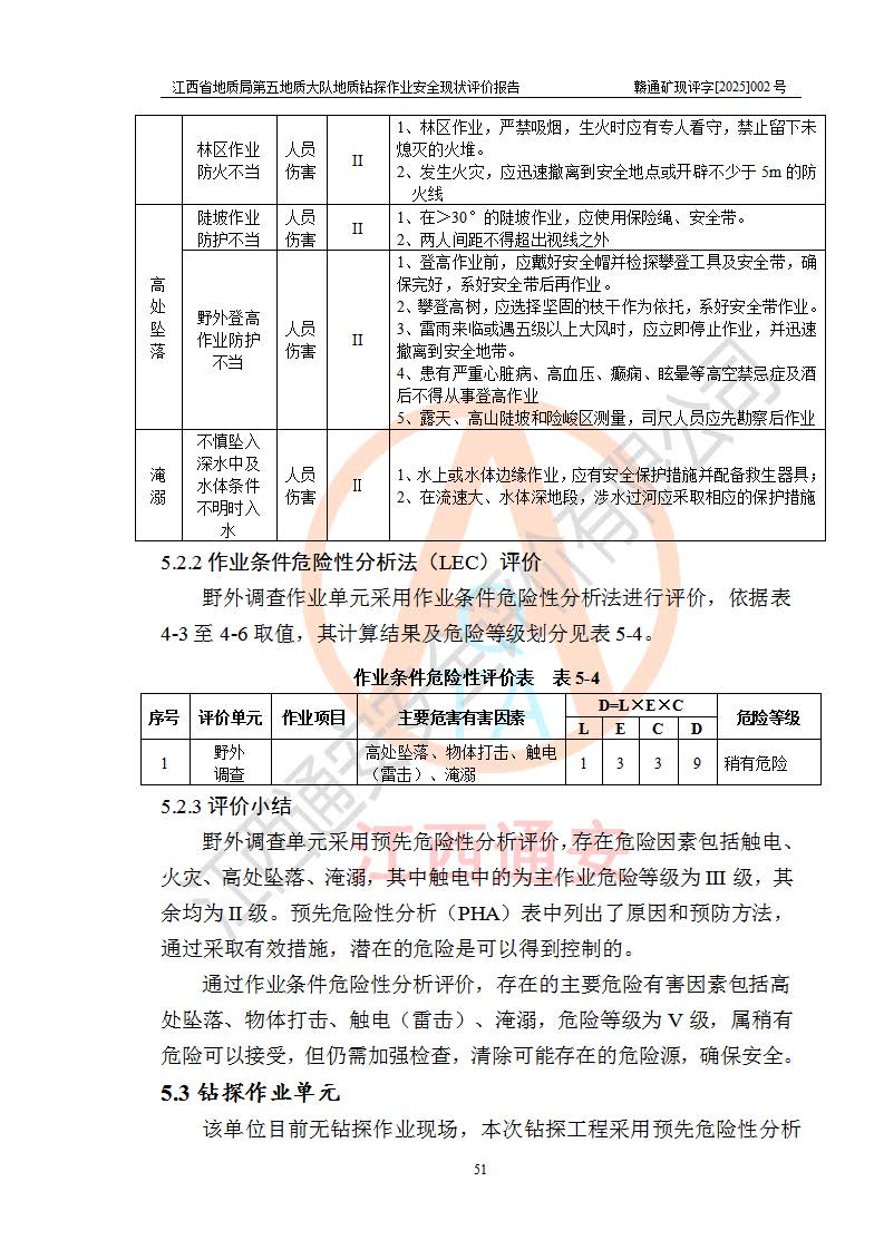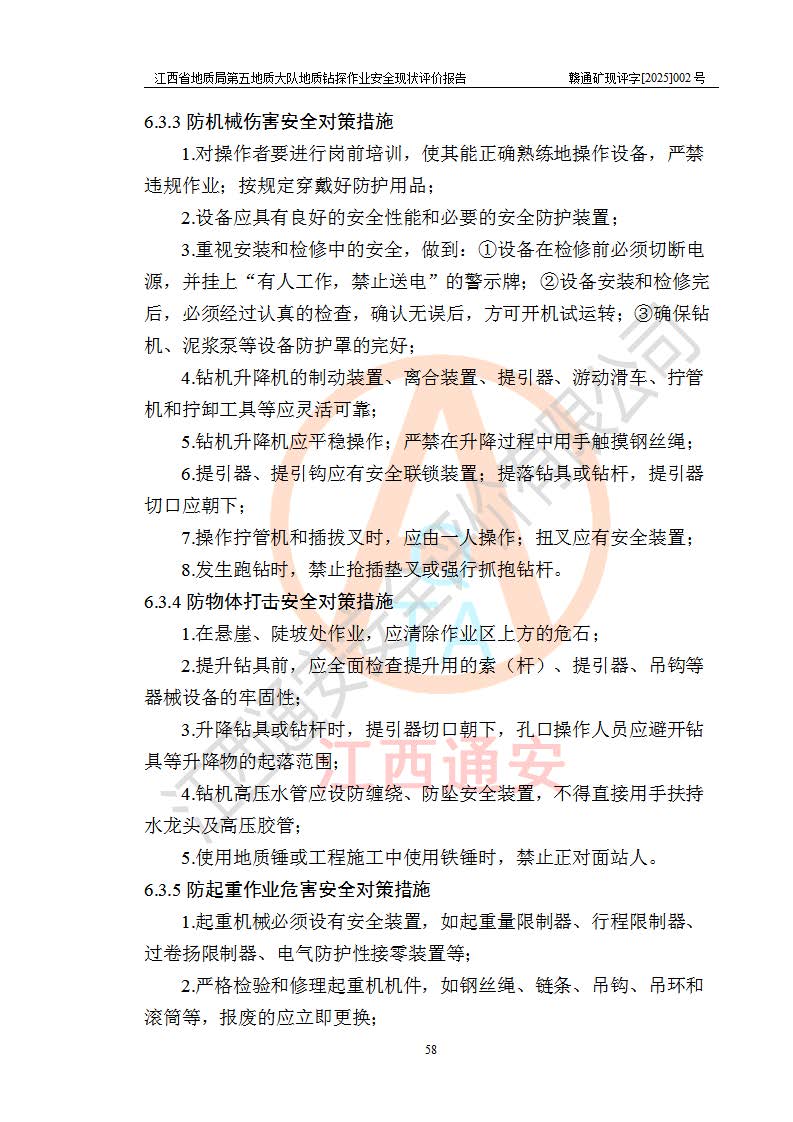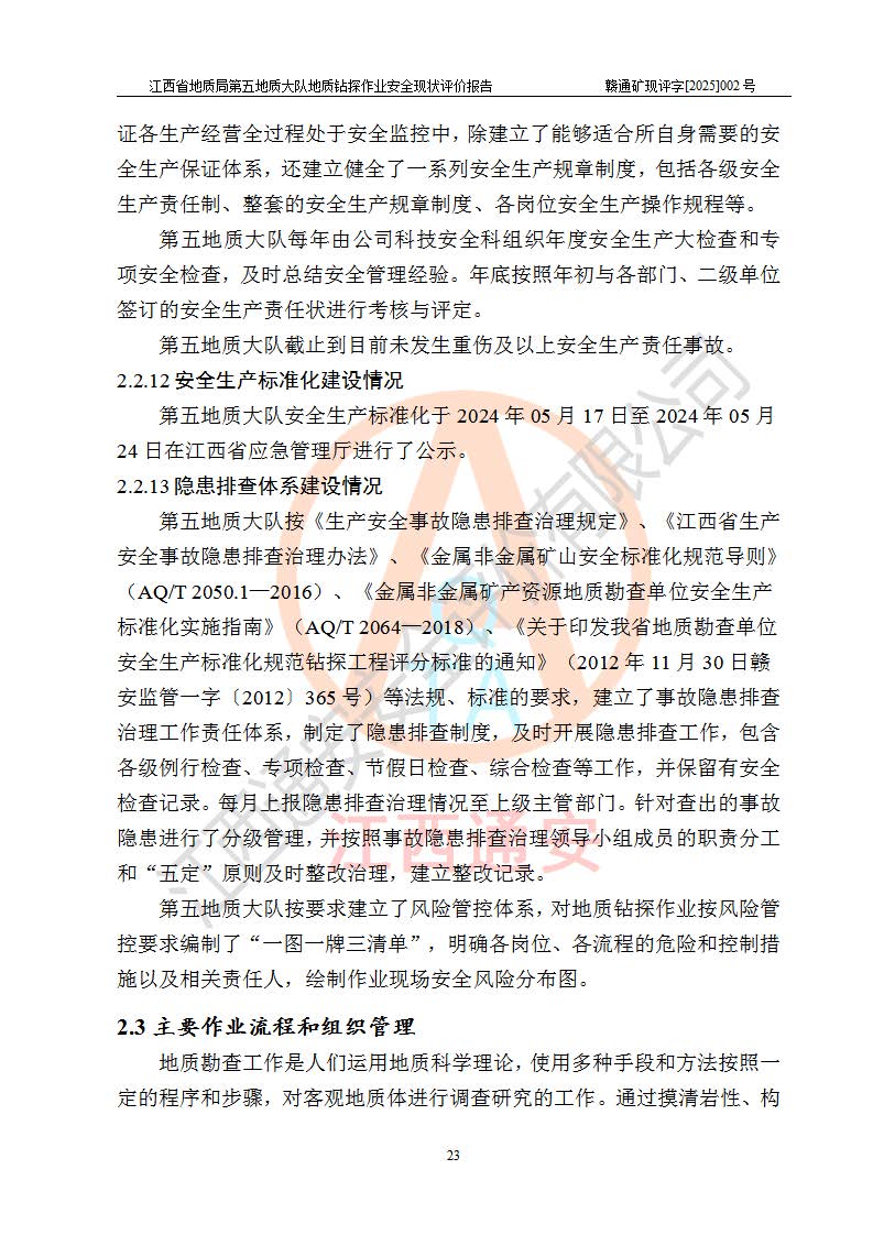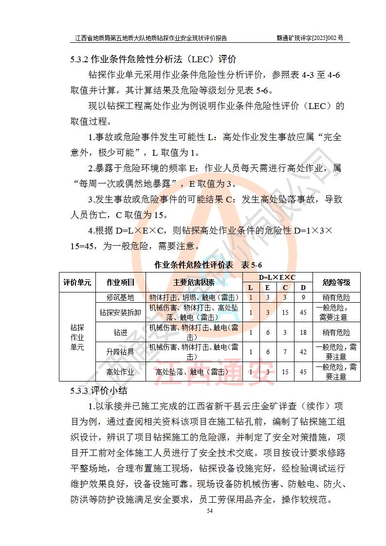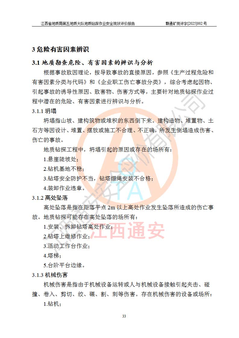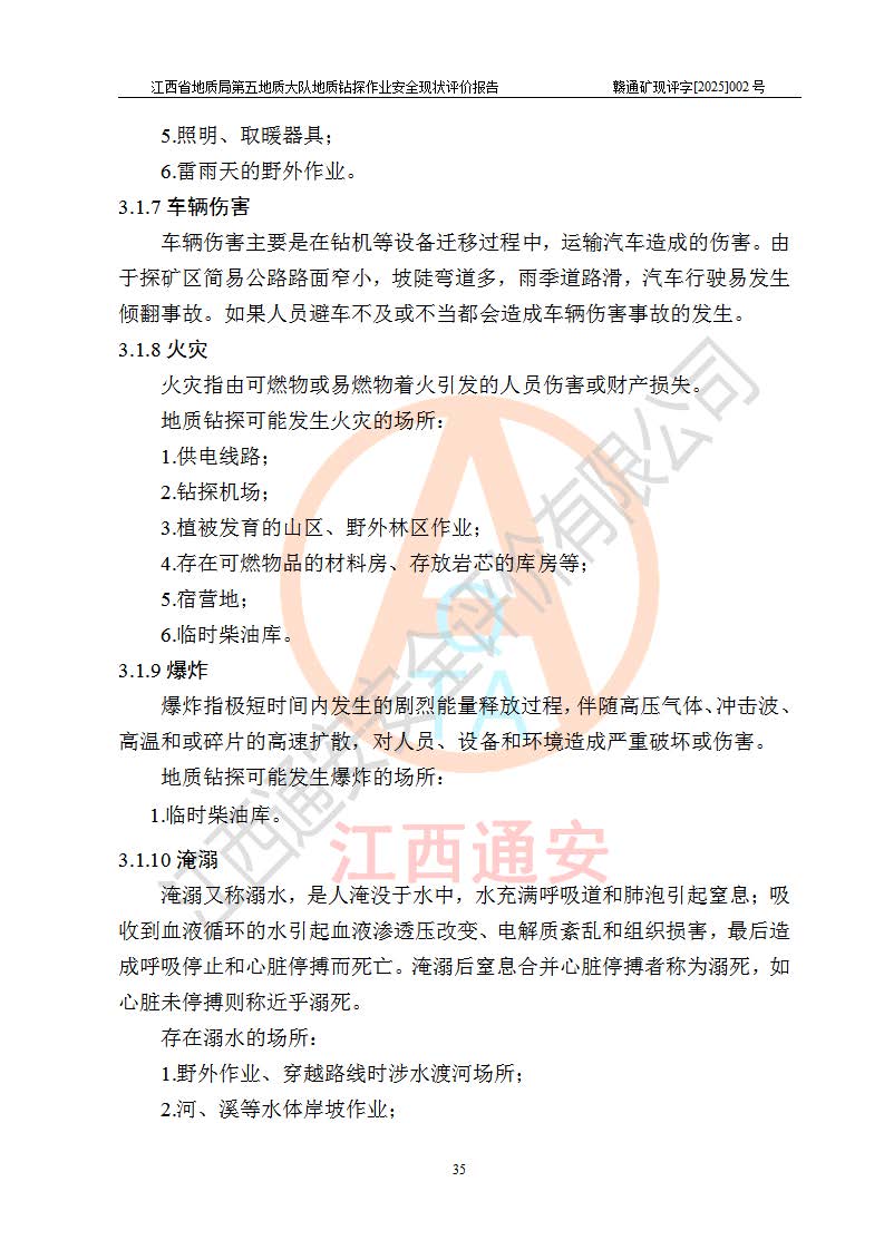 报告名称 | 江西省地质局第五地质大队地质钻探作业安全现状评价报告 | |||||