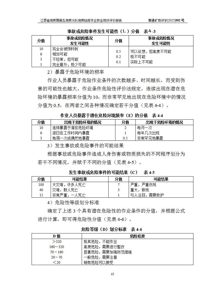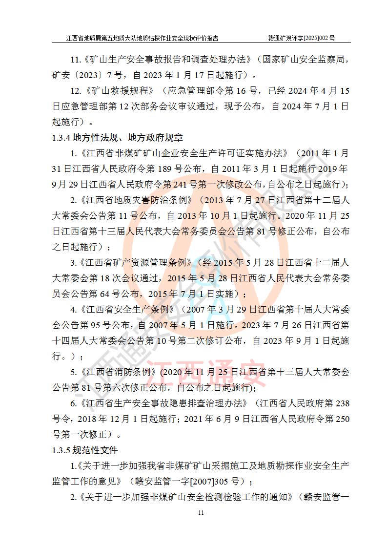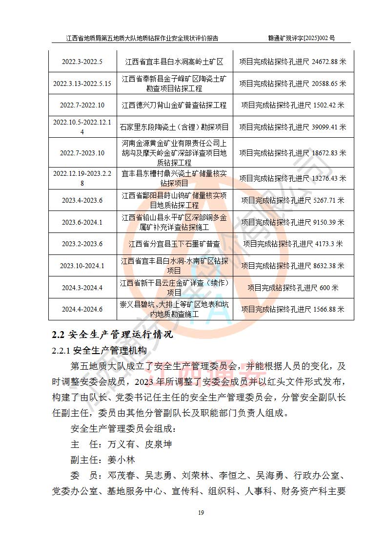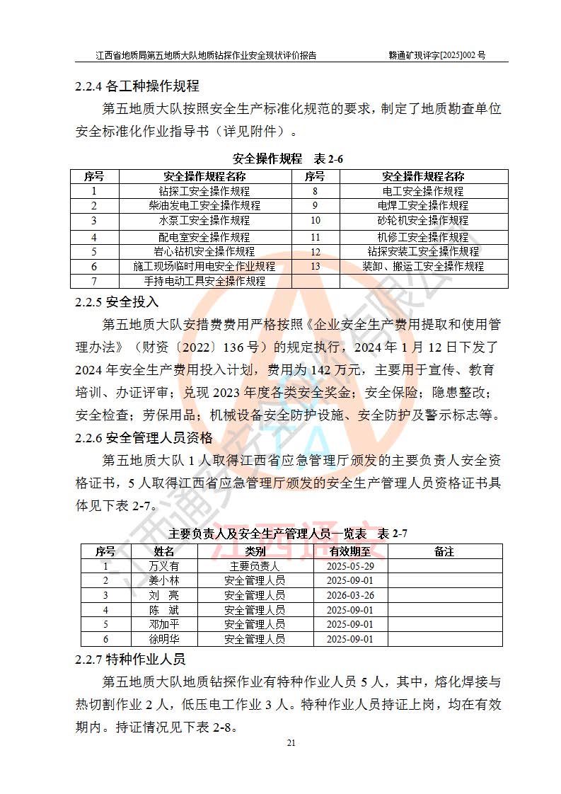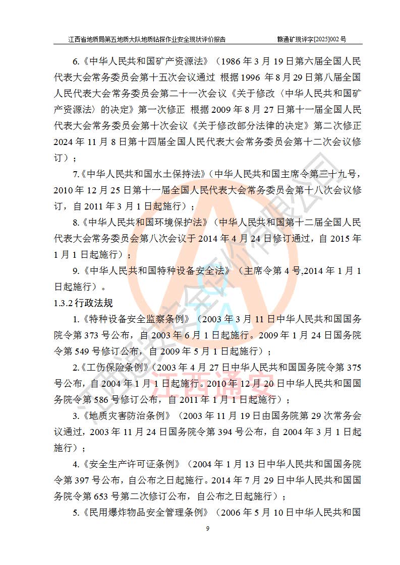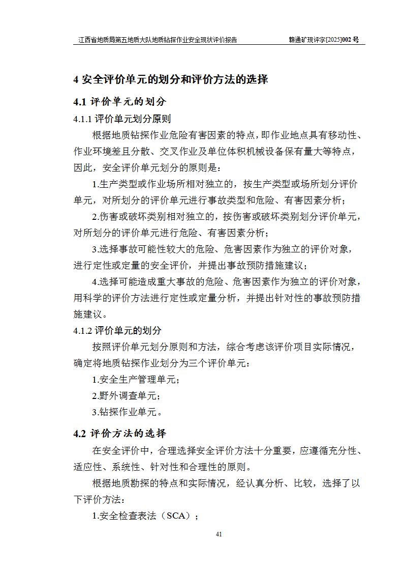 报告名称 | 江西省地质局第五地质大队地质钻探作业安全现状评价报告 | |||||