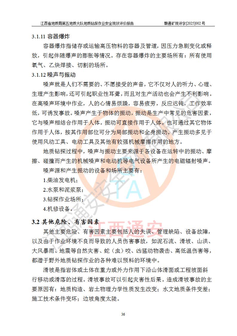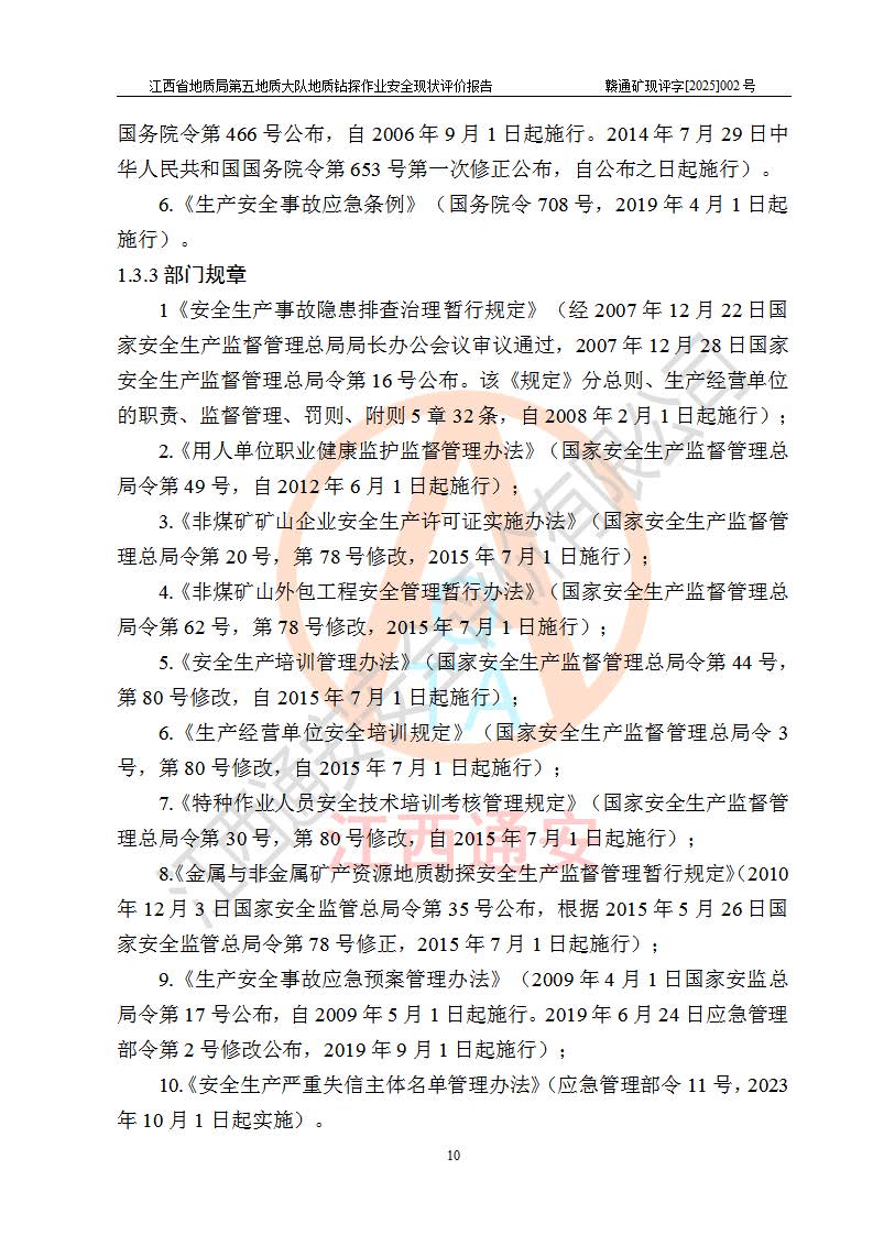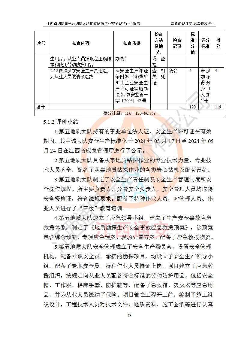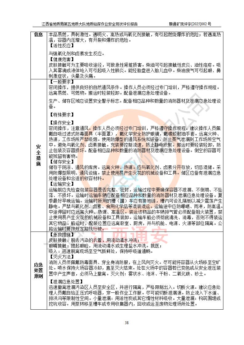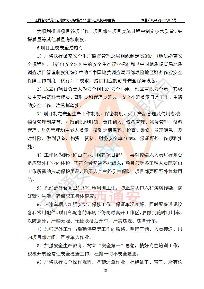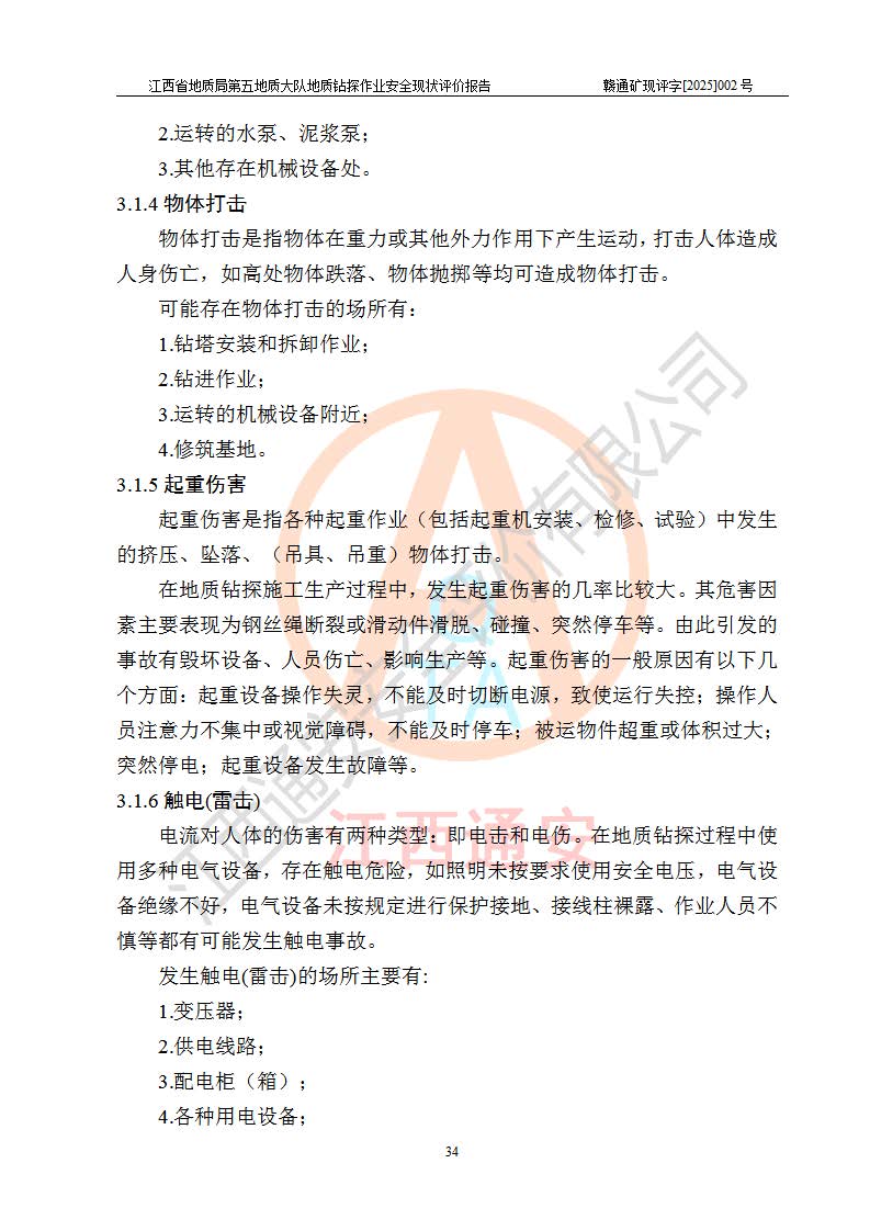报告名称 | 江西省地质局第五地质大队地质钻探作业安全现状评价报告 | |||||