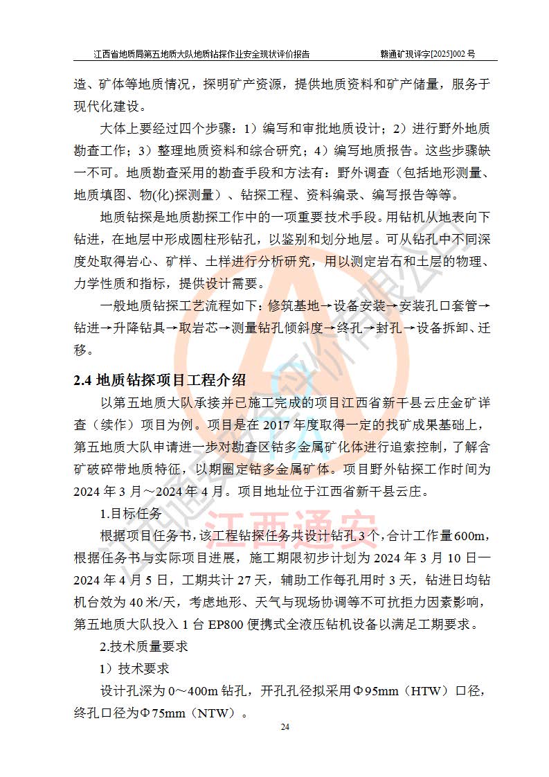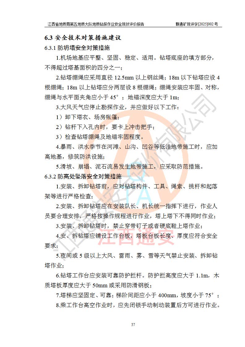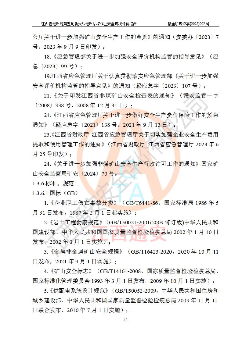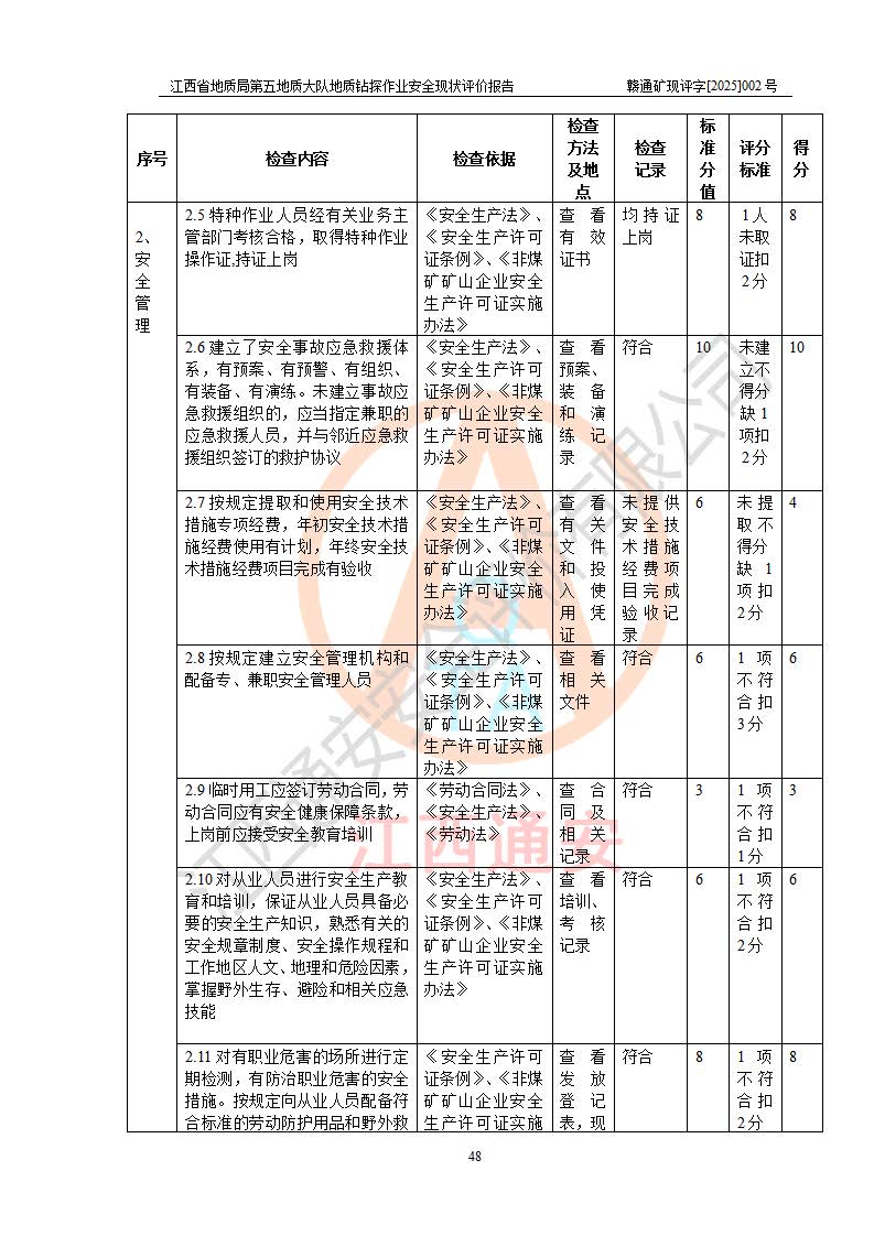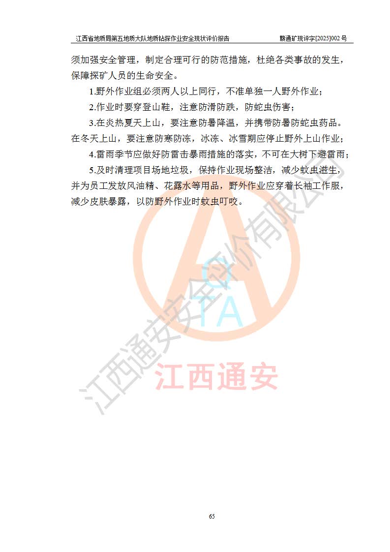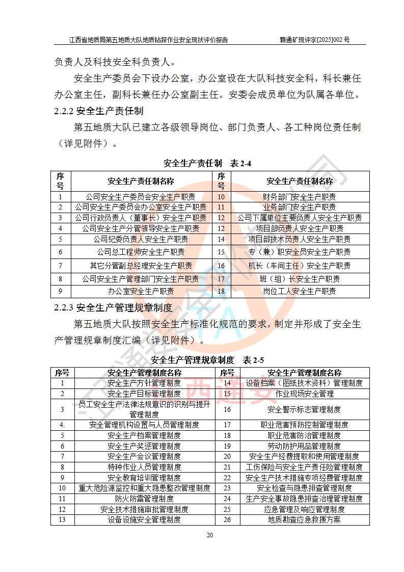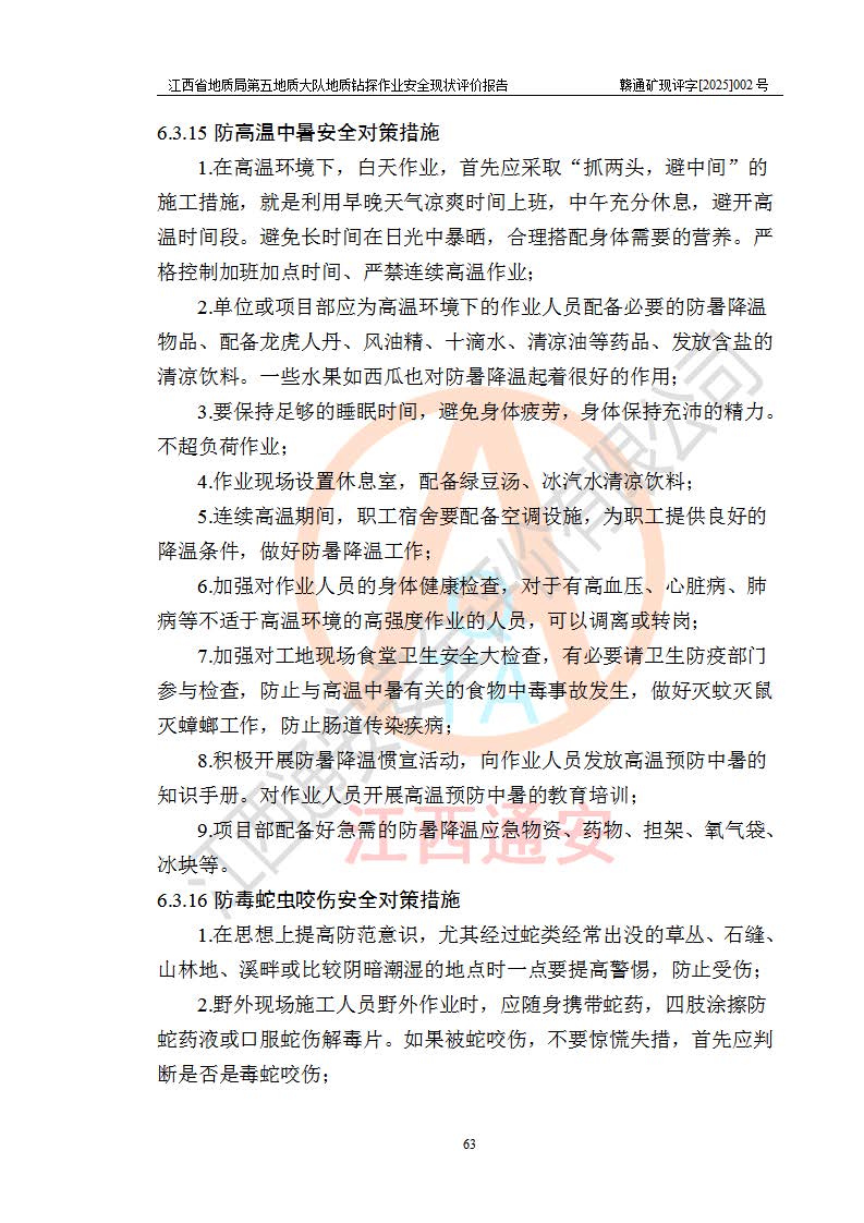 报告名称 | 江西省地质局第五地质大队地质钻探作业安全现状评价报告 | |||||