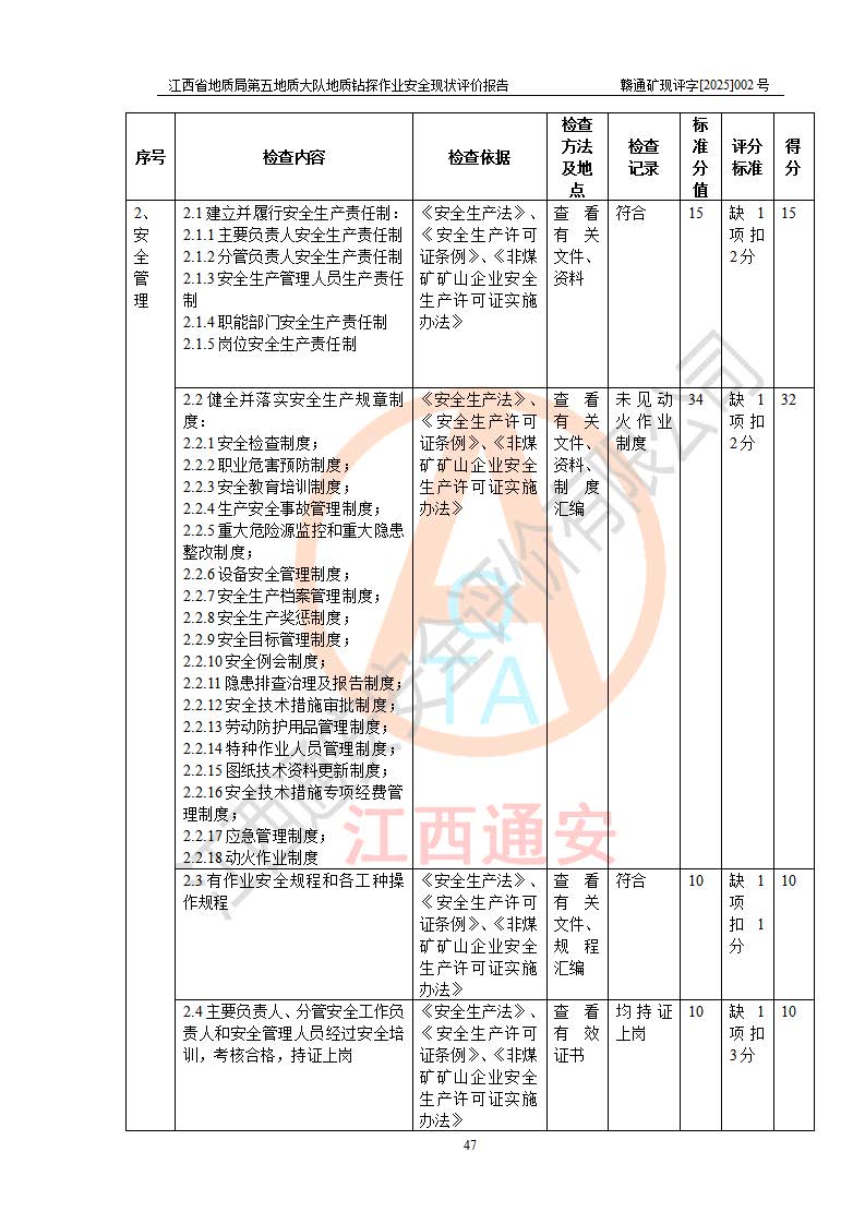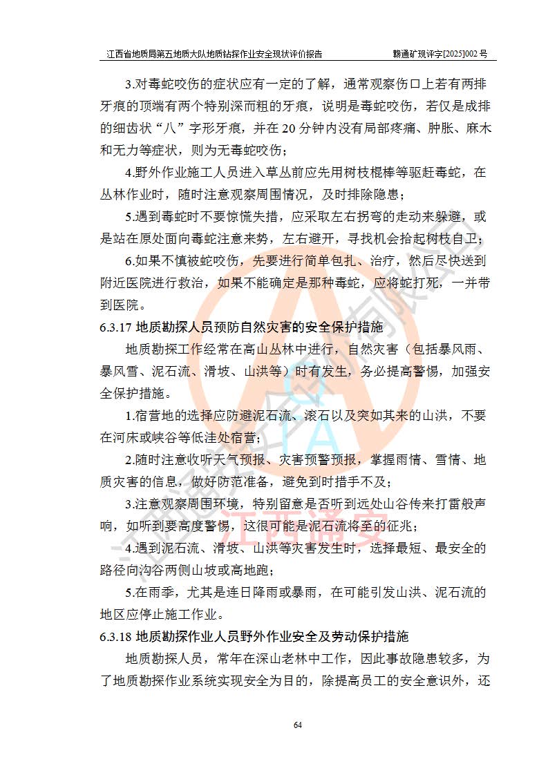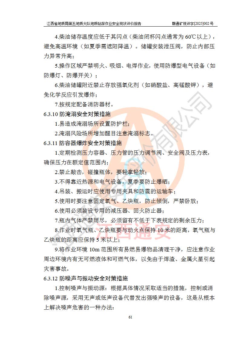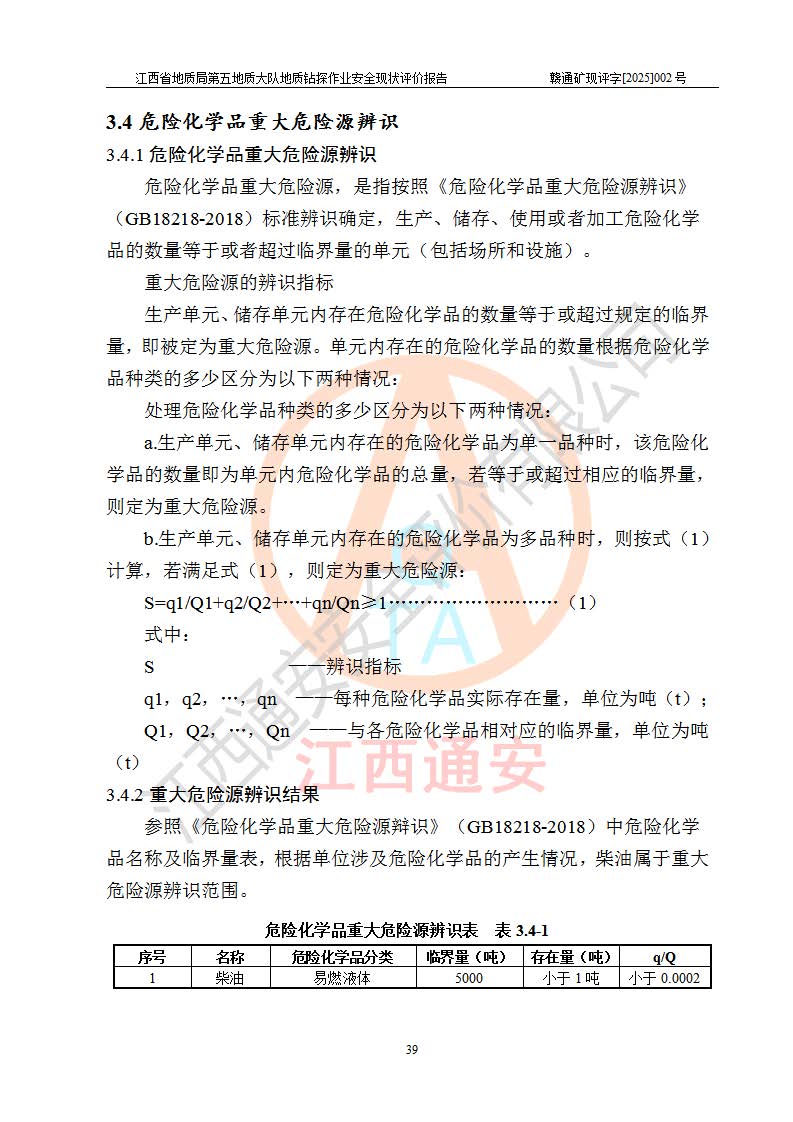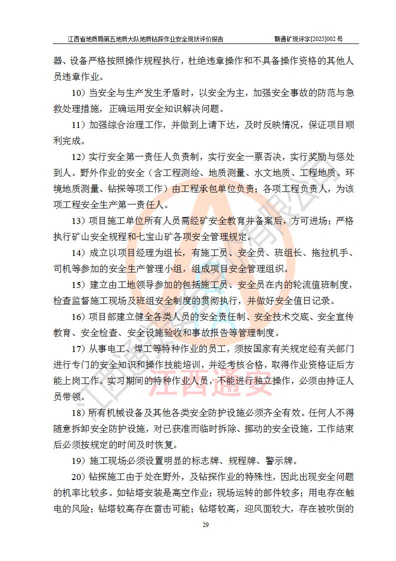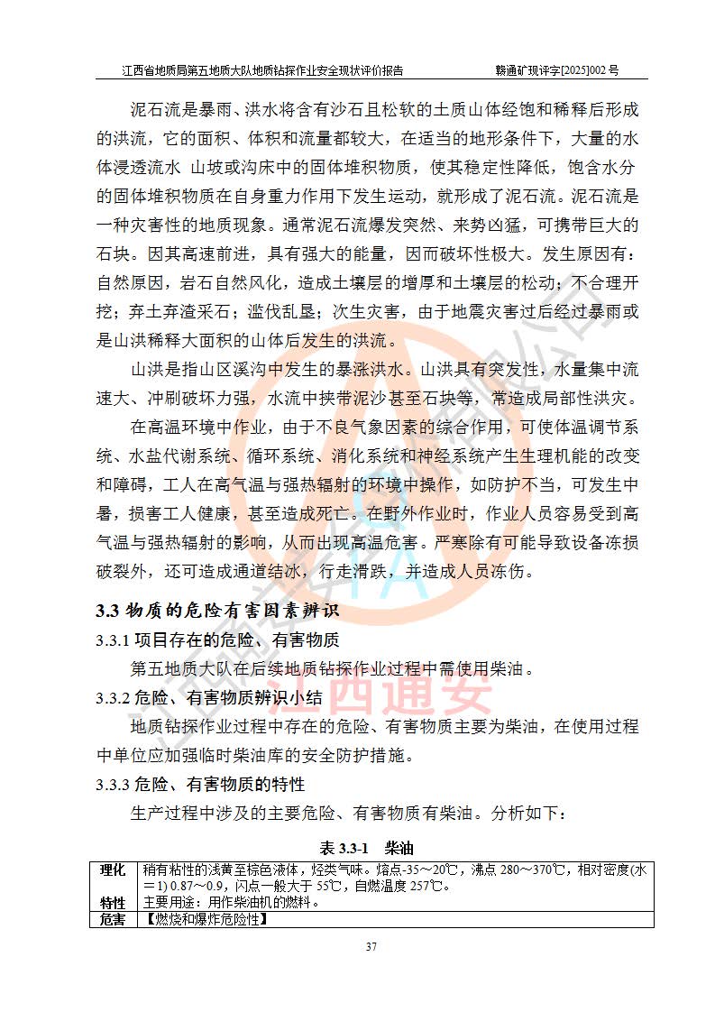 报告名称 | 江西省地质局第五地质大队地质钻探作业安全现状评价报告 | |||||