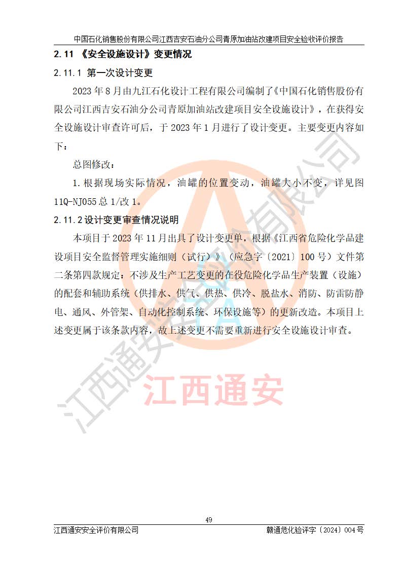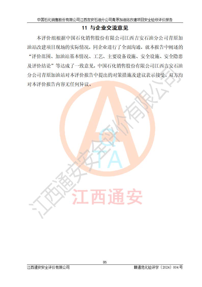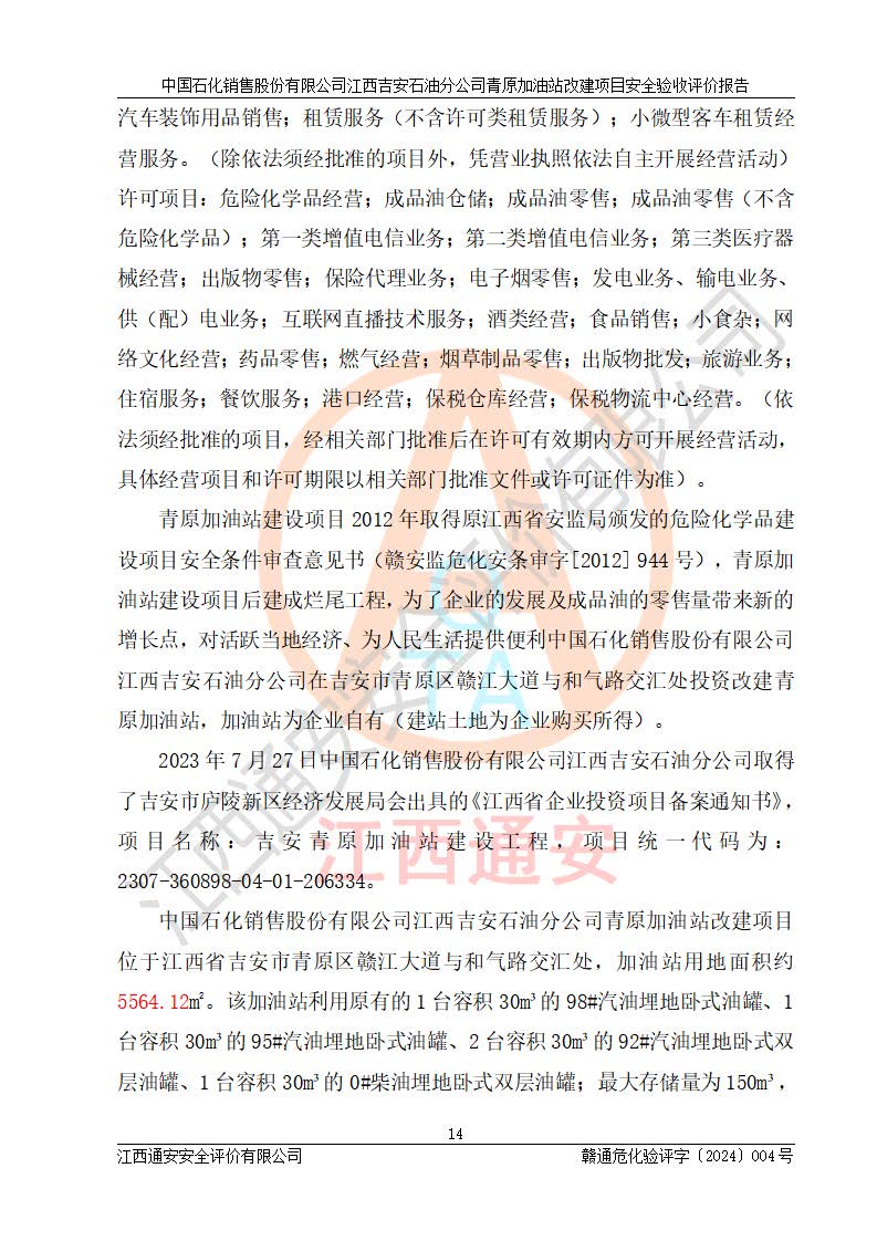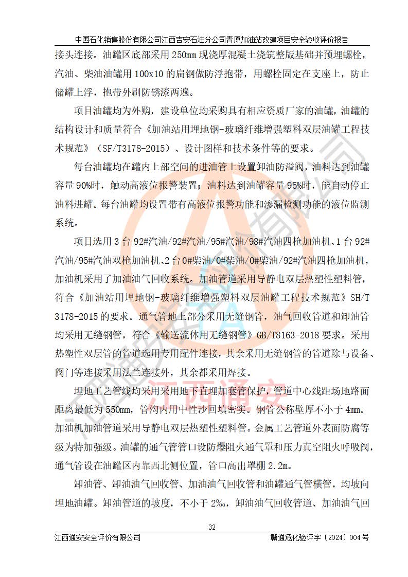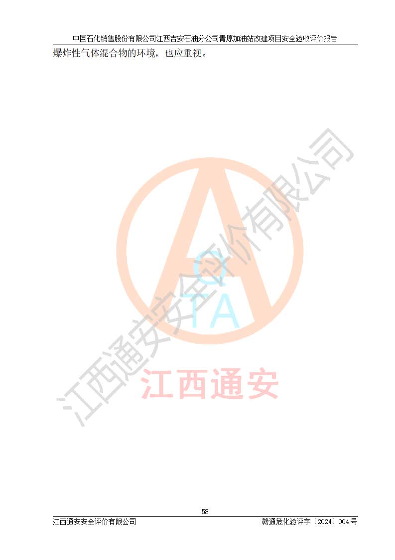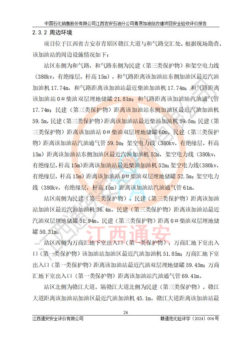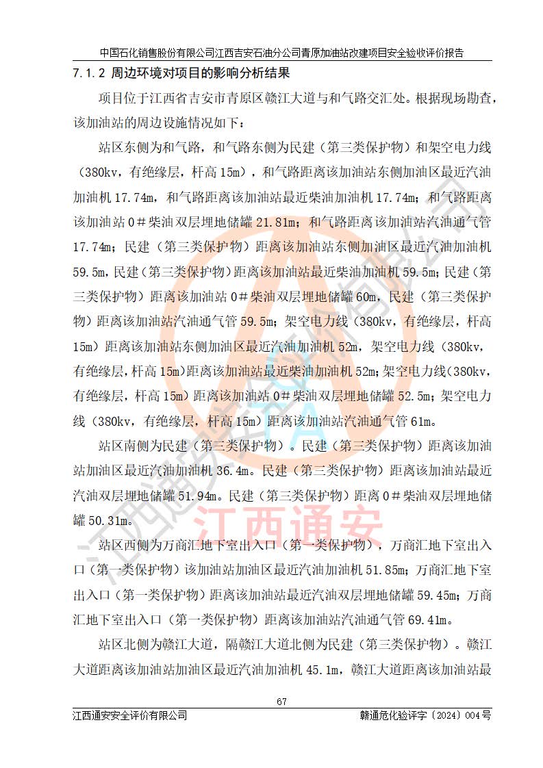 评价报告名称 | 中国石化销售股份有限公司江西吉安石油分公司青原加油站改建项目安全验收状评价报告 | |||