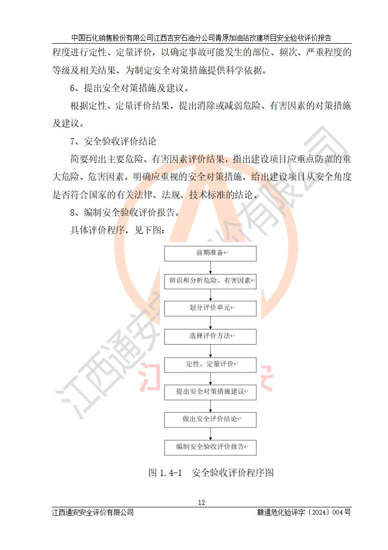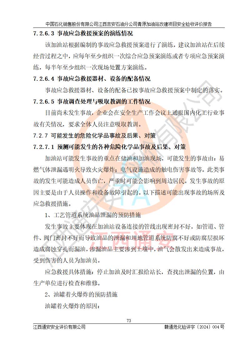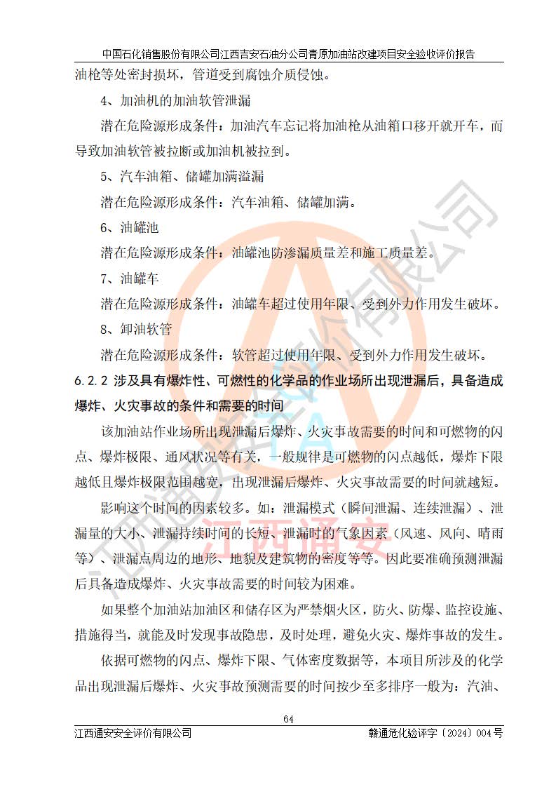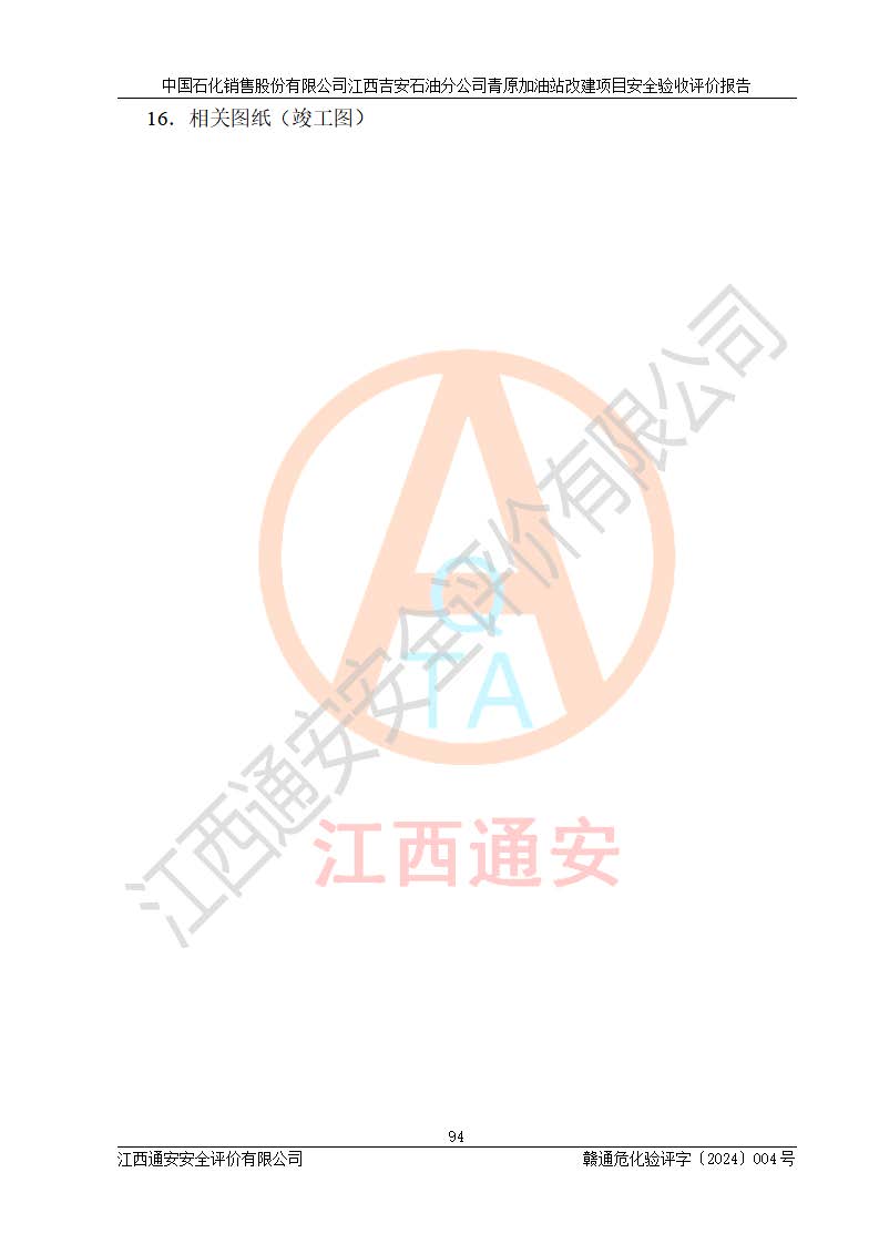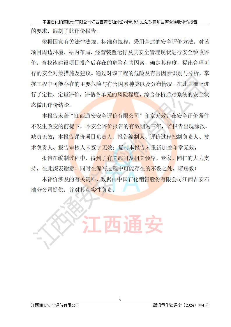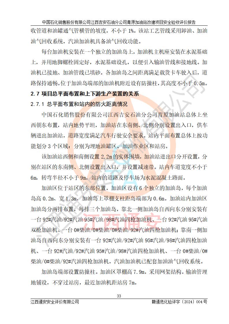 评价报告名称 | 中国石化销售股份有限公司江西吉安石油分公司青原加油站改建项目安全验收状评价报告 | |||