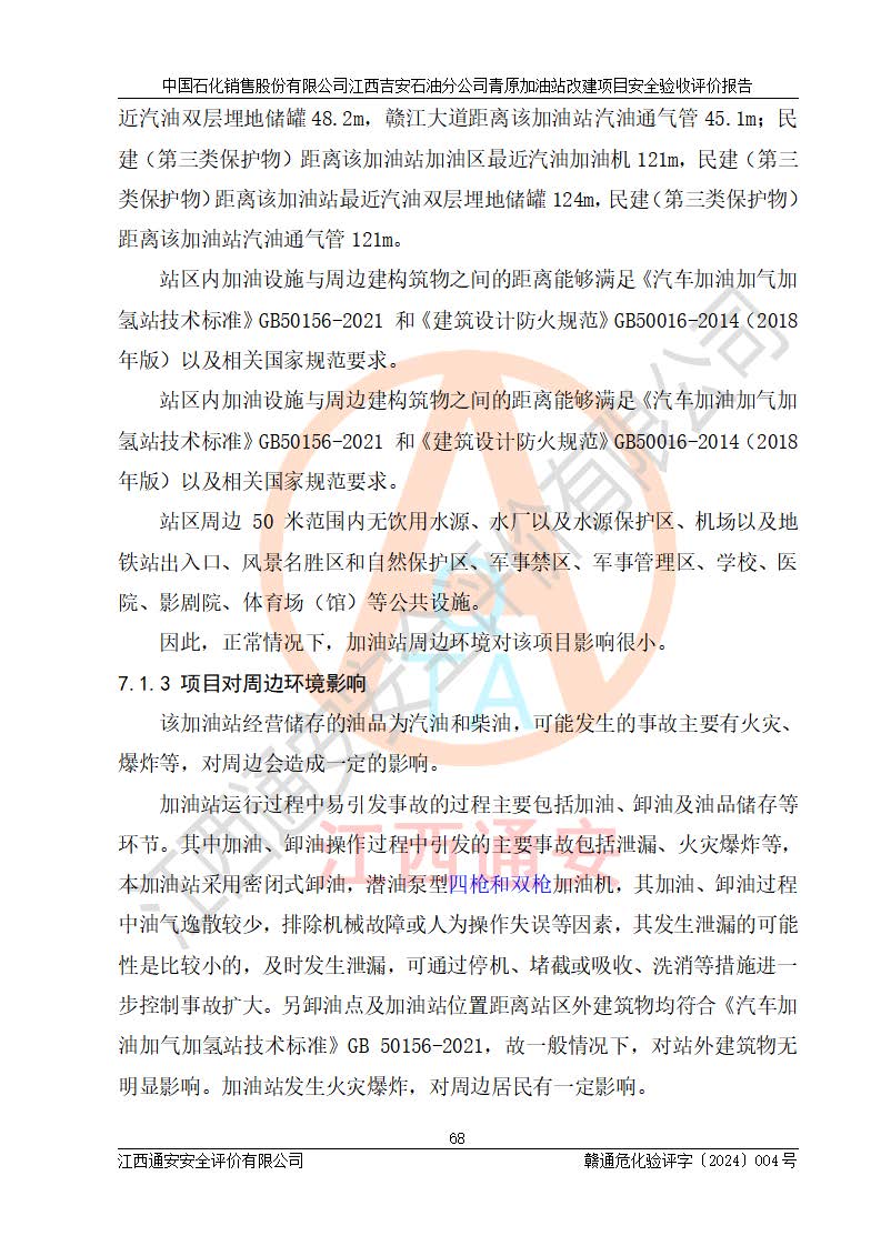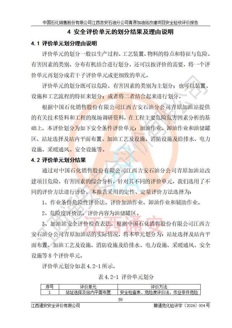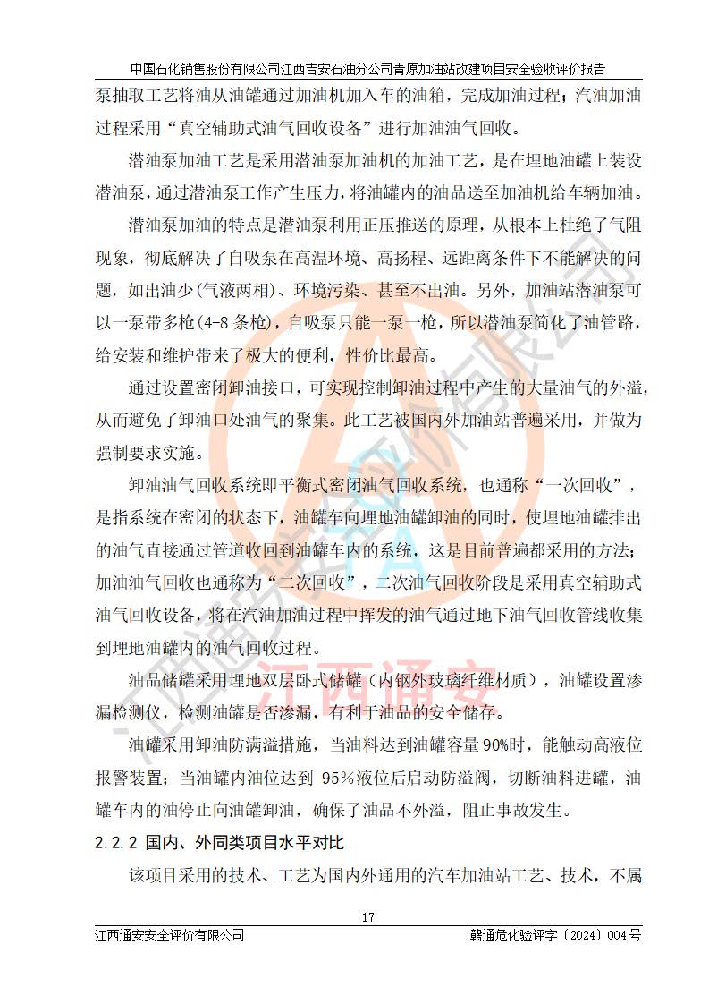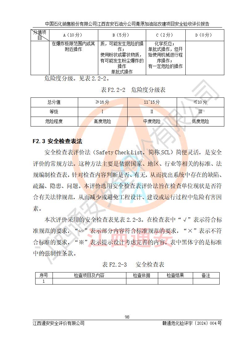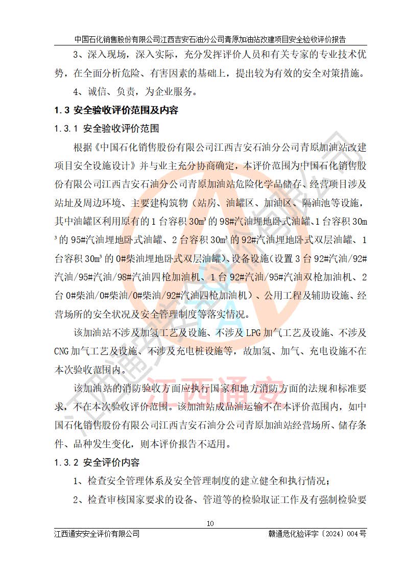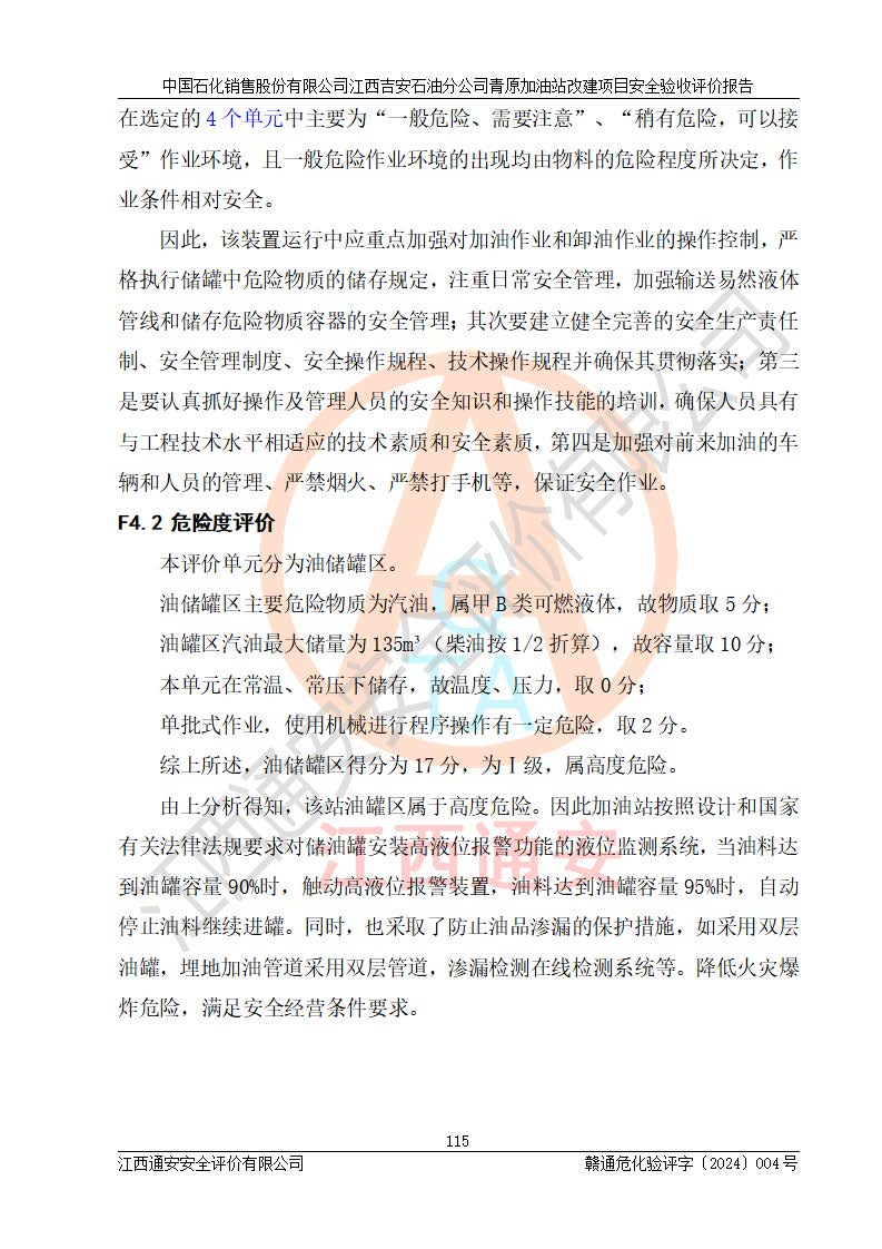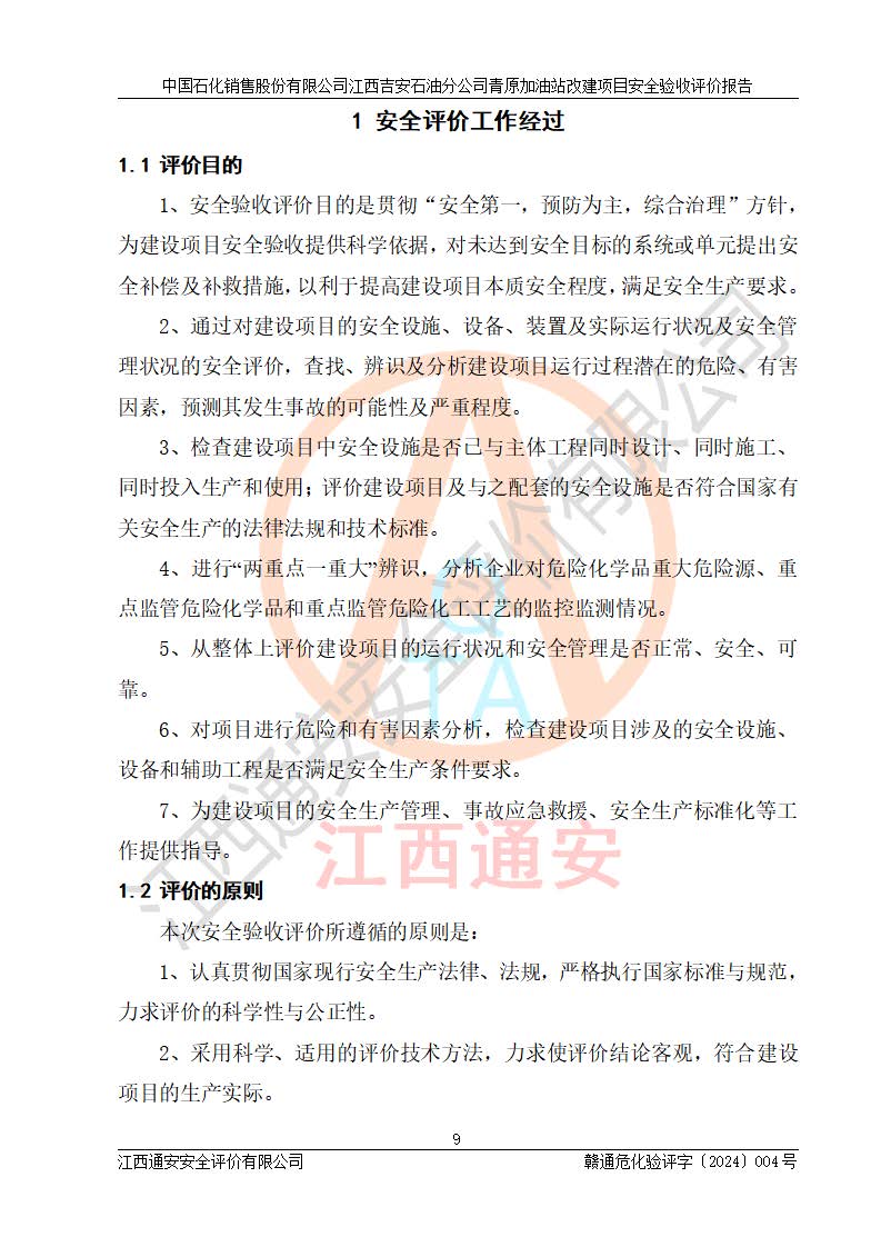 评价报告名称 | 中国石化销售股份有限公司江西吉安石油分公司青原加油站改建项目安全验收状评价报告 | |||