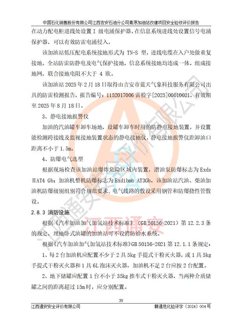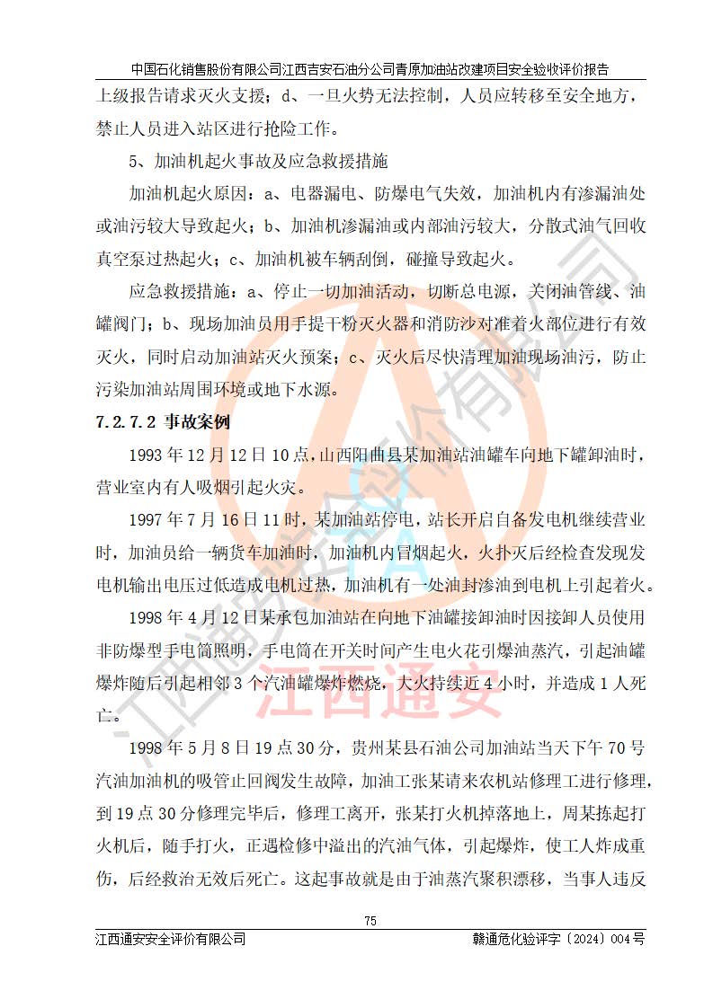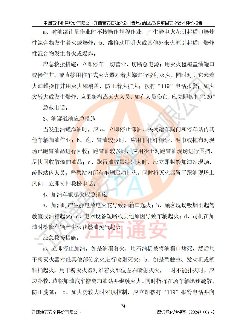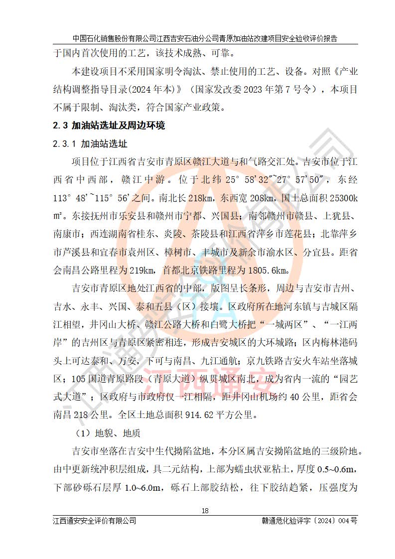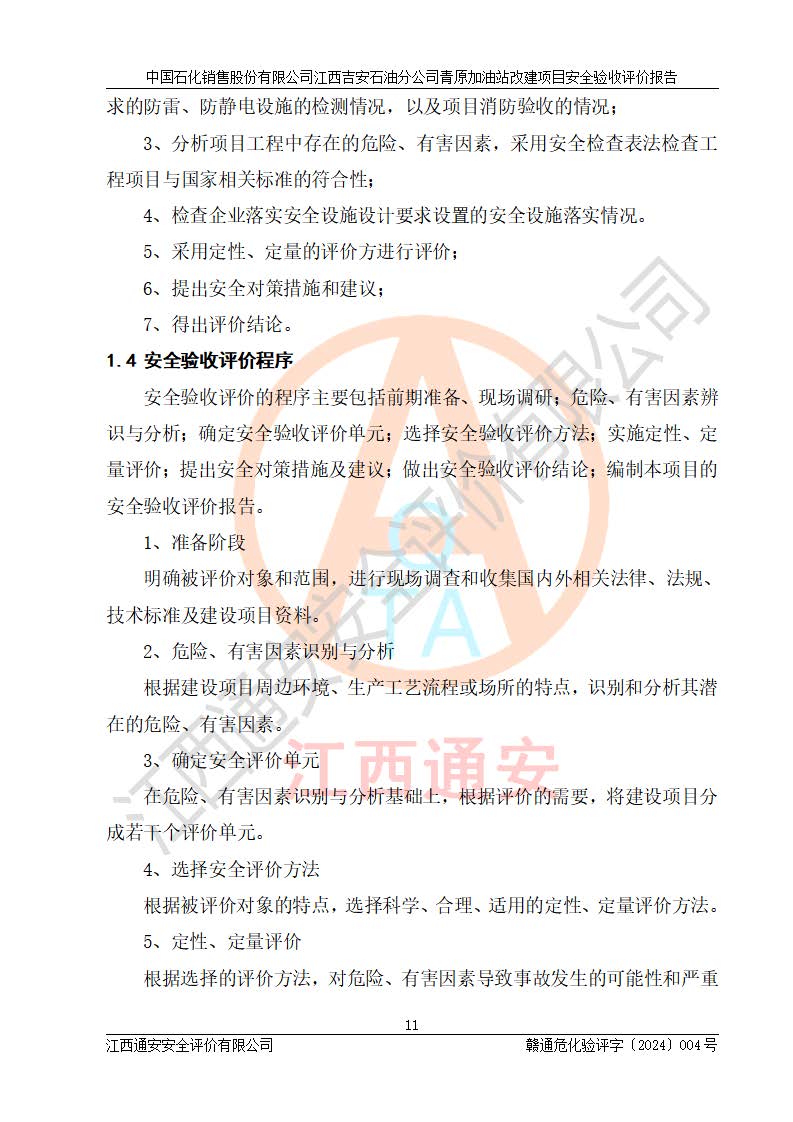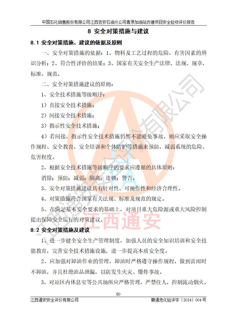 评价报告名称 | 中国石化销售股份有限公司江西吉安石油分公司青原加油站改建项目安全验收状评价报告 | |||