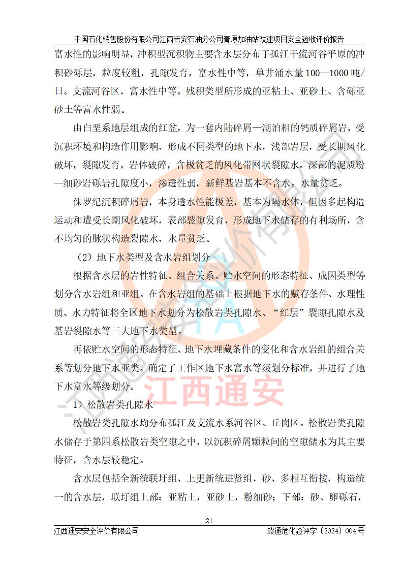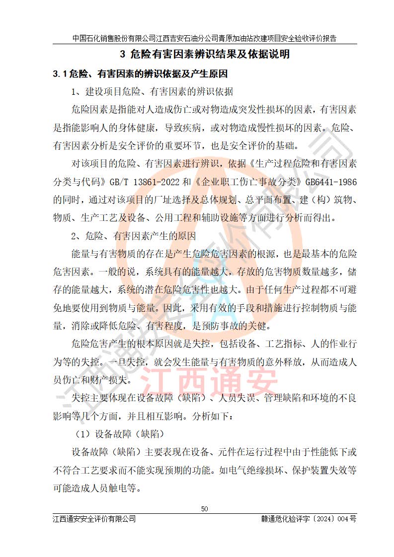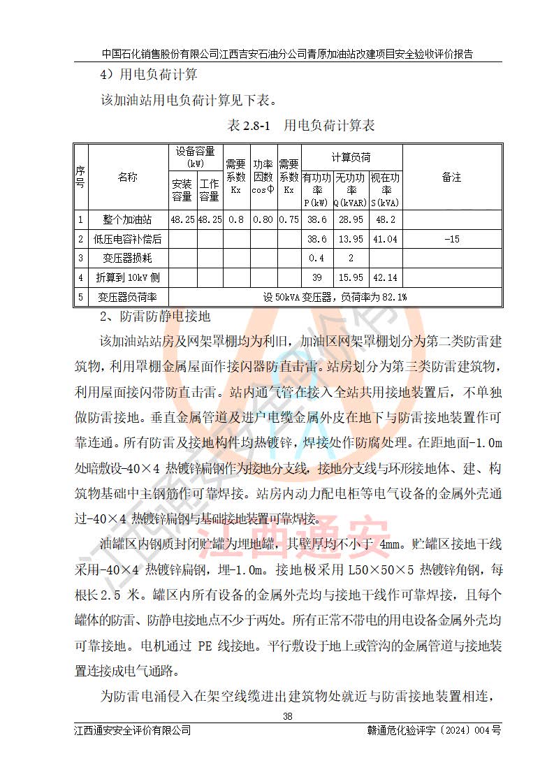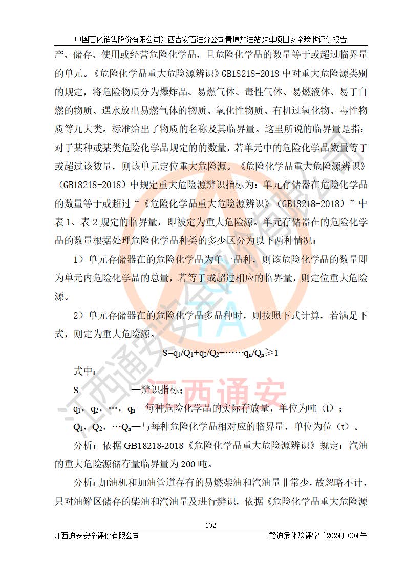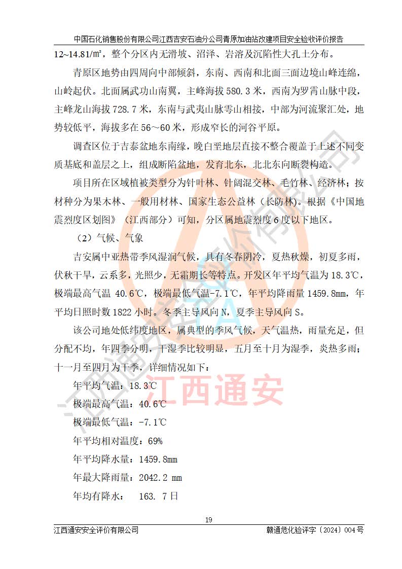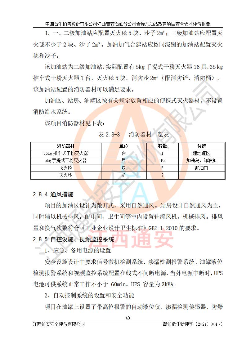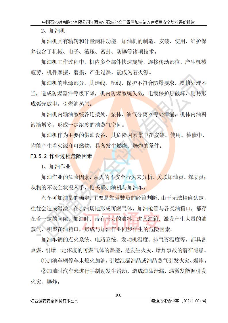 评价报告名称 | 中国石化销售股份有限公司江西吉安石油分公司青原加油站改建项目安全验收状评价报告 | |||
