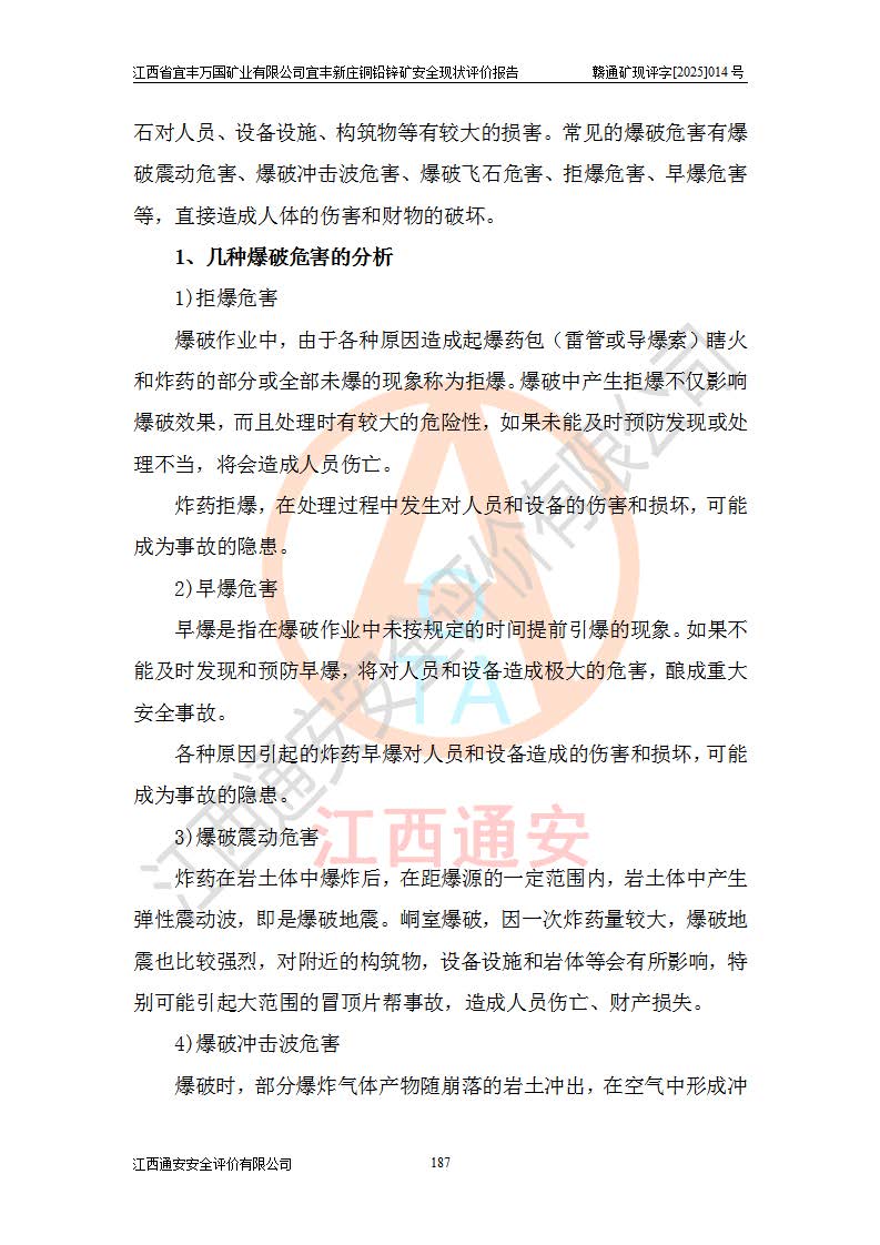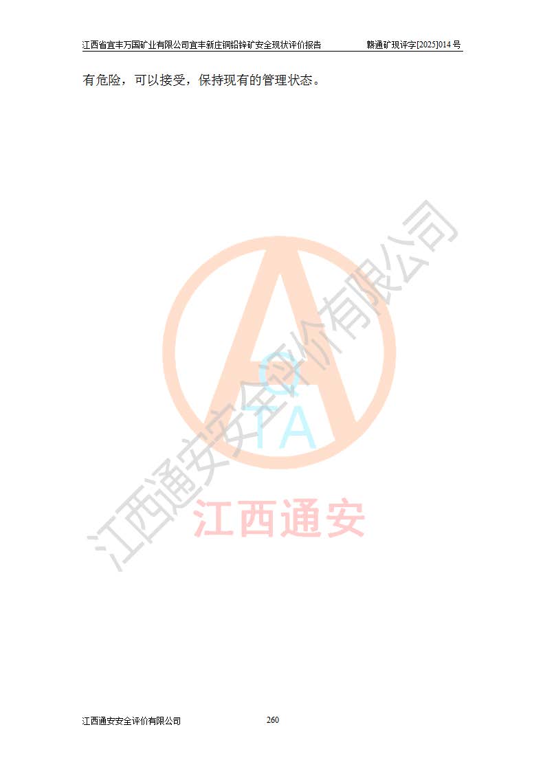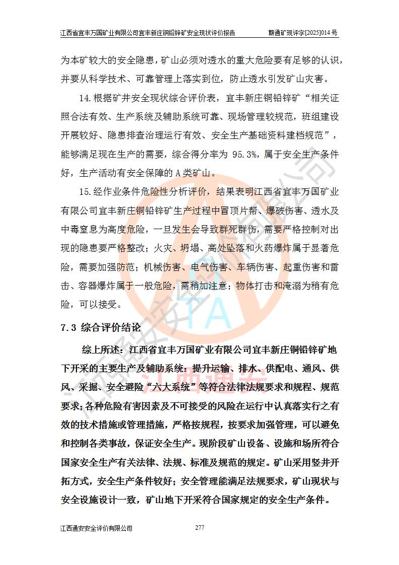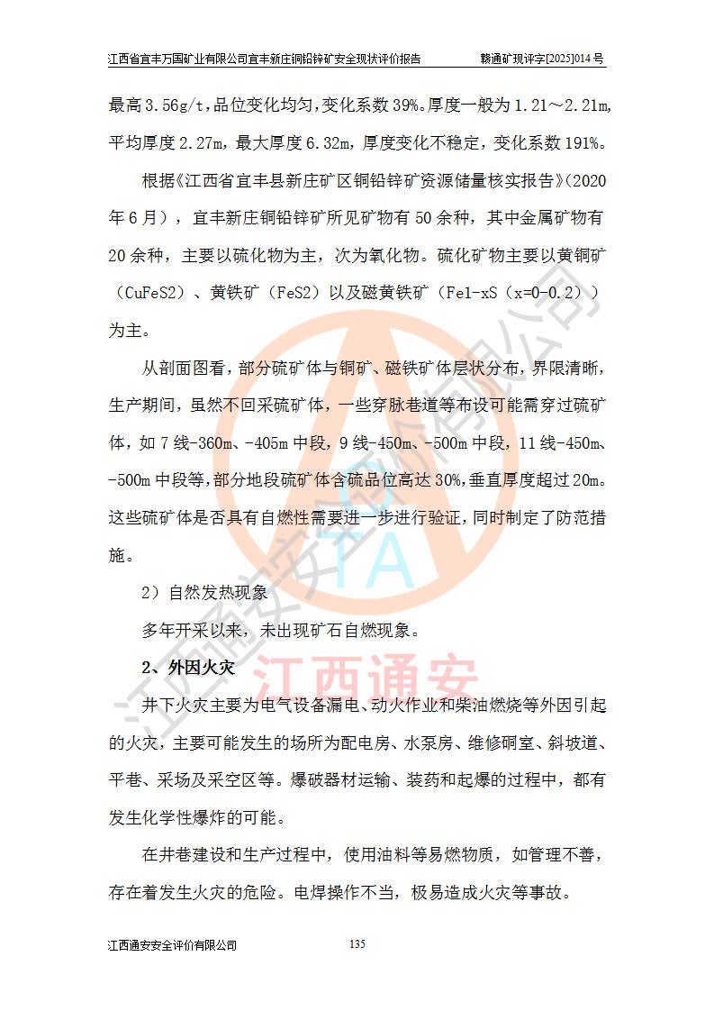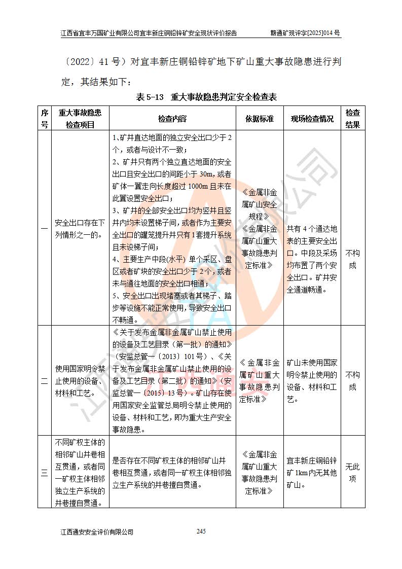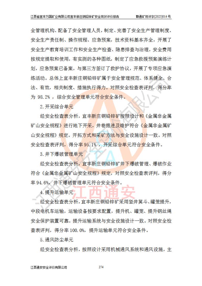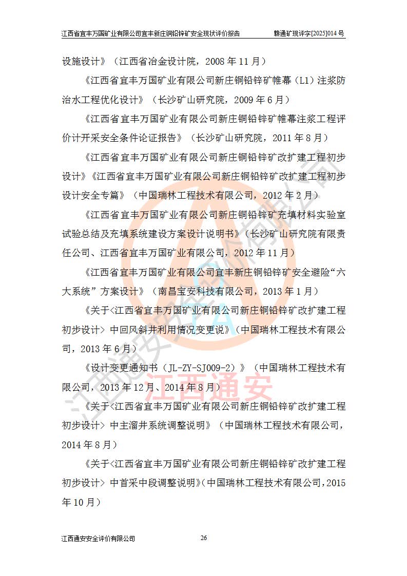 项目名称 | 江西省宜丰万国矿业有限公司宜丰新庄铜铅锌矿安全现状评价报告 | ||||