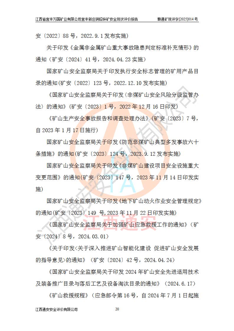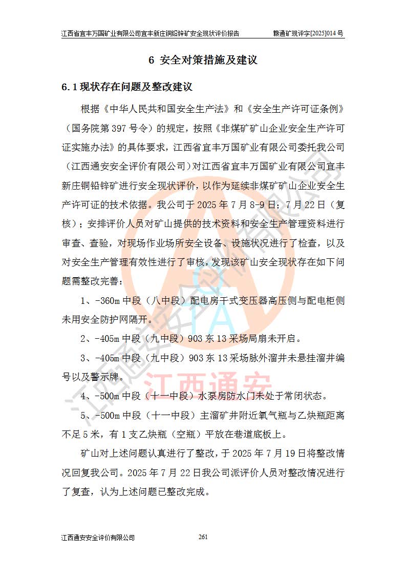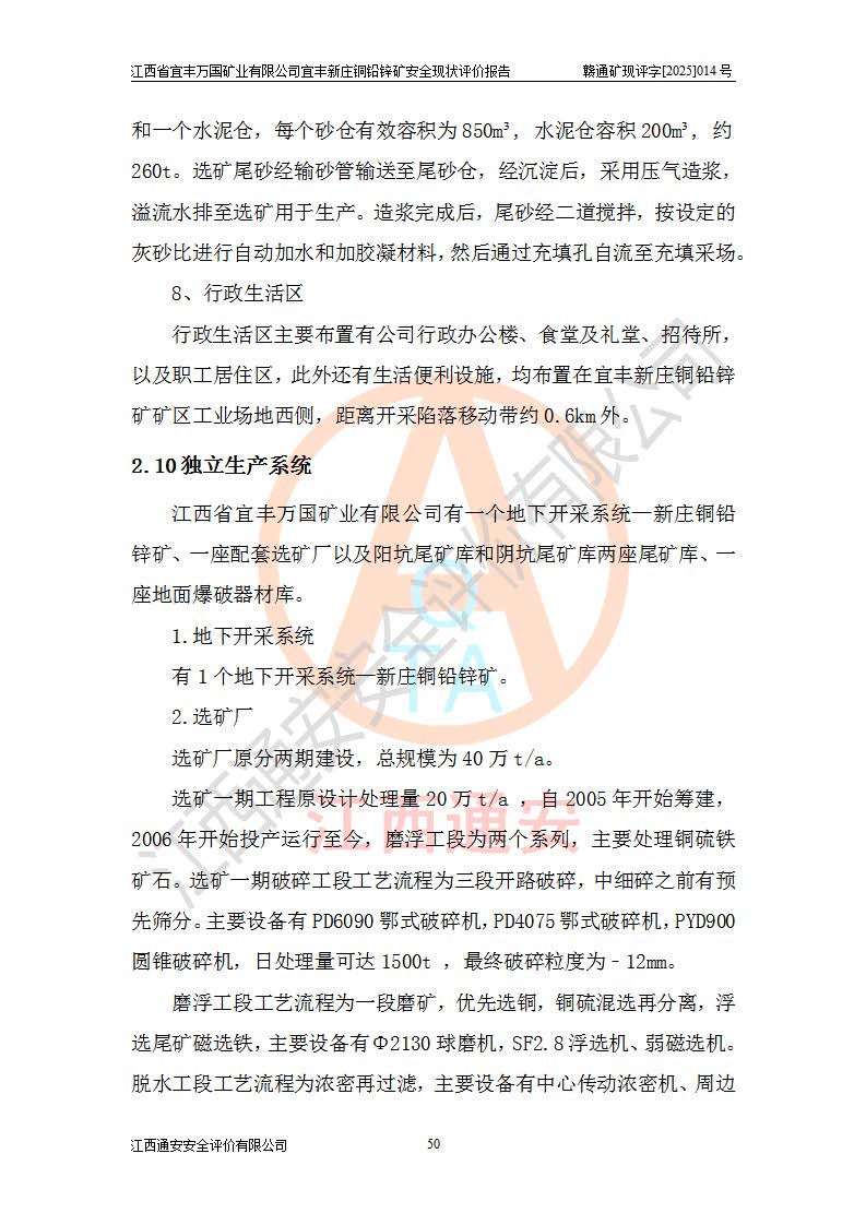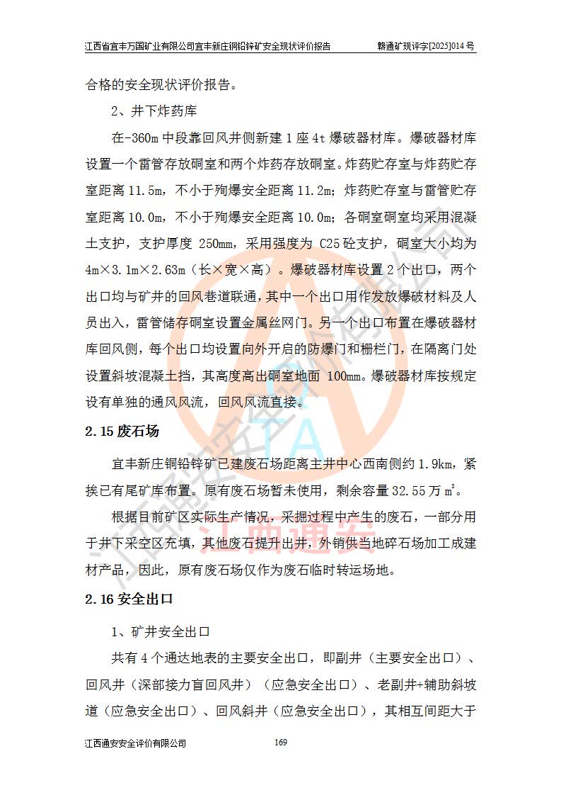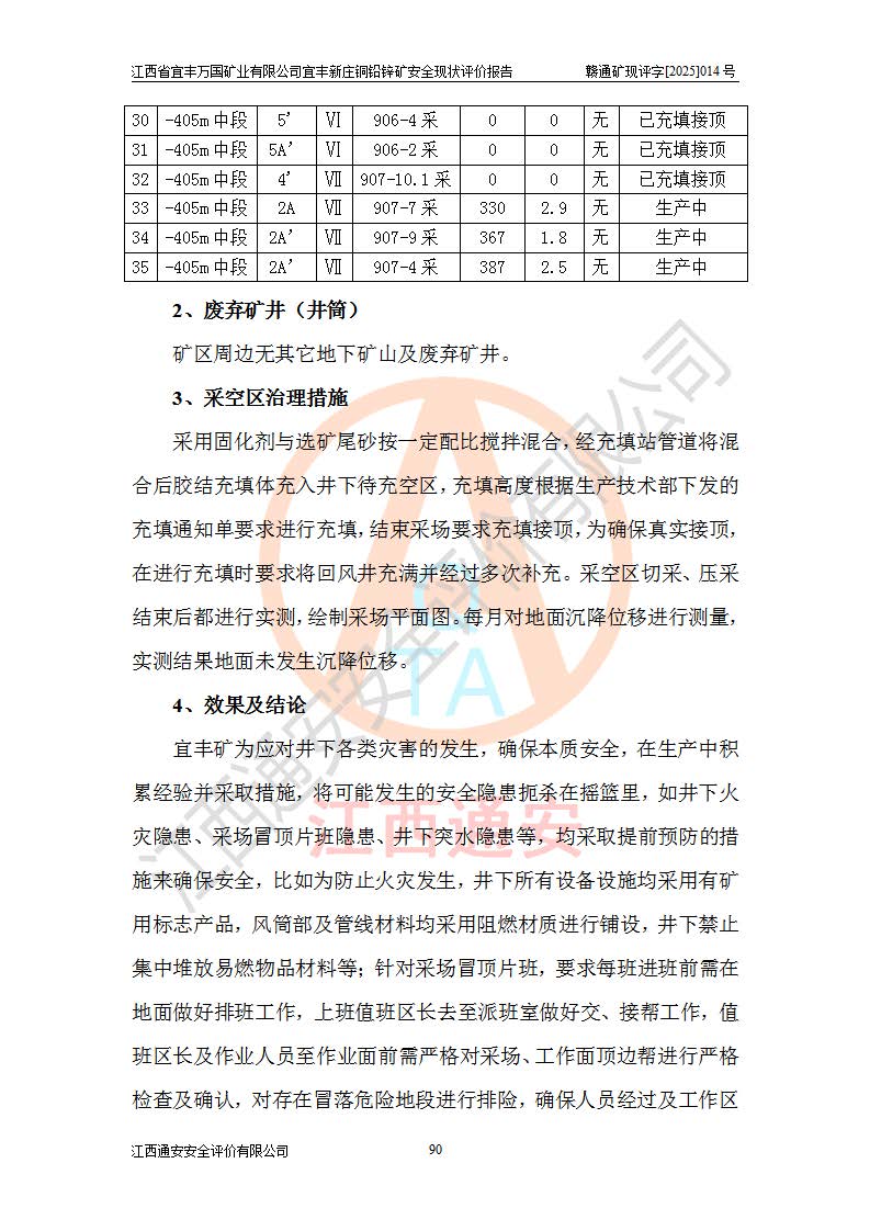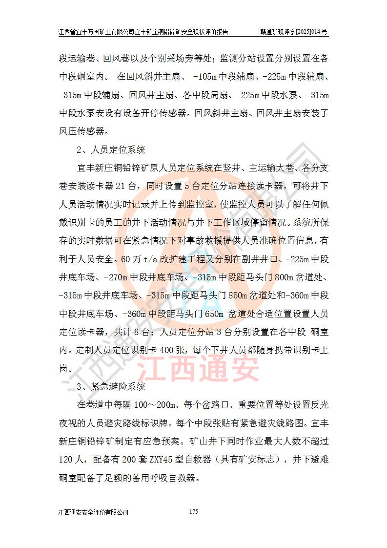 项目名称 | 江西省宜丰万国矿业有限公司宜丰新庄铜铅锌矿安全现状评价报告 | ||||