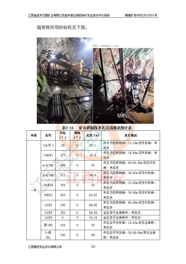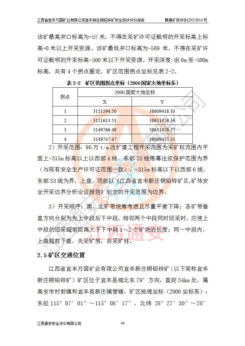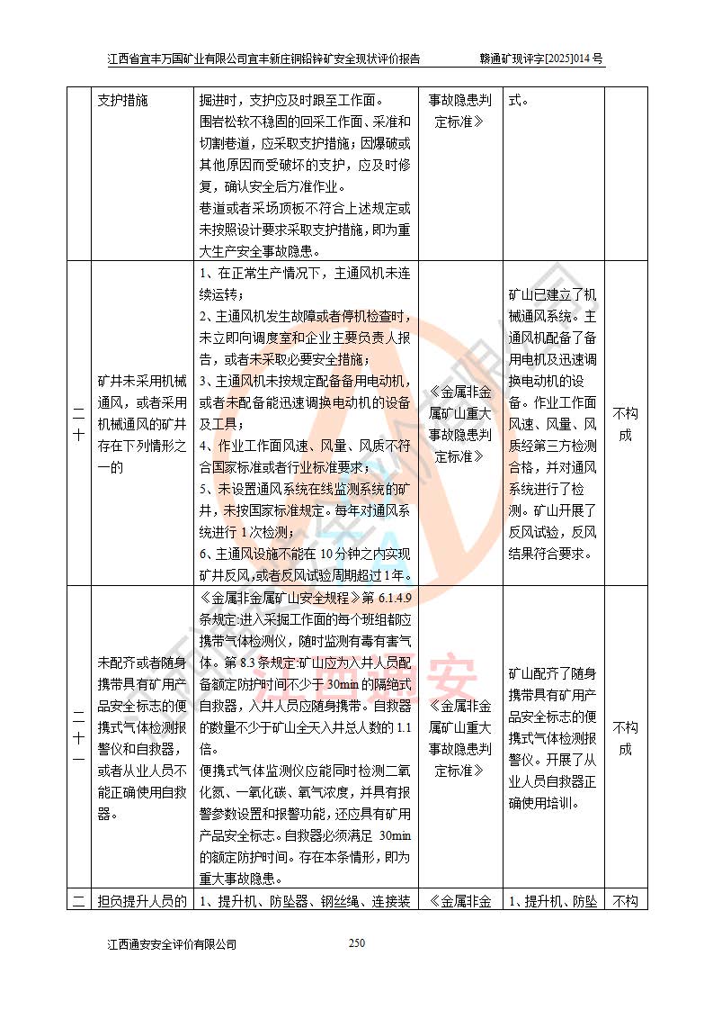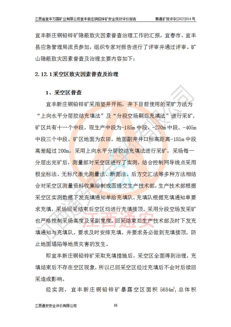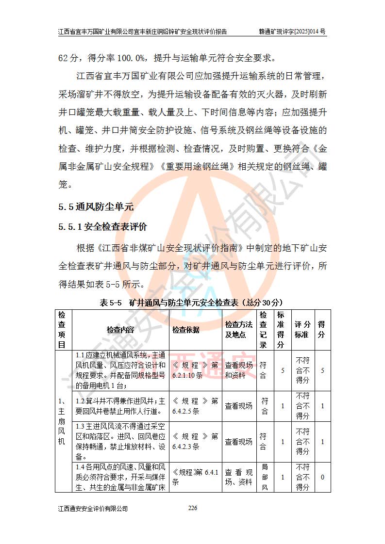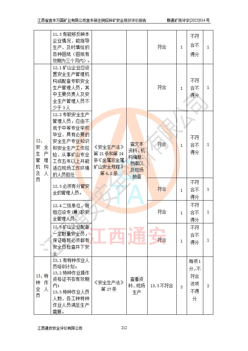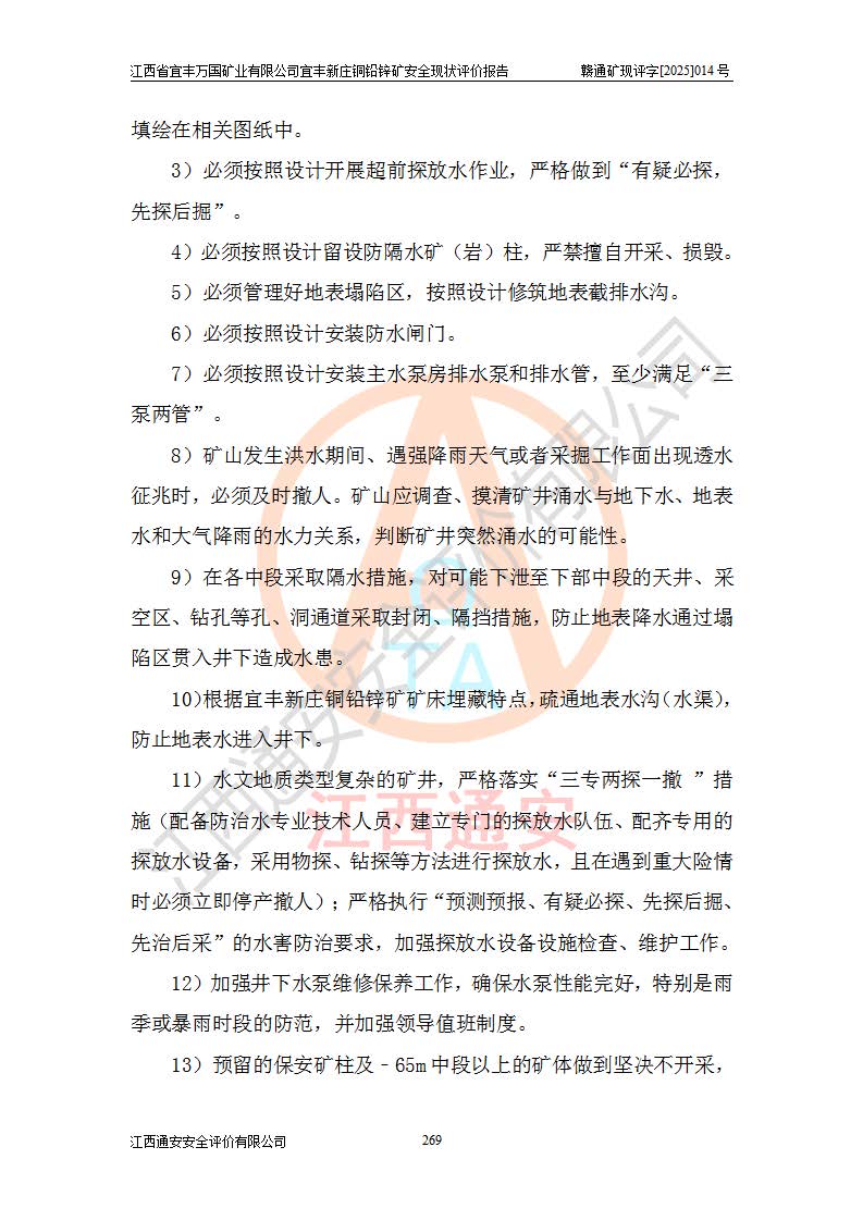 项目名称 | 江西省宜丰万国矿业有限公司宜丰新庄铜铅锌矿安全现状评价报告 | ||||