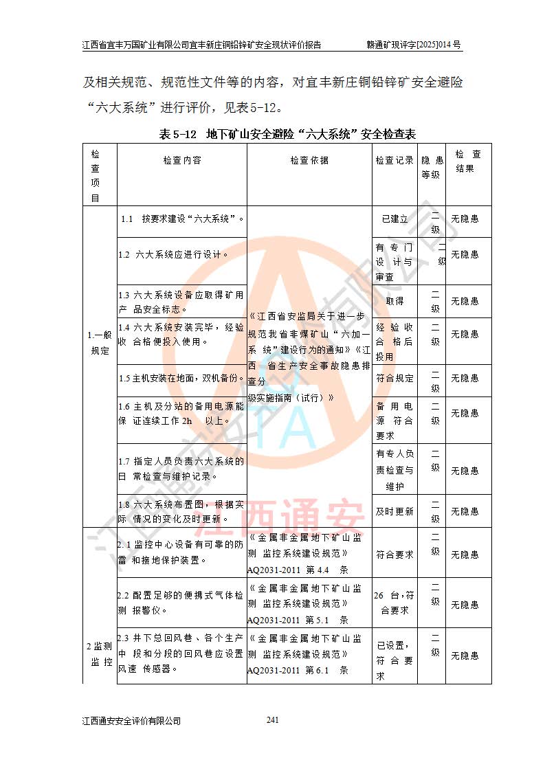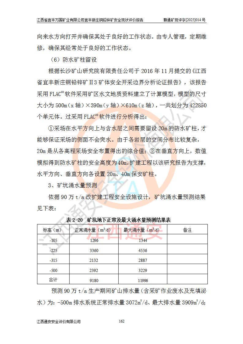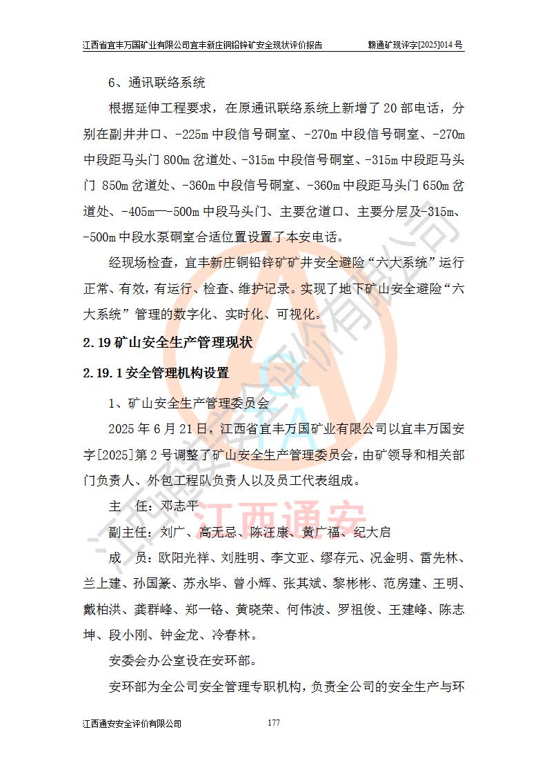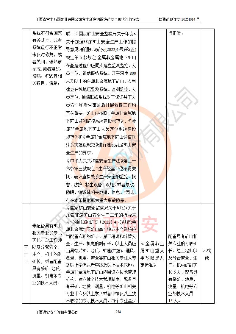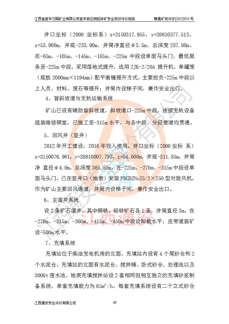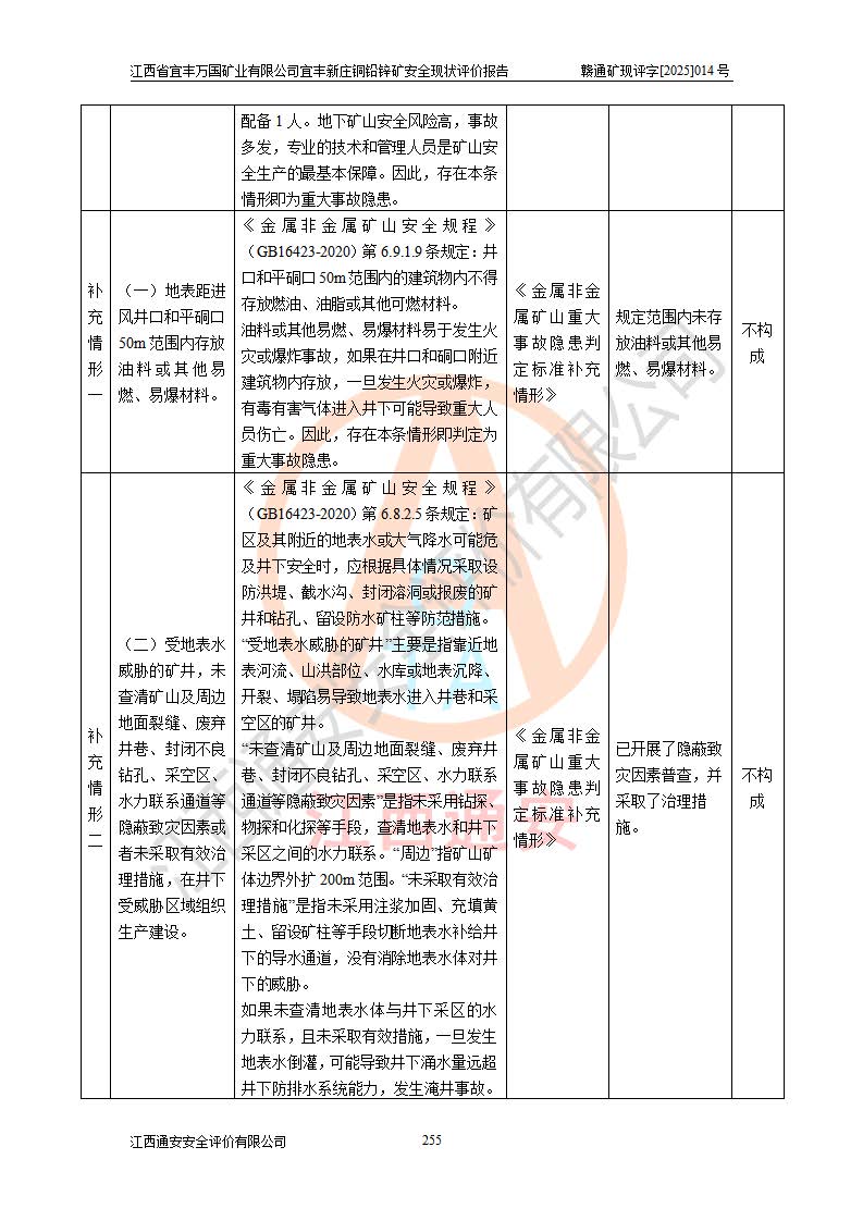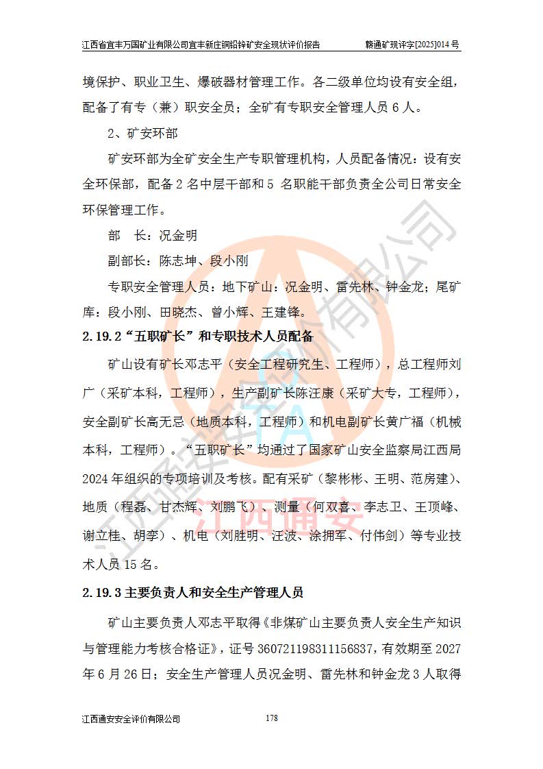 项目名称 | 江西省宜丰万国矿业有限公司宜丰新庄铜铅锌矿安全现状评价报告 | ||||