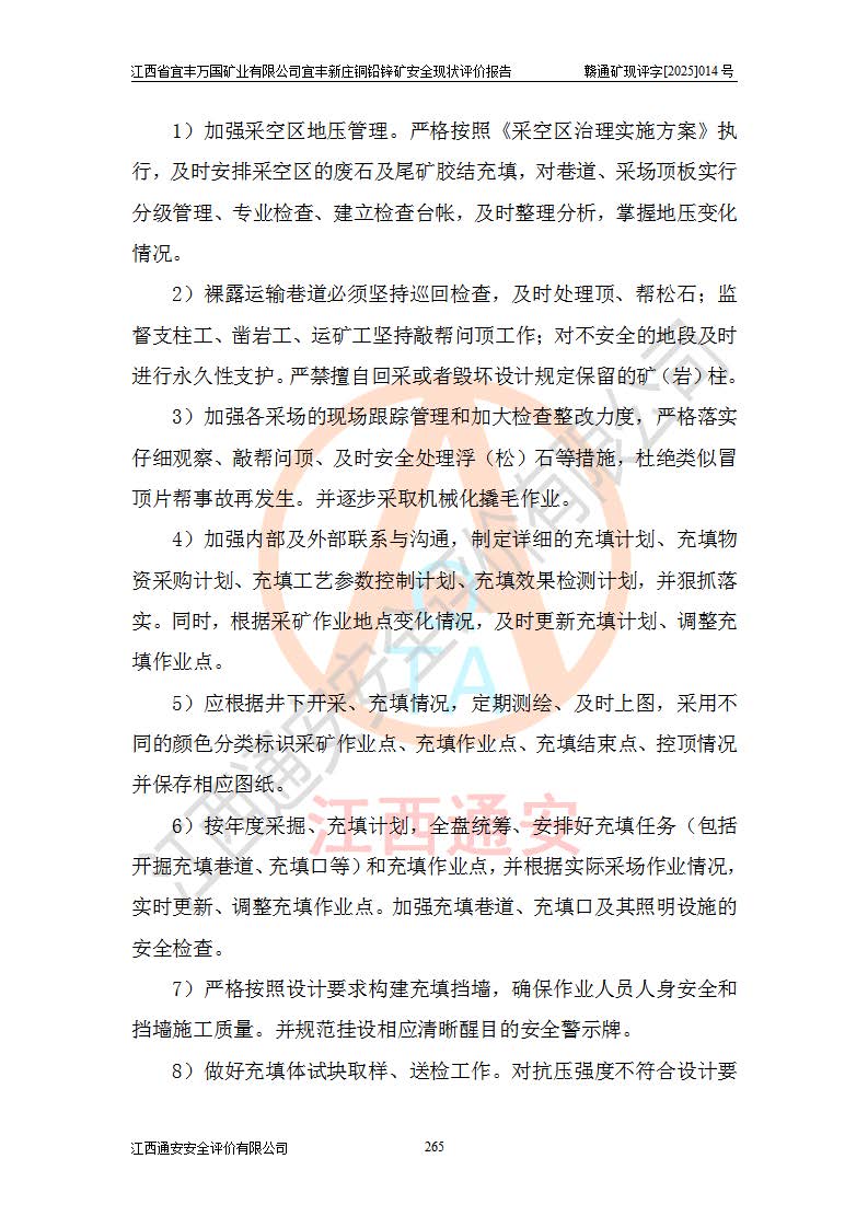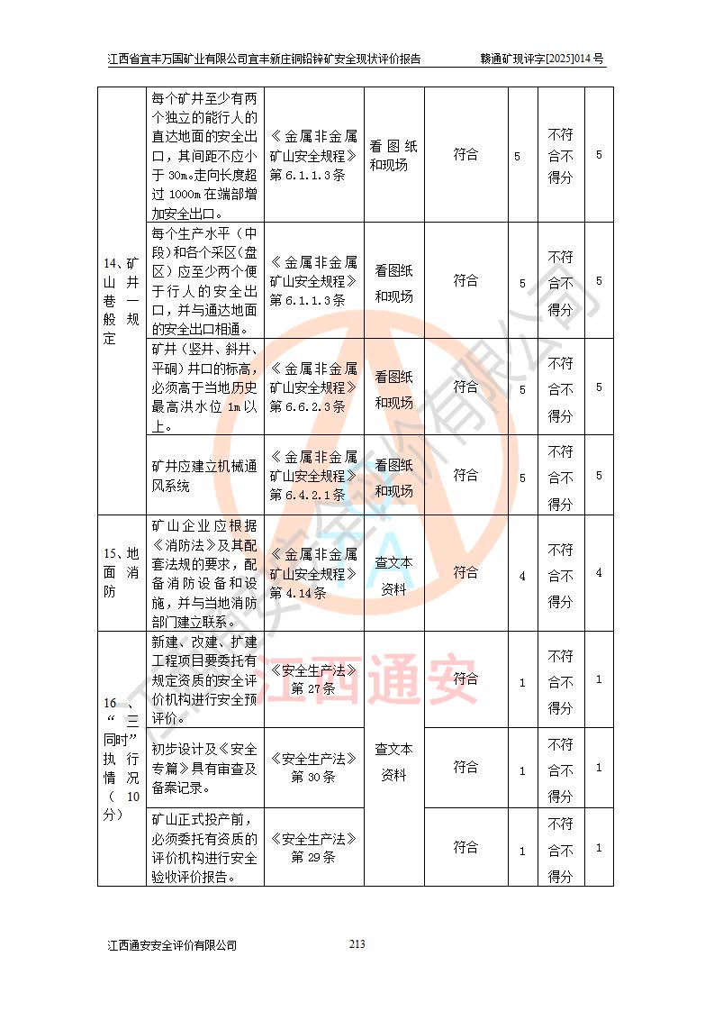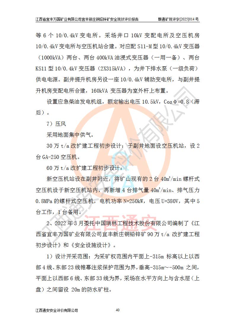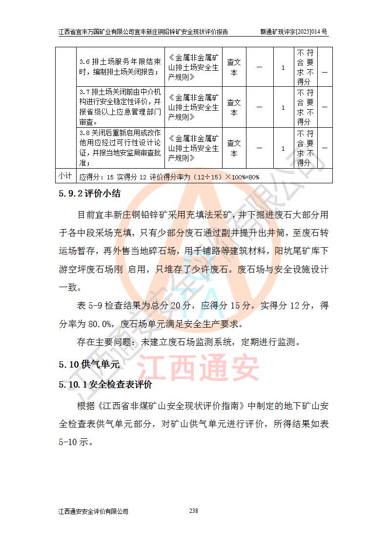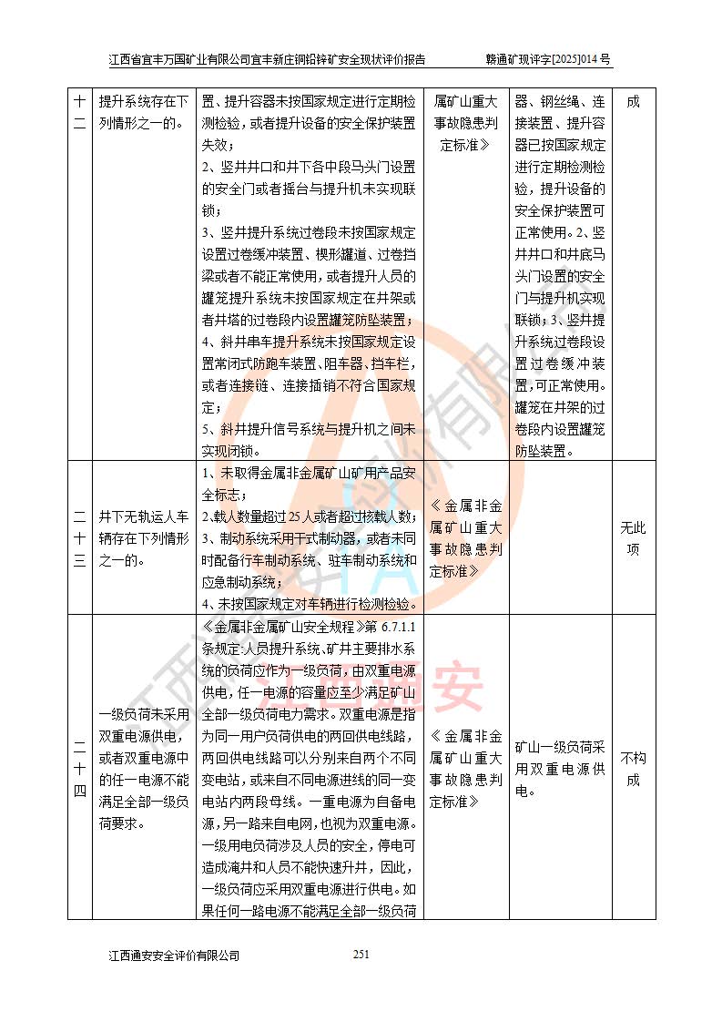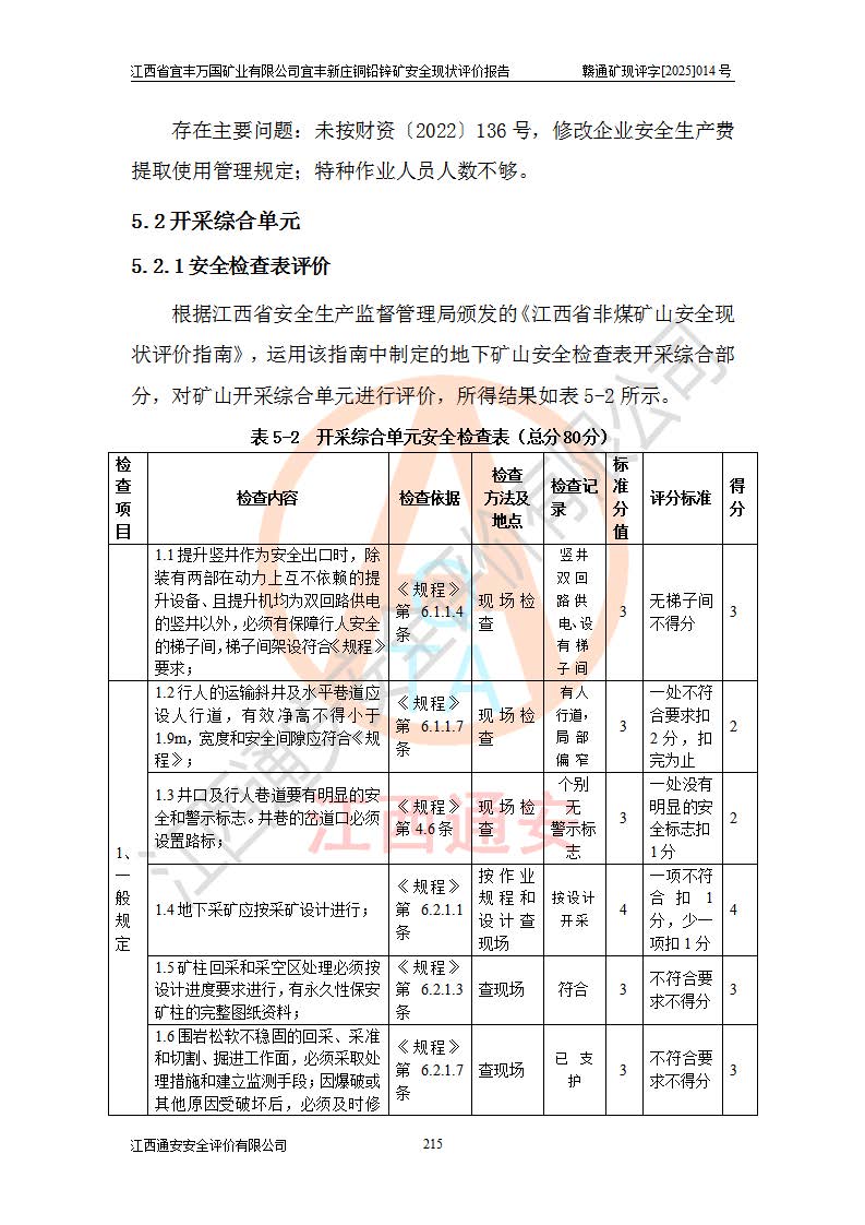 项目名称 | 江西省宜丰万国矿业有限公司宜丰新庄铜铅锌矿安全现状评价报告 | ||||