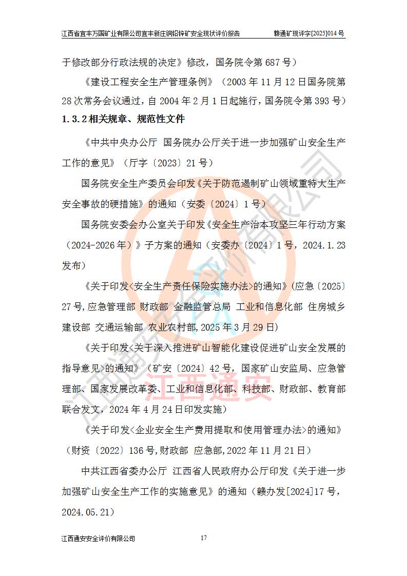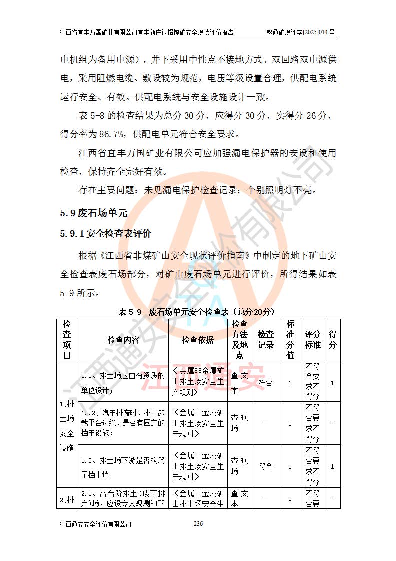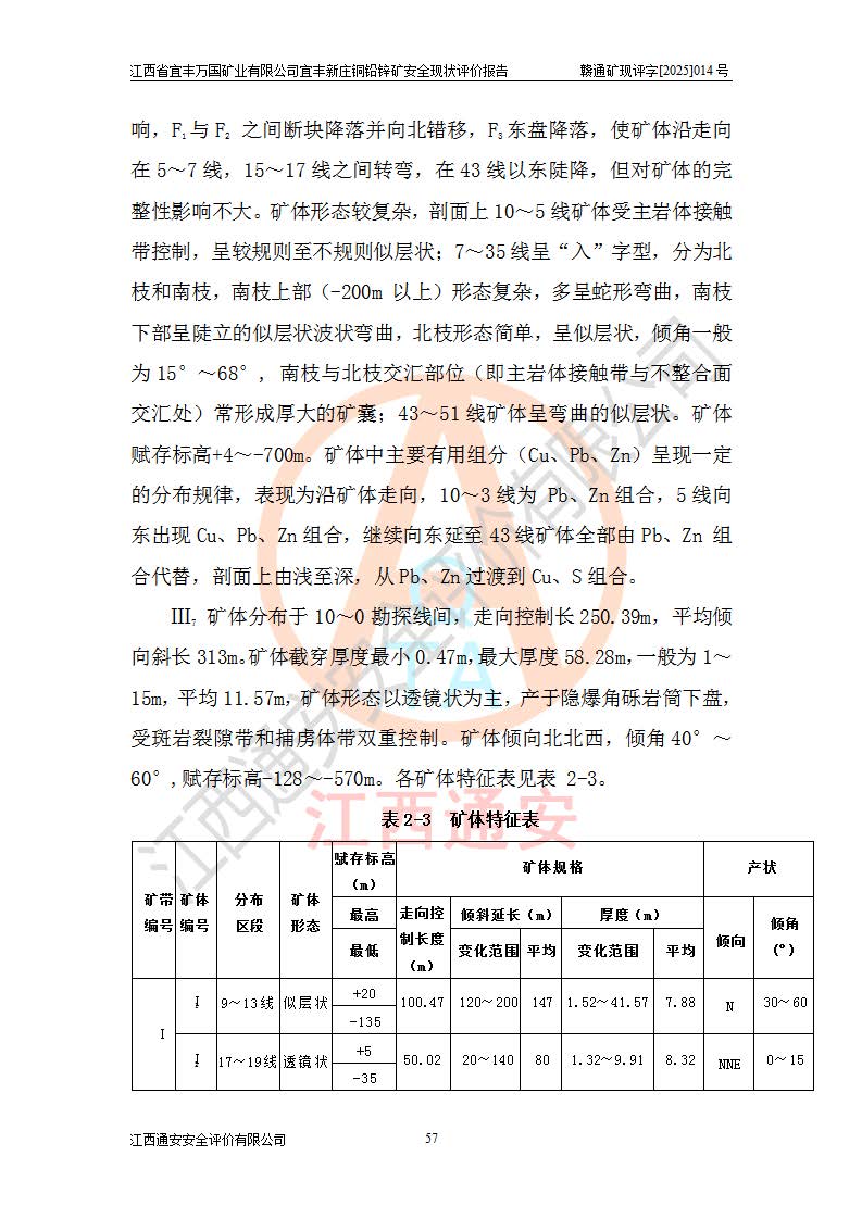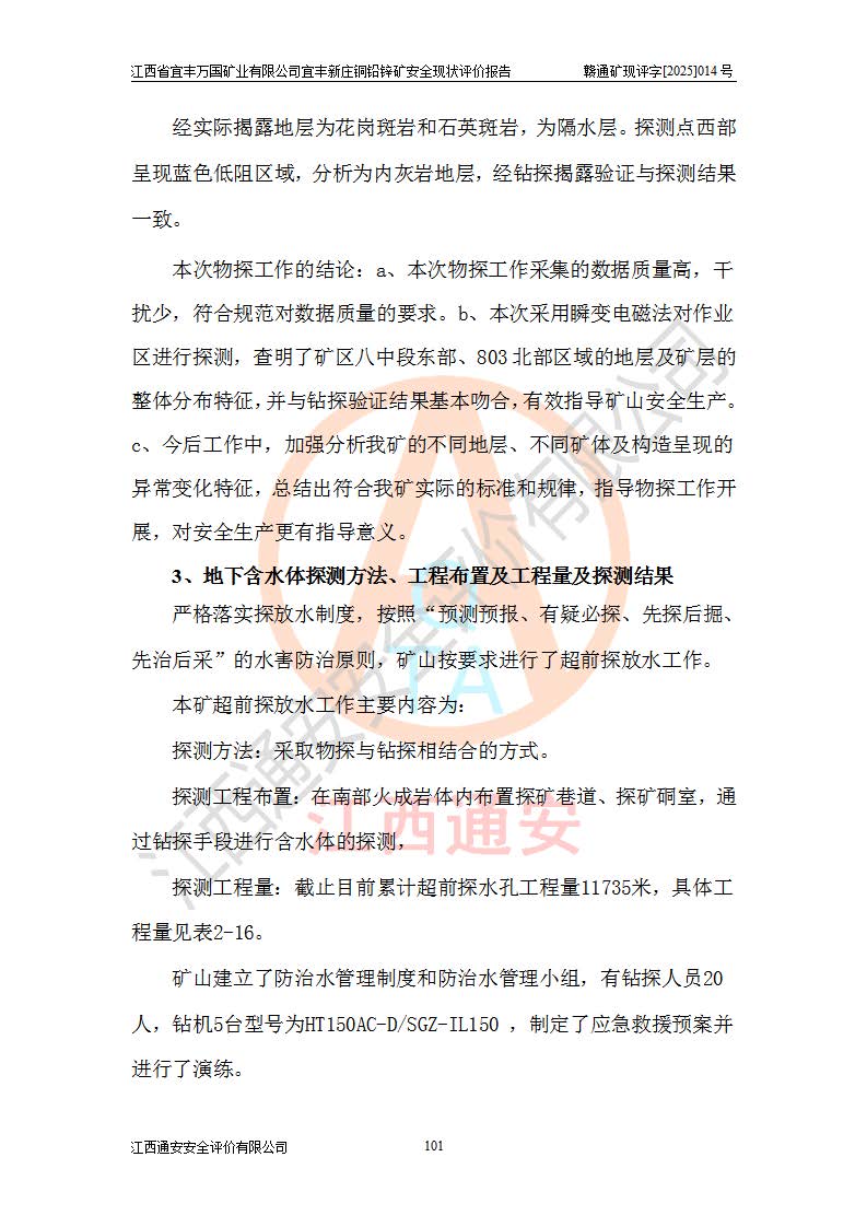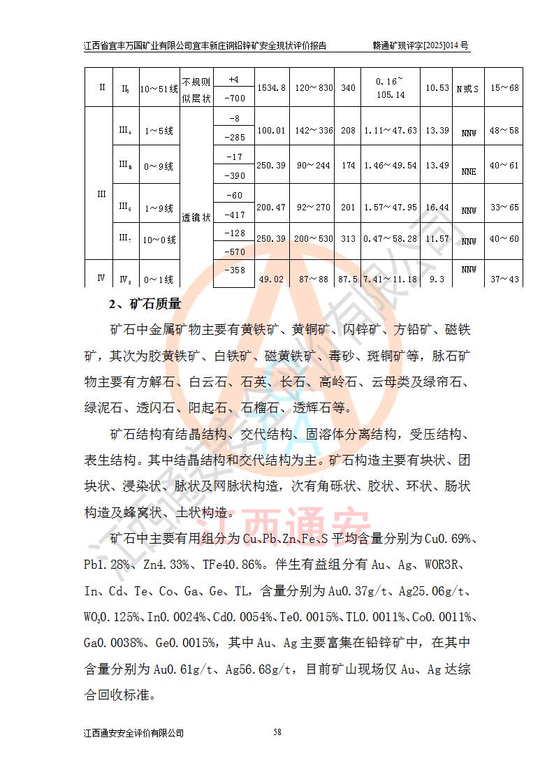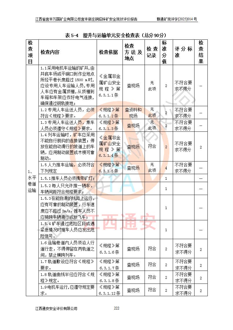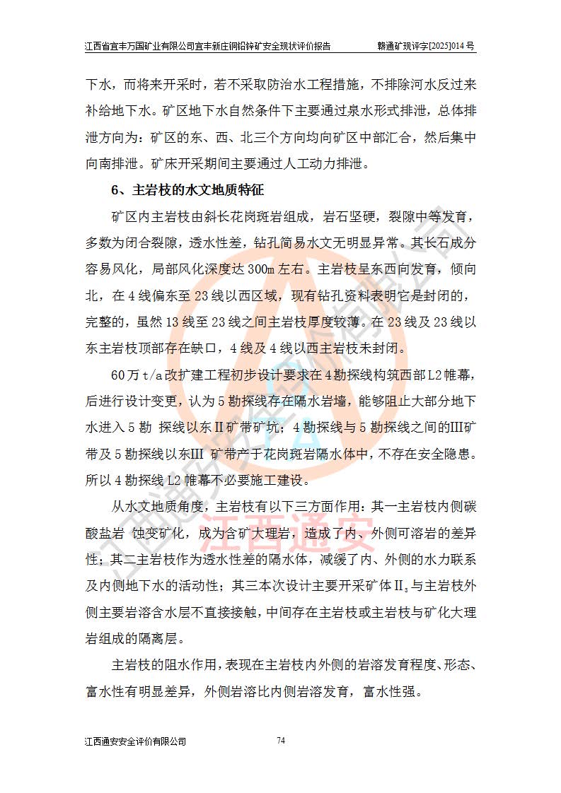 项目名称 | 江西省宜丰万国矿业有限公司宜丰新庄铜铅锌矿安全现状评价报告 | ||||