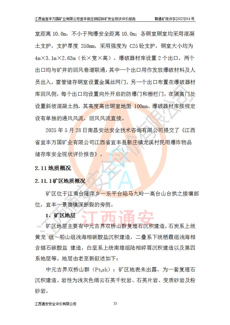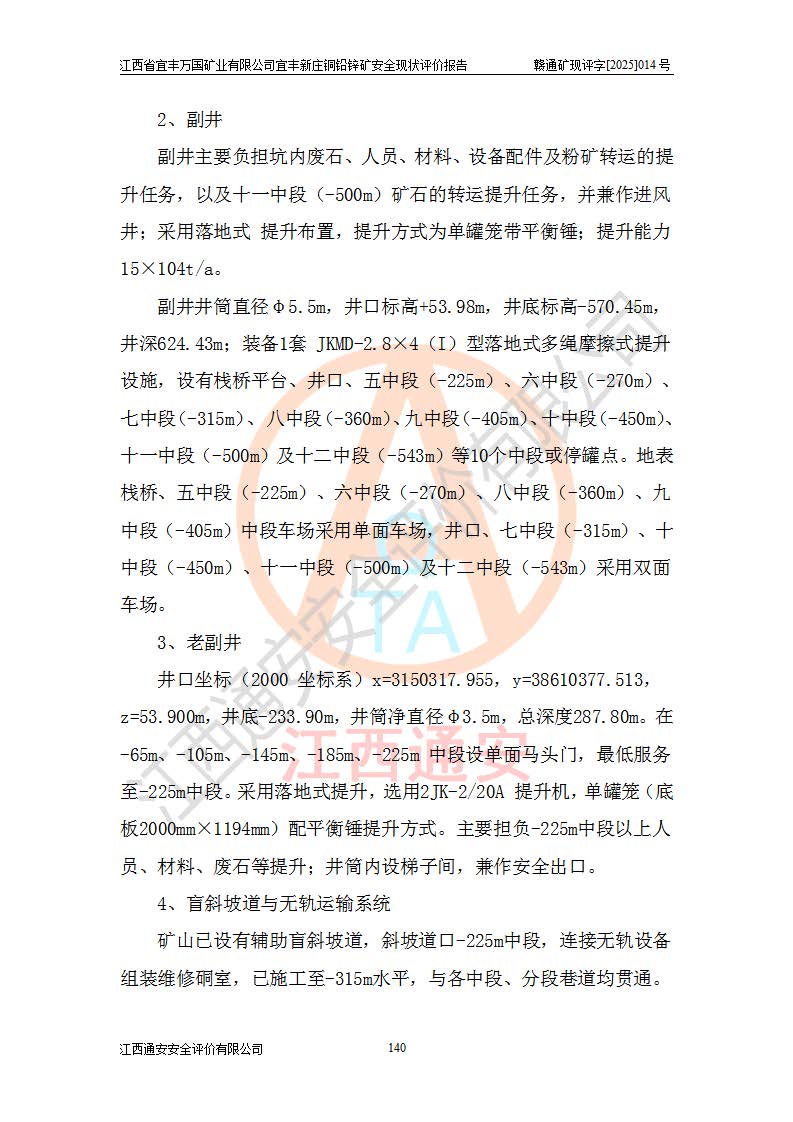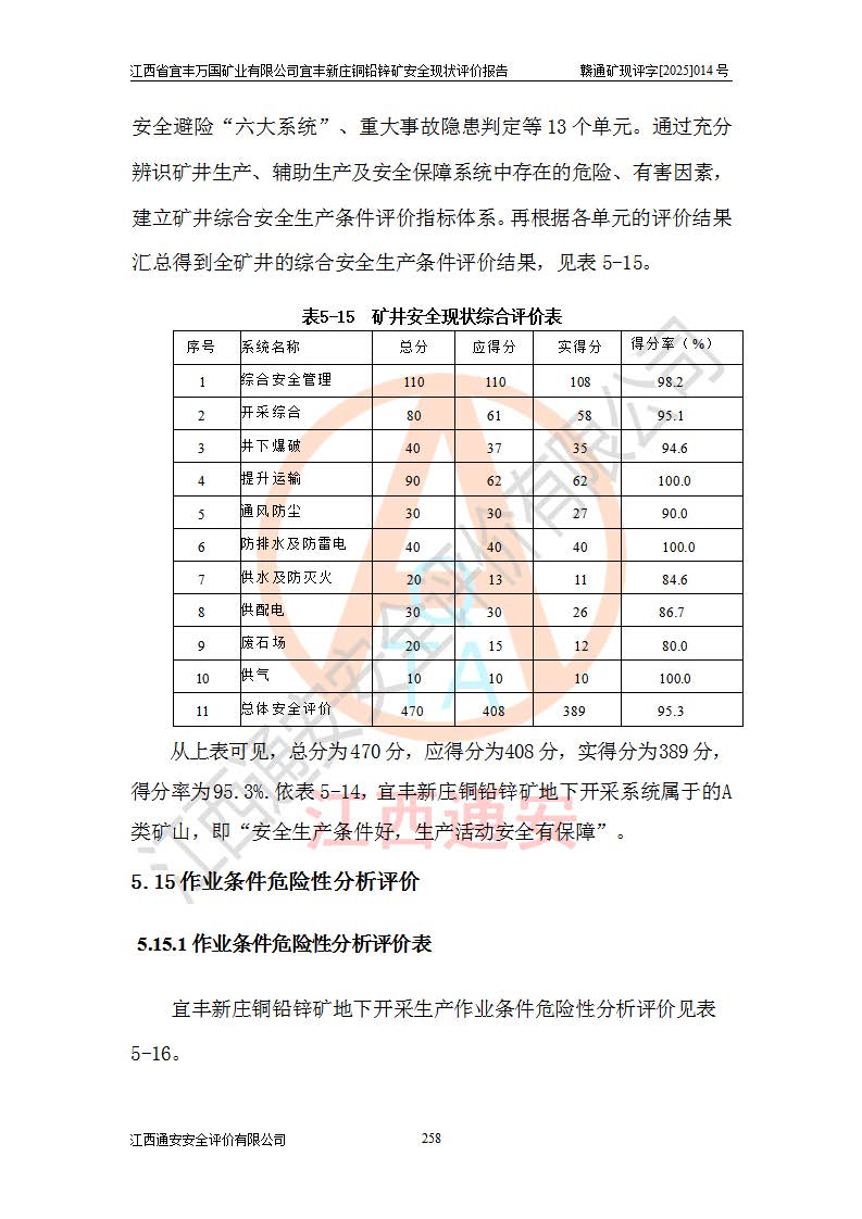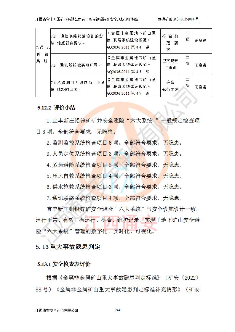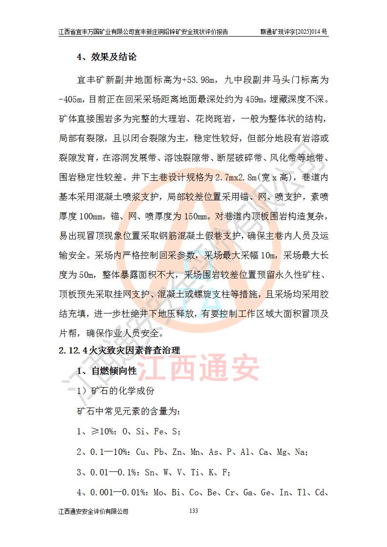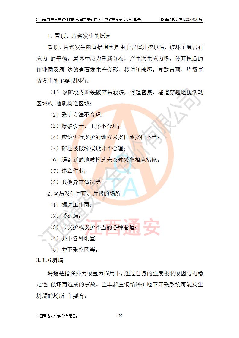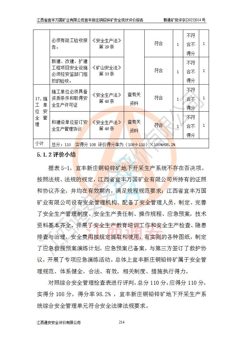 项目名称 | 江西省宜丰万国矿业有限公司宜丰新庄铜铅锌矿安全现状评价报告 | ||||