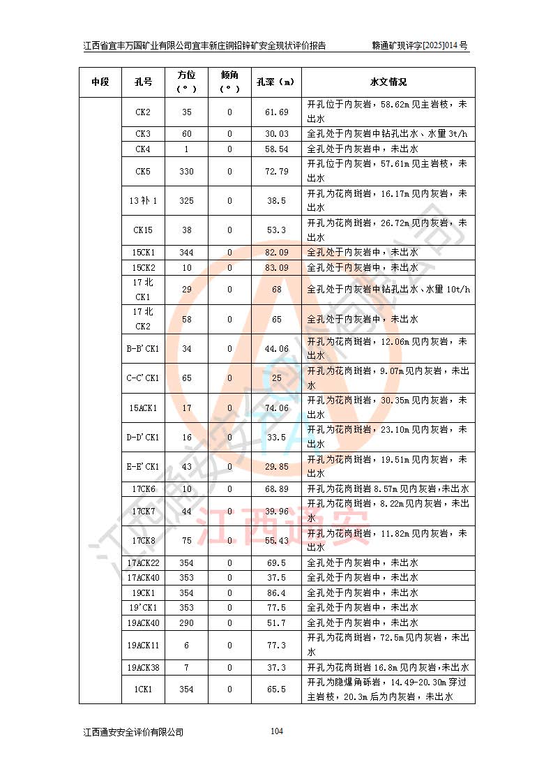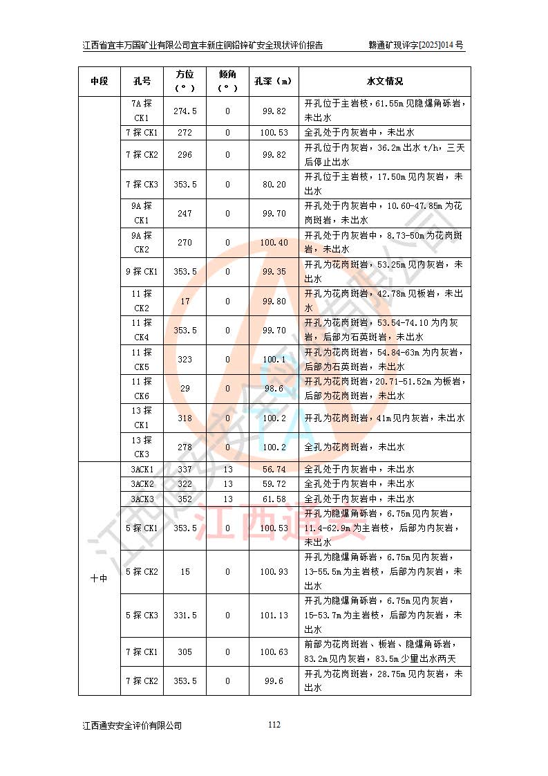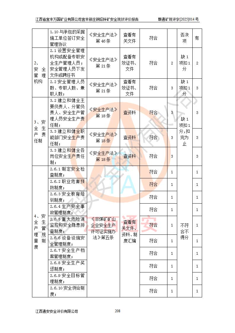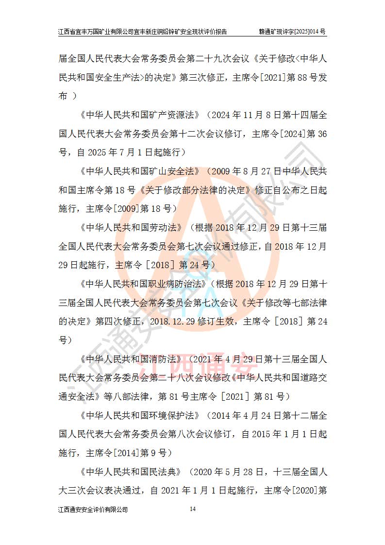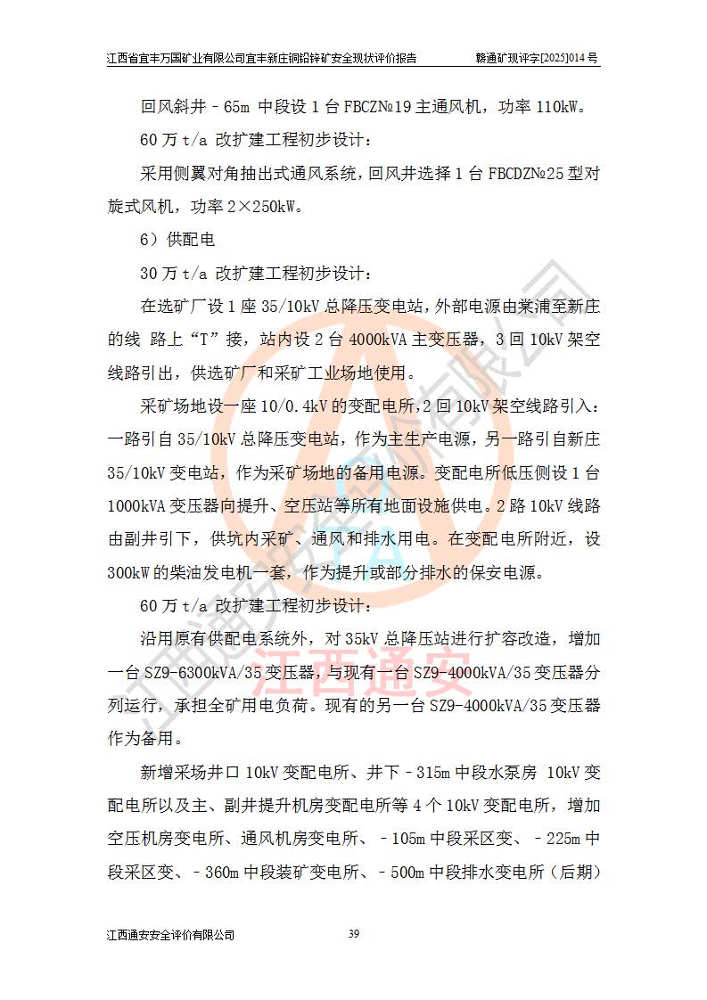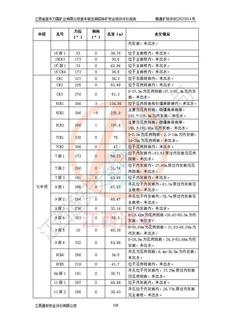 项目名称 | 江西省宜丰万国矿业有限公司宜丰新庄铜铅锌矿安全现状评价报告 | ||||