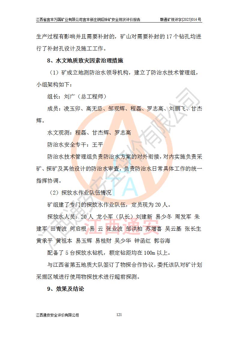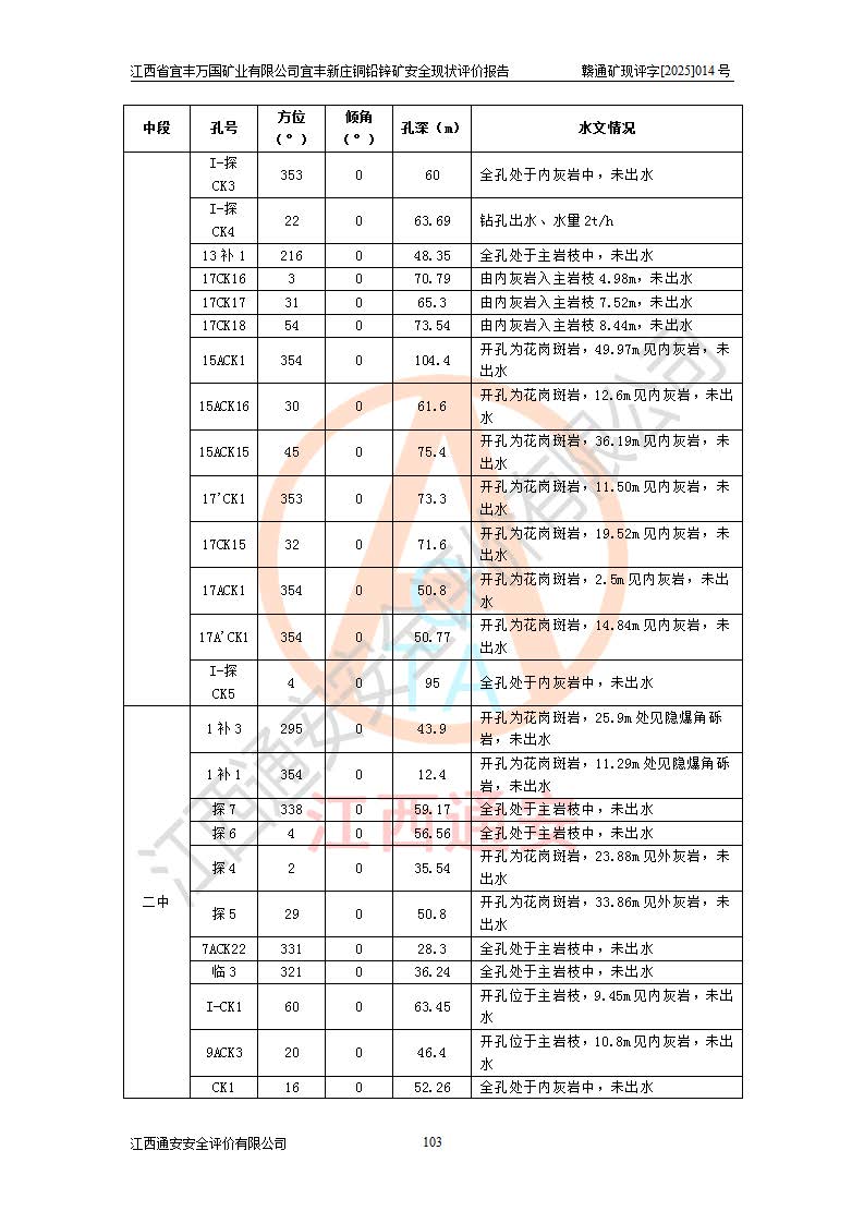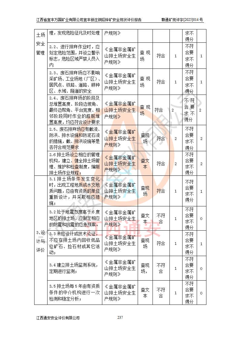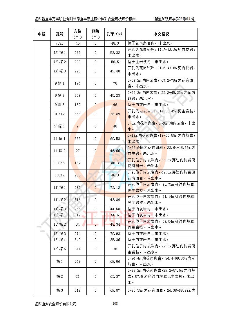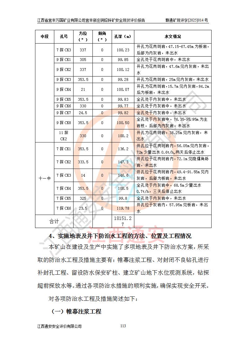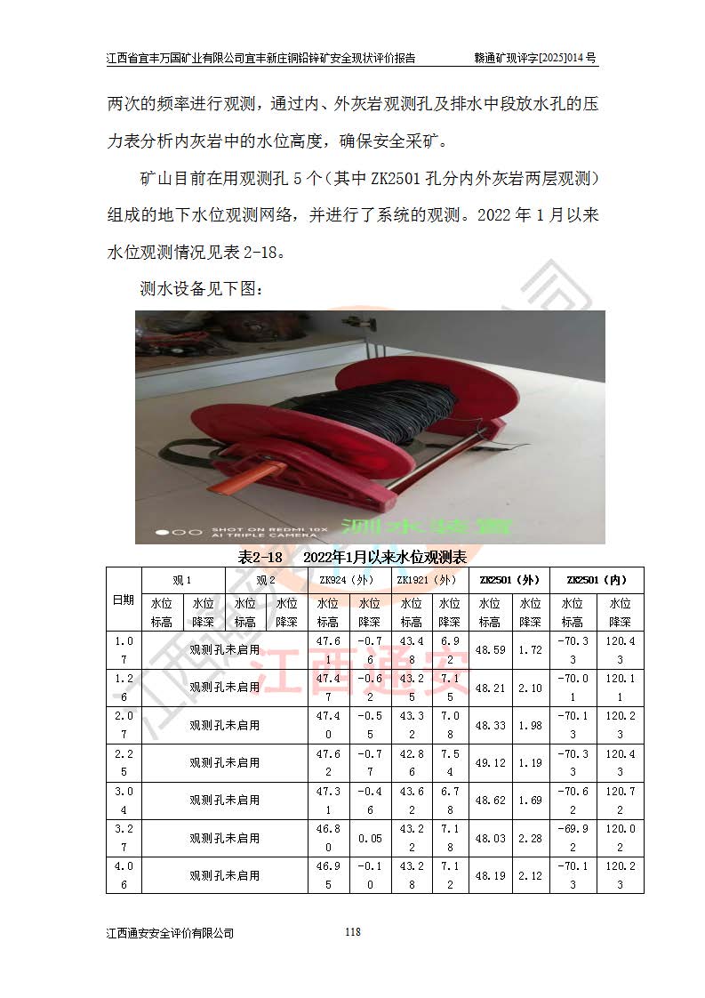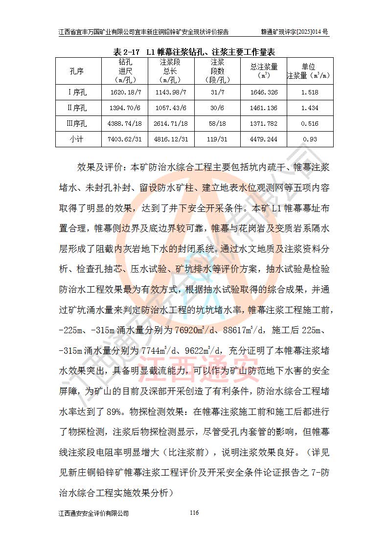 项目名称 | 江西省宜丰万国矿业有限公司宜丰新庄铜铅锌矿安全现状评价报告 | ||||