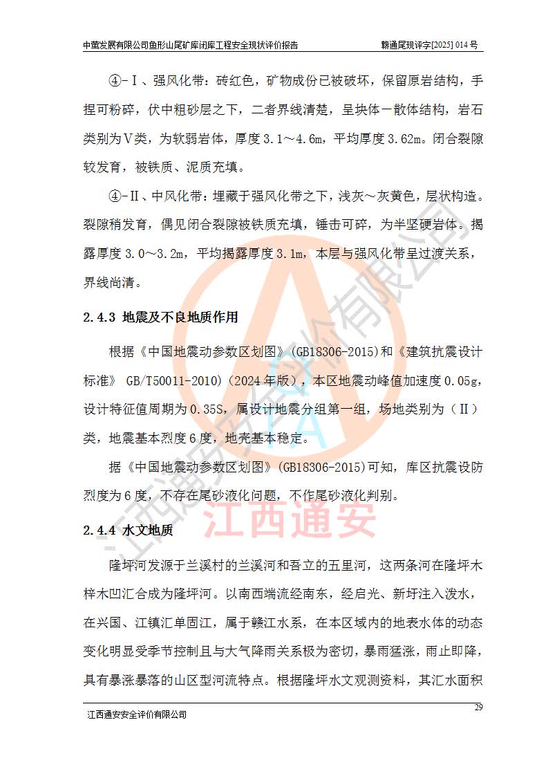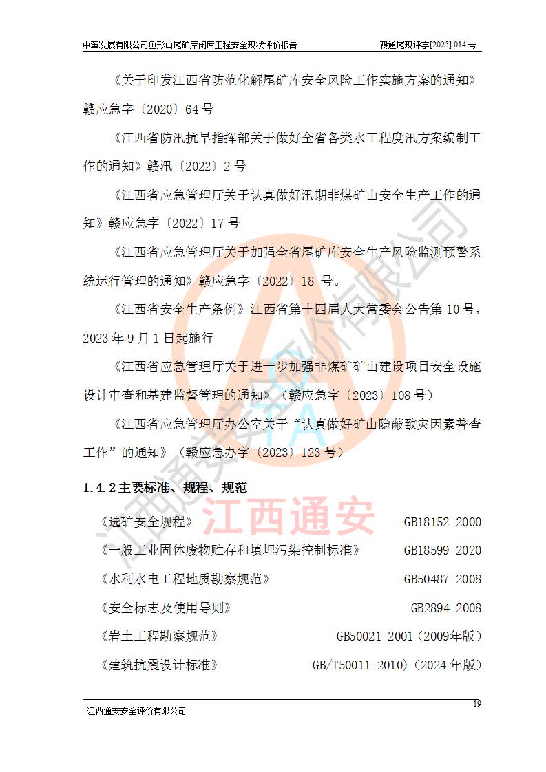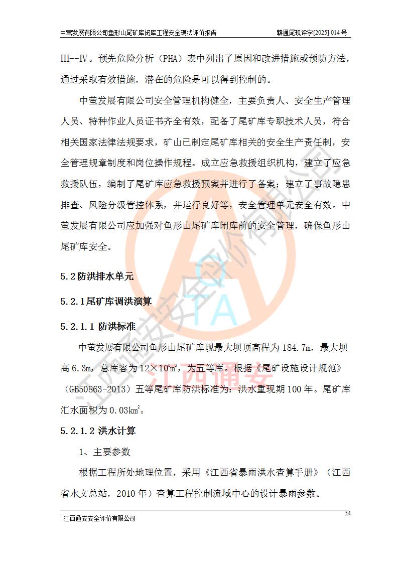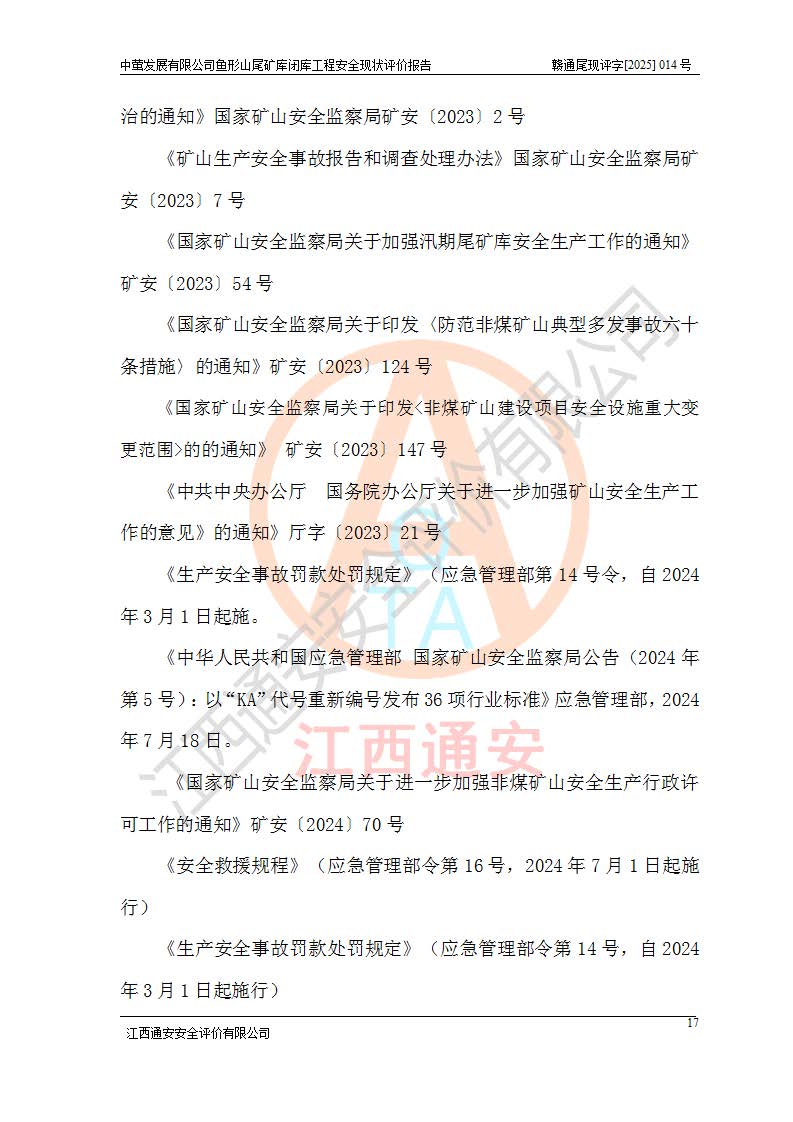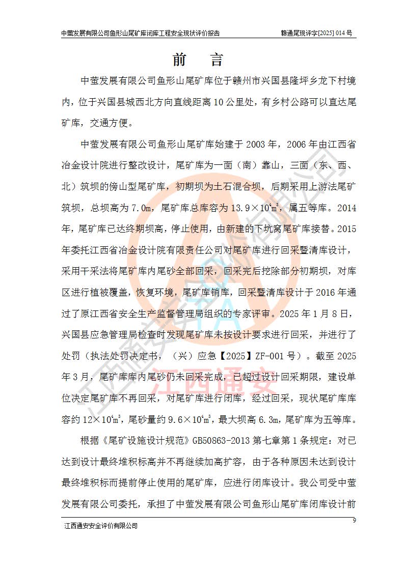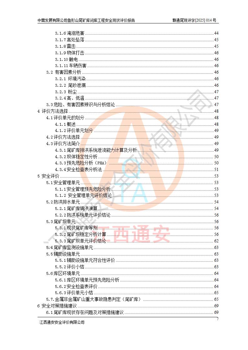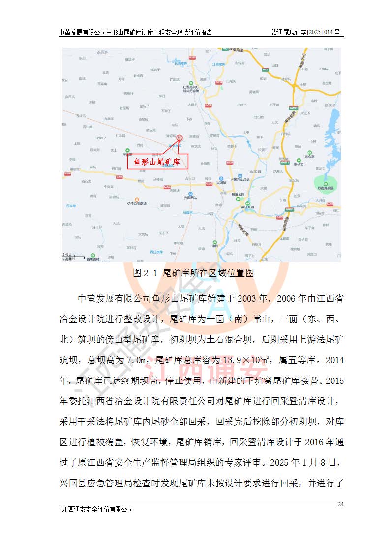 存在的问题: 1、初期坝未设置排水棱体,下游坡比较陡,初期坝坝顶被尾砂掩埋,尾矿坝稳定性不满足规范要求; 2、堆积坝外坡比较陡,不满足规范要求,东侧整个尾矿坝已被下游尾砂堆掩埋,堆积坝未设置坝面排水沟,未采取护坡措施,有冲刷拉沟现象; 3、原有排洪水系统已被尾砂掩埋,封堵情况不详,现状排水管泄流能力不满足要求,且进水口位于子坝坝前,子坝直接挡水,干滩长度不满足要求; 4、尾矿坝上未设置安全监测设施,安全标志偏少; 5、未按设计进行尾砂回采,在库内形成积水坑,且积水坑内积水无法排出; 6、尾矿库不再进行尾砂回采,也不再使用,应进行闭库。 整改措施: 1、在初期坝下游增设干砌块石贴坡排水体,增加坝体稳定性,在北侧和东侧初期坝坝脚增设坝脚排水沟。 2、对堆积坝削坡,增加坝体的稳定性,削坡后覆土植草皮护坡,修建坝面坝肩排水沟。 3、新建溢洪道用于闭库后尾矿库排洪排水,拆除现有排水管;对原排洪系统进行封堵。 4、闭库时在尾矿坝上增设安全监测设施,增设安全标志。 5、对库内积水坑进行平整。 6、应进行闭库,整治尾矿库库内干滩面,为防止干滩面水土流失,覆土植草,覆土范围为整个库区范围。在库内干滩面设置库面排水沟,截洪沟、新建溢洪道,形成库内排水网,能**的将库内雨水排至库外。 |
