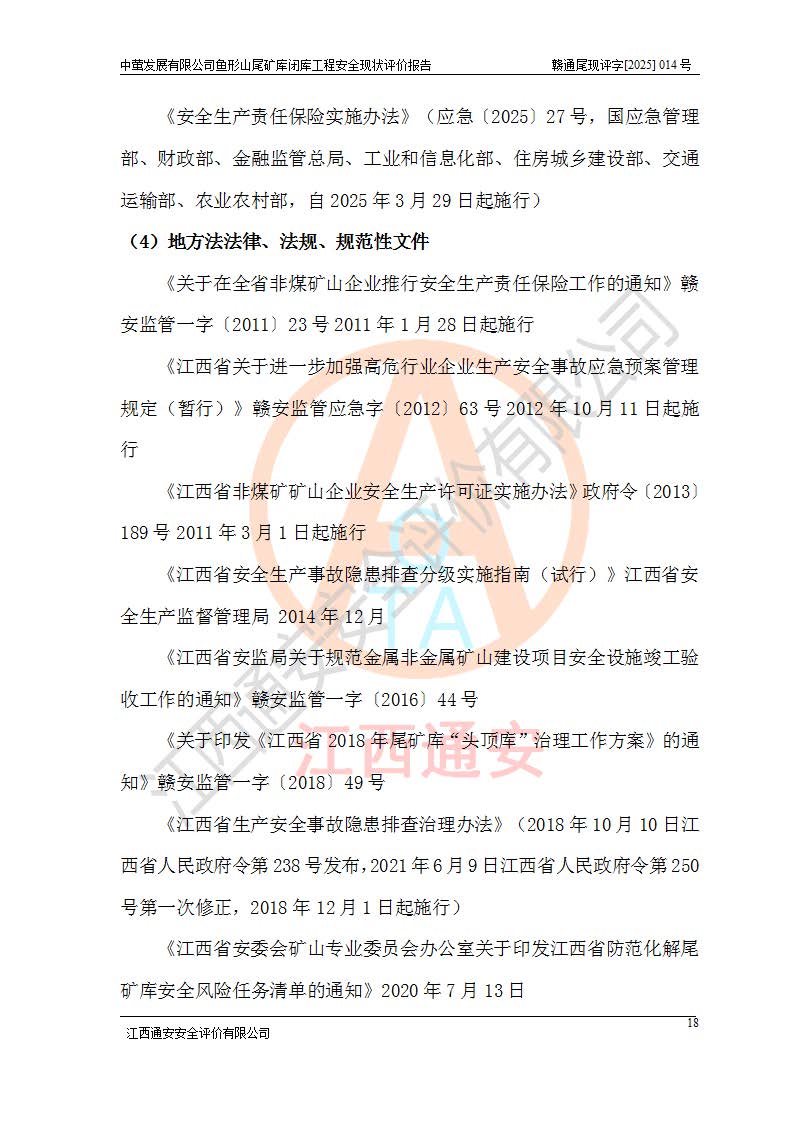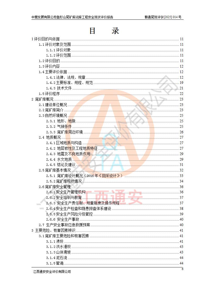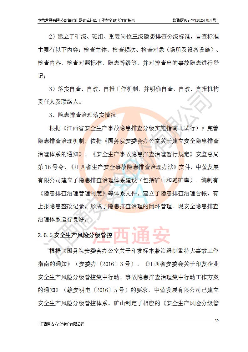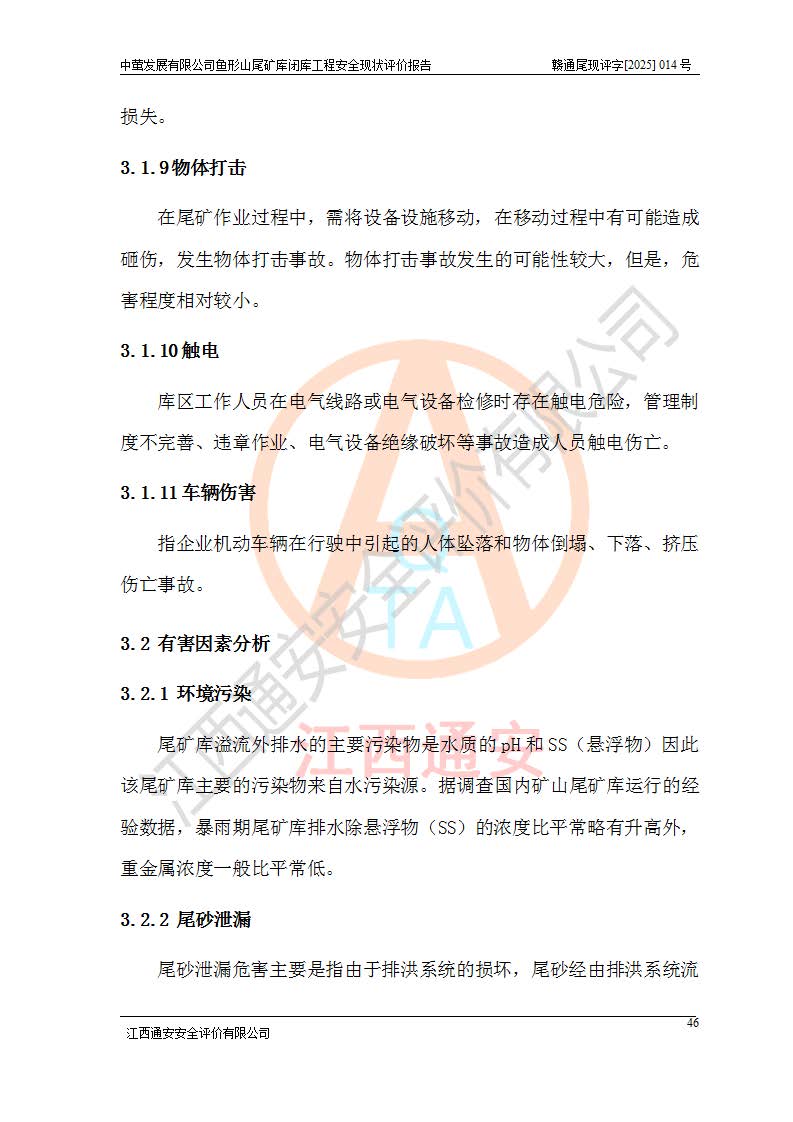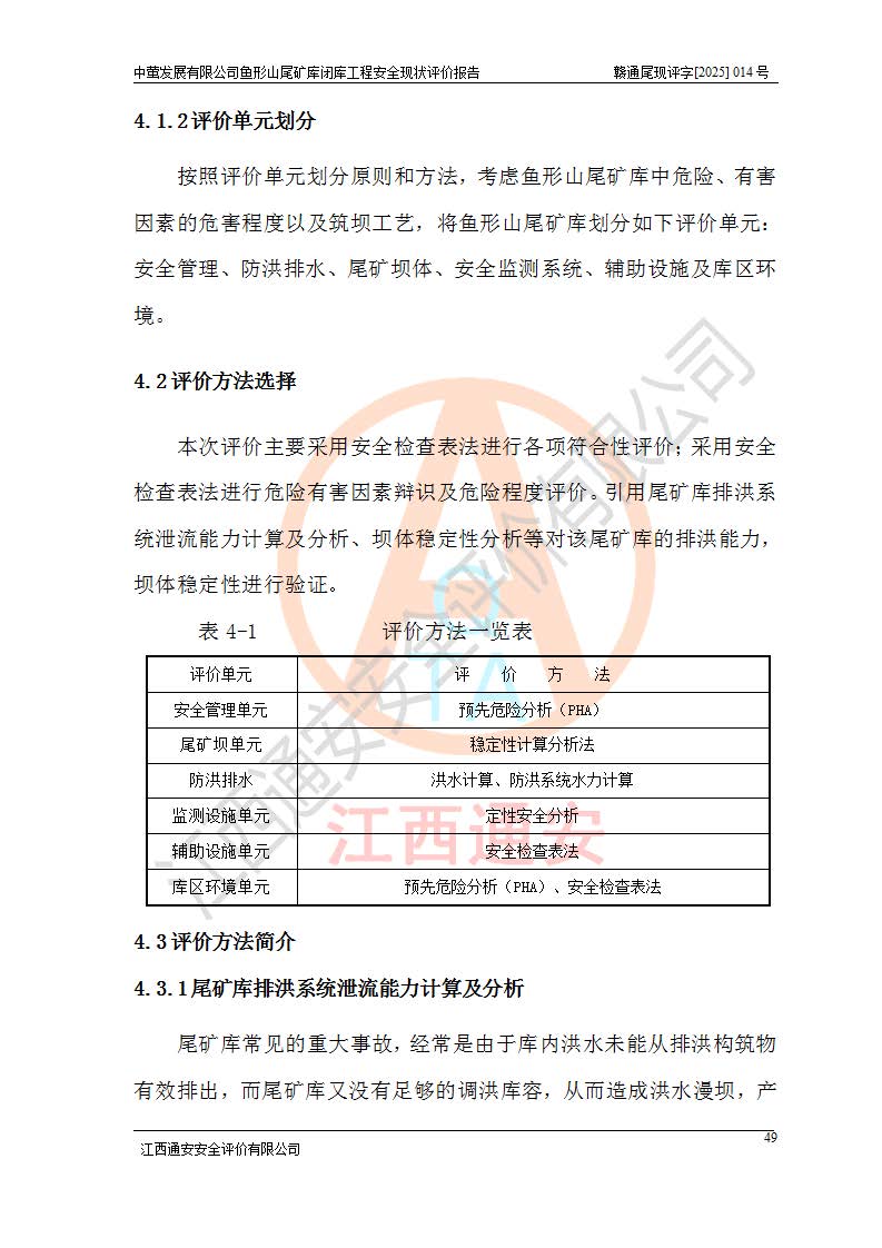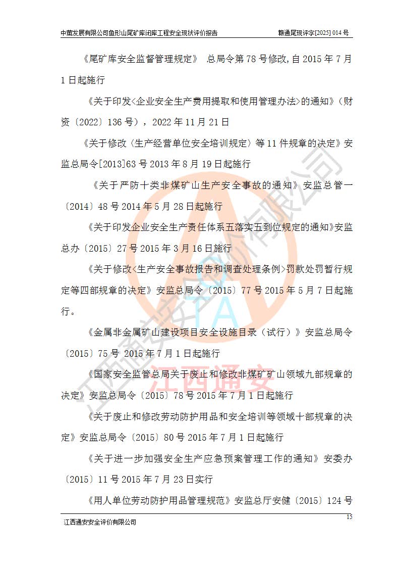 存在的问题: 1、初期坝未设置排水棱体,下游坡比较陡,初期坝坝顶被尾砂掩埋,尾矿坝稳定性不满足规范要求; 2、堆积坝外坡比较陡,不满足规范要求,东侧整个尾矿坝已被下游尾砂堆掩埋,堆积坝未设置坝面排水沟,未采取护坡措施,有冲刷拉沟现象; 3、原有排洪水系统已被尾砂掩埋,封堵情况不详,现状排水管泄流能力不满足要求,且进水口位于子坝坝前,子坝直接挡水,干滩长度不满足要求; 4、尾矿坝上未设置安全监测设施,安全标志偏少; 5、未按设计进行尾砂回采,在库内形成积水坑,且积水坑内积水无法排出; 6、尾矿库不再进行尾砂回采,也不再使用,应进行闭库。 整改措施: 1、在初期坝下游增设干砌块石贴坡排水体,增加坝体稳定性,在北侧和东侧初期坝坝脚增设坝脚排水沟。 2、对堆积坝削坡,增加坝体的稳定性,削坡后覆土植草皮护坡,修建坝面坝肩排水沟。 3、新建溢洪道用于闭库后尾矿库排洪排水,拆除现有排水管;对原排洪系统进行封堵。 4、闭库时在尾矿坝上增设安全监测设施,增设安全标志。 5、对库内积水坑进行平整。 6、应进行闭库,整治尾矿库库内干滩面,为防止干滩面水土流失,覆土植草,覆土范围为整个库区范围。在库内干滩面设置库面排水沟,截洪沟、新建溢洪道,形成库内排水网,能**的将库内雨水排至库外。 |