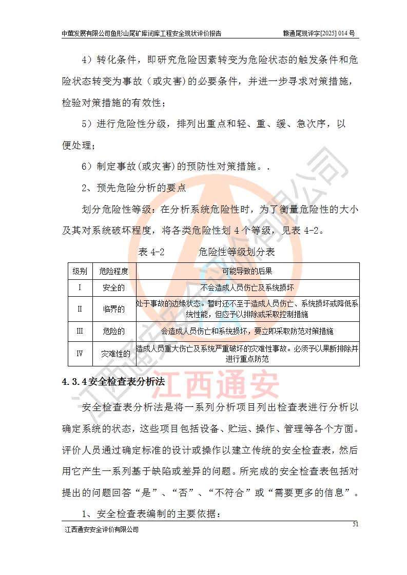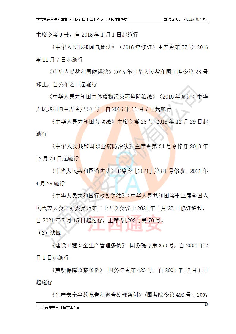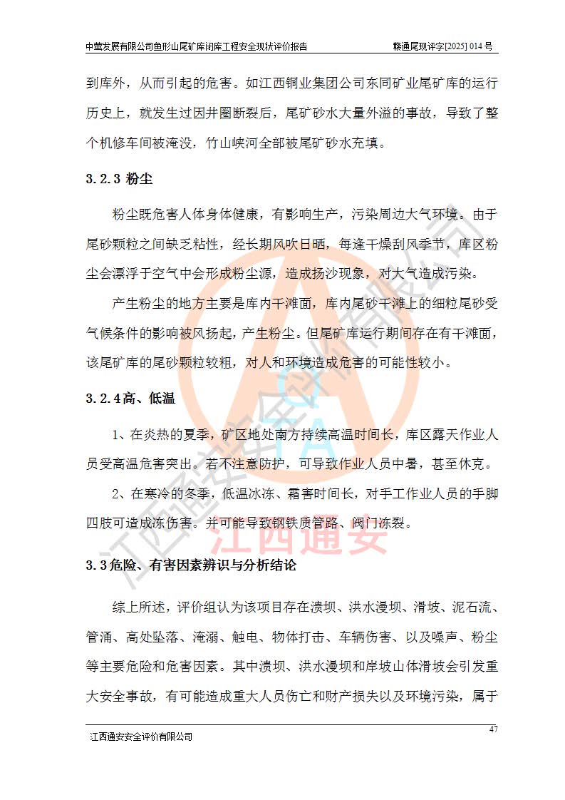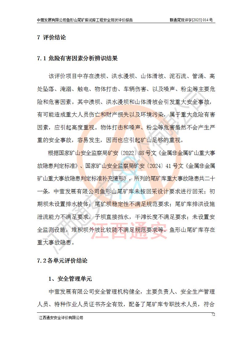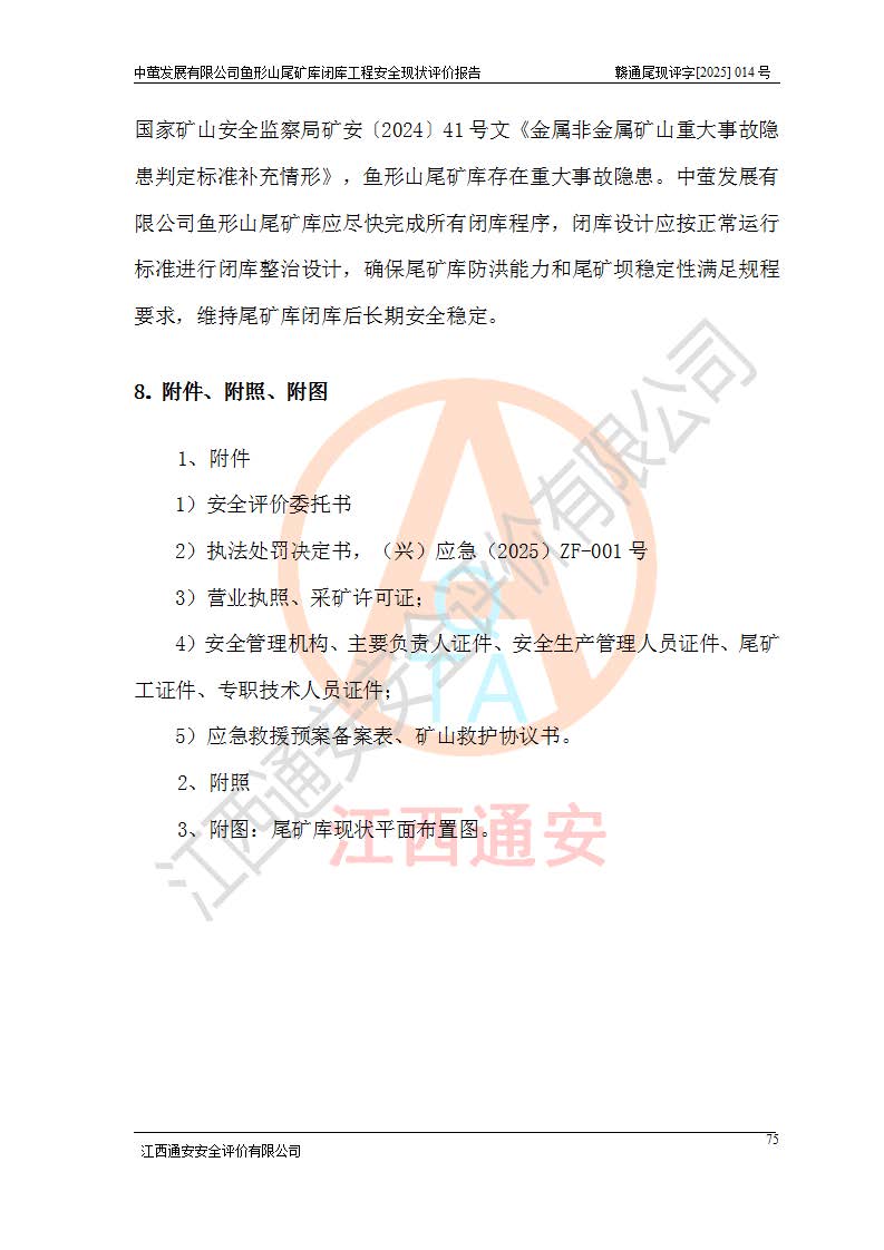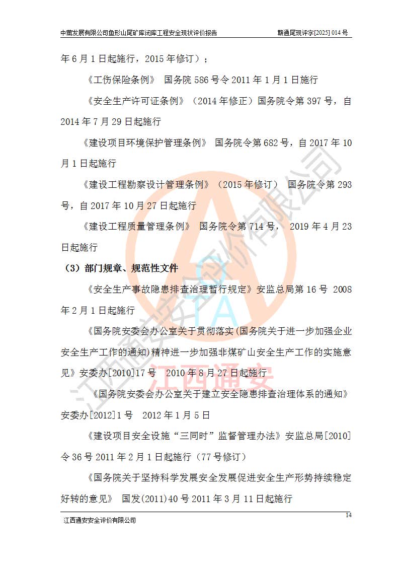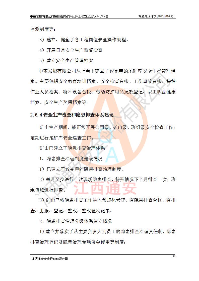 存在的问题: 1、初期坝未设置排水棱体,下游坡比较陡,初期坝坝顶被尾砂掩埋,尾矿坝稳定性不满足规范要求; 2、堆积坝外坡比较陡,不满足规范要求,东侧整个尾矿坝已被下游尾砂堆掩埋,堆积坝未设置坝面排水沟,未采取护坡措施,有冲刷拉沟现象; 3、原有排洪水系统已被尾砂掩埋,封堵情况不详,现状排水管泄流能力不满足要求,且进水口位于子坝坝前,子坝直接挡水,干滩长度不满足要求; 4、尾矿坝上未设置安全监测设施,安全标志偏少; 5、未按设计进行尾砂回采,在库内形成积水坑,且积水坑内积水无法排出; 6、尾矿库不再进行尾砂回采,也不再使用,应进行闭库。 整改措施: 1、在初期坝下游增设干砌块石贴坡排水体,增加坝体稳定性,在北侧和东侧初期坝坝脚增设坝脚排水沟。 2、对堆积坝削坡,增加坝体的稳定性,削坡后覆土植草皮护坡,修建坝面坝肩排水沟。 3、新建溢洪道用于闭库后尾矿库排洪排水,拆除现有排水管;对原排洪系统进行封堵。 4、闭库时在尾矿坝上增设安全监测设施,增设安全标志。 5、对库内积水坑进行平整。 6、应进行闭库,整治尾矿库库内干滩面,为防止干滩面水土流失,覆土植草,覆土范围为整个库区范围。在库内干滩面设置库面排水沟,截洪沟、新建溢洪道,形成库内排水网,能**的将库内雨水排至库外。 |